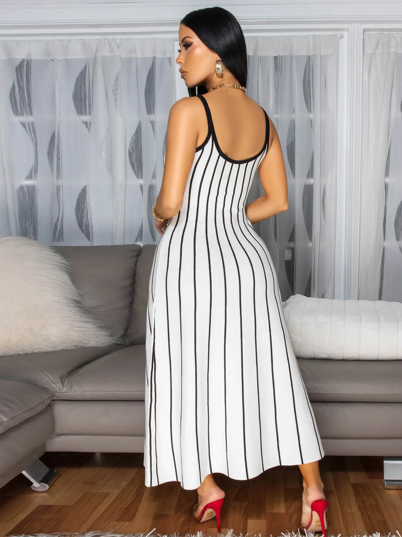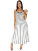 CM.YAYA 2025 Summer Women Striped Print O-Neck Long Midi Dress Sleeveless Sexy Backless Night Club Party Evening Vestido Dresses