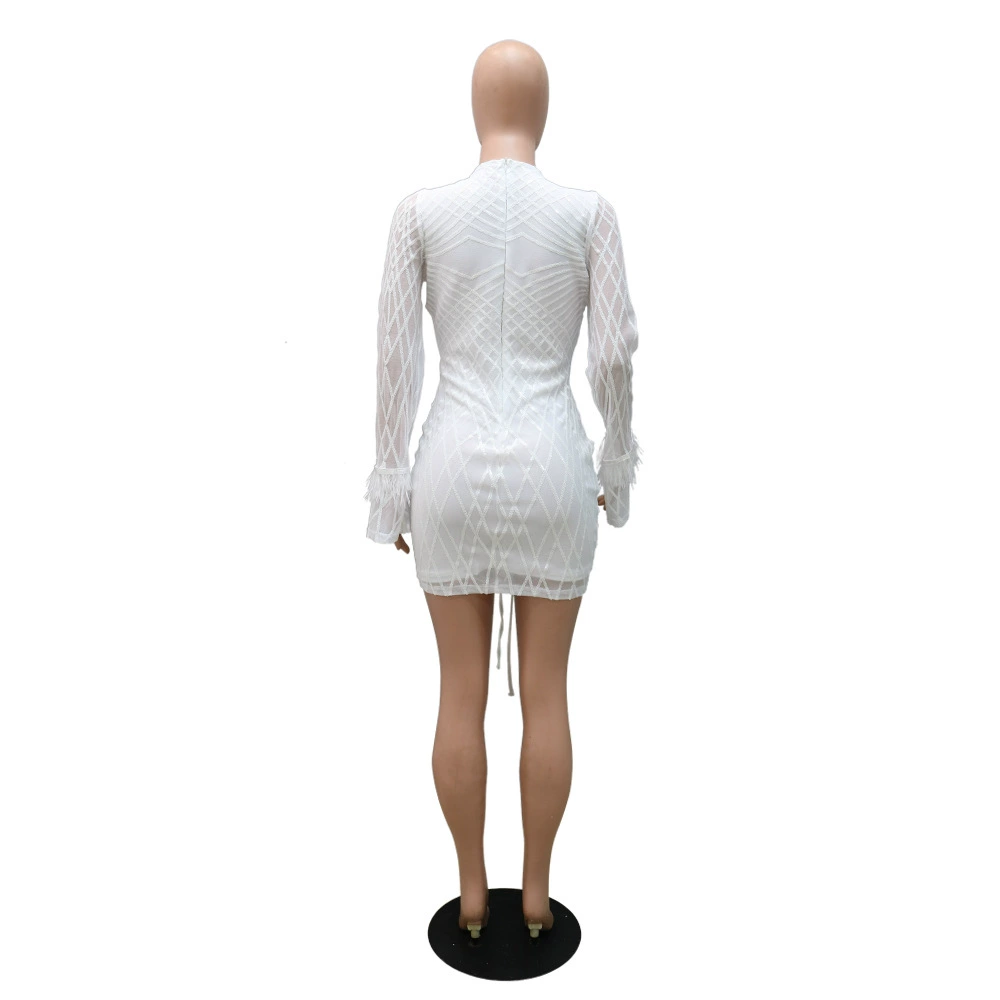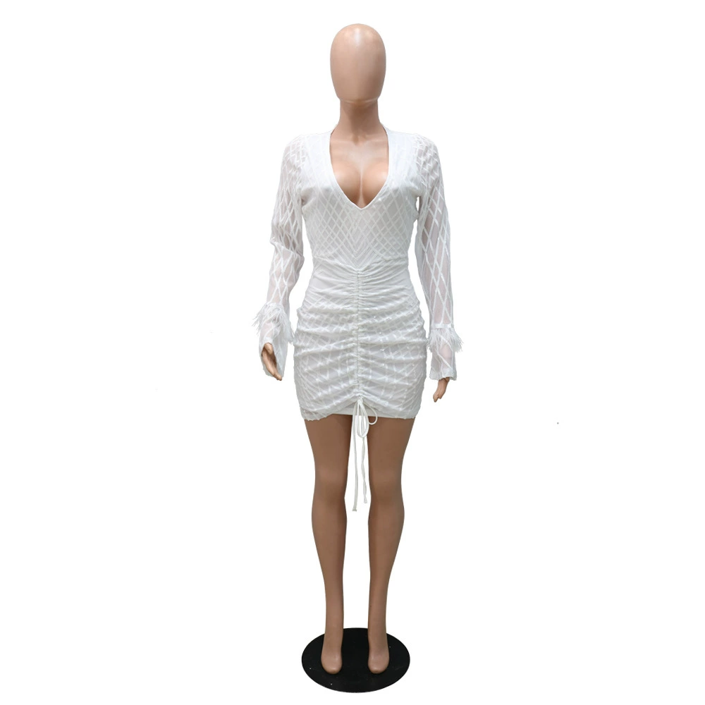 CM.YAYA Autumn Winter Women Dress Casual Streetwear Long Sleeve Sequined V-Neck Bandage Bodycon Night Club Dresses