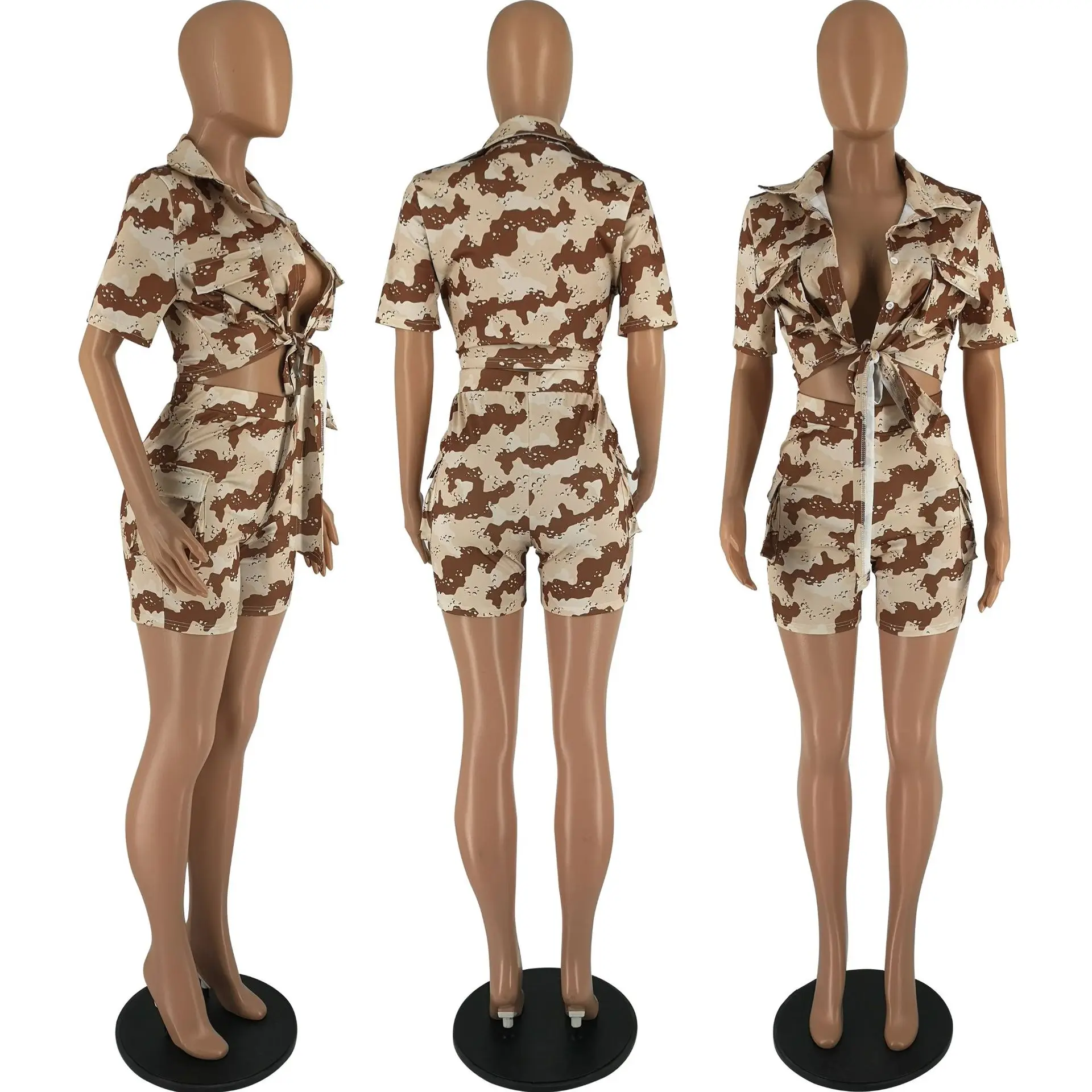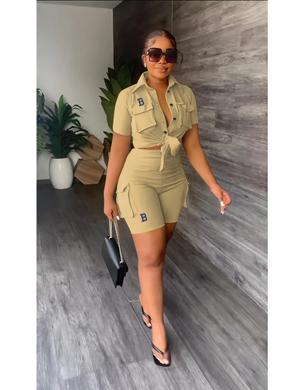 CM.YAYA B label embroidery Women’s Set Short Sleeve Pocket Front Shirt + Cargo Shorts Suit 2023 Two 2 Piece Set Outfit Tracksuit