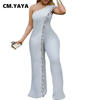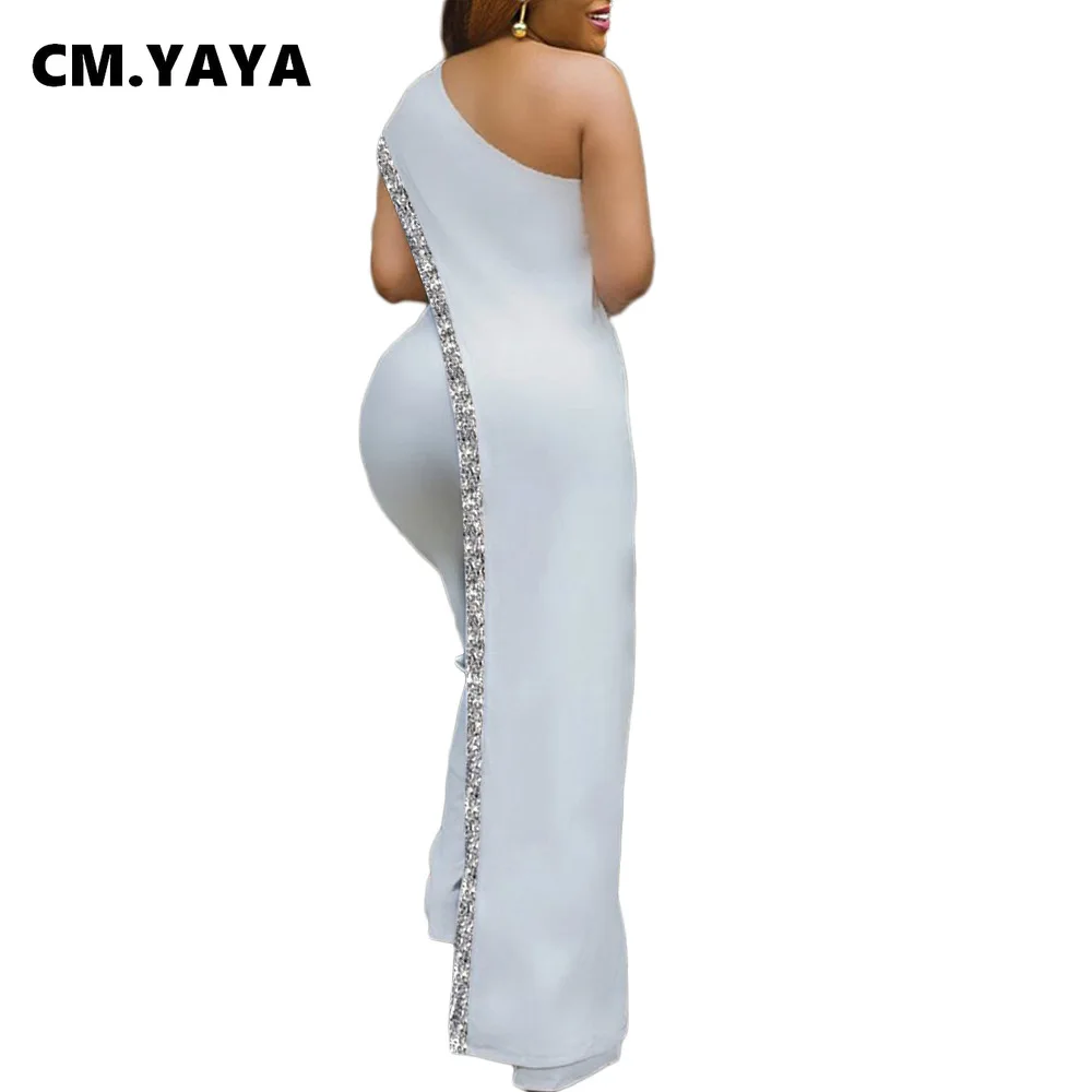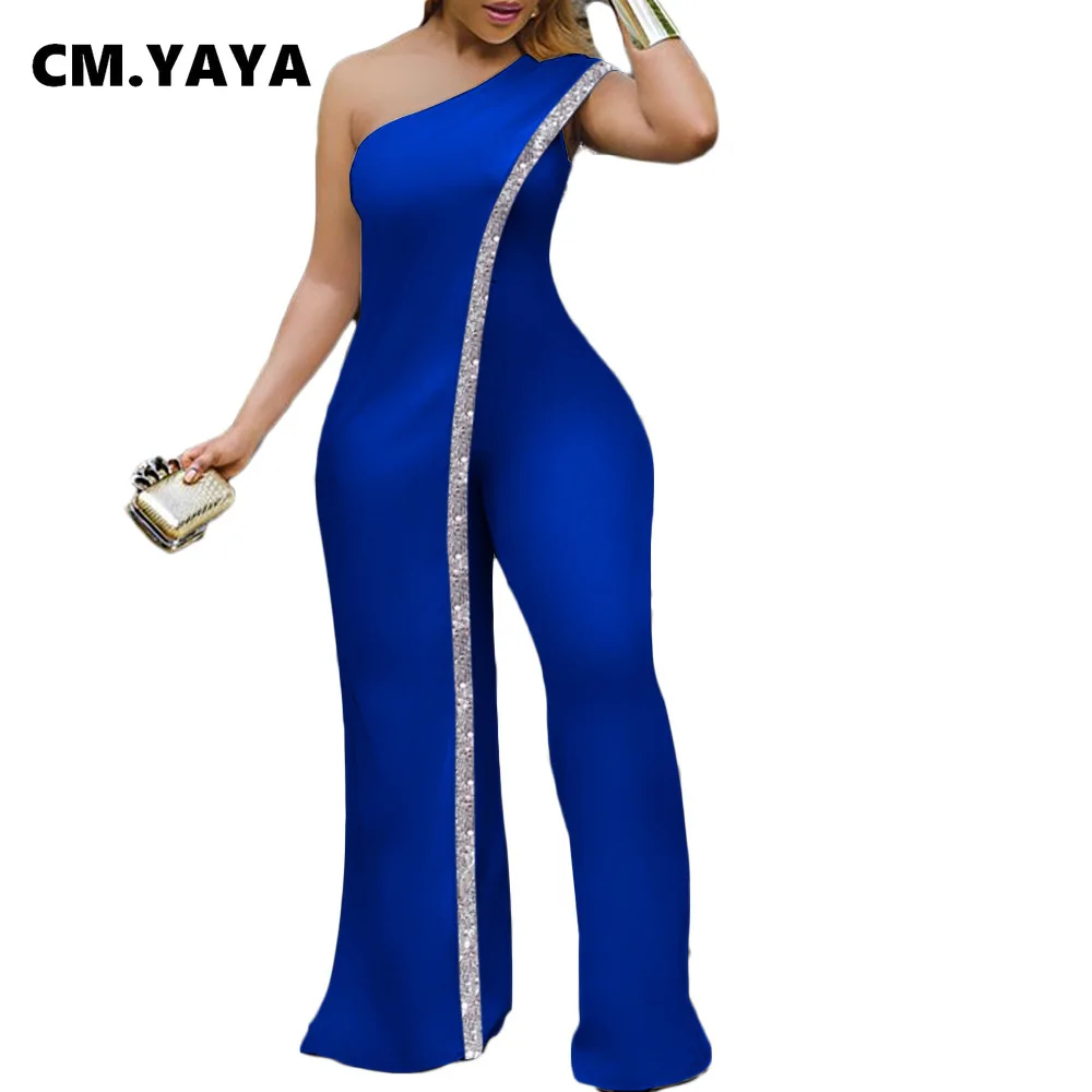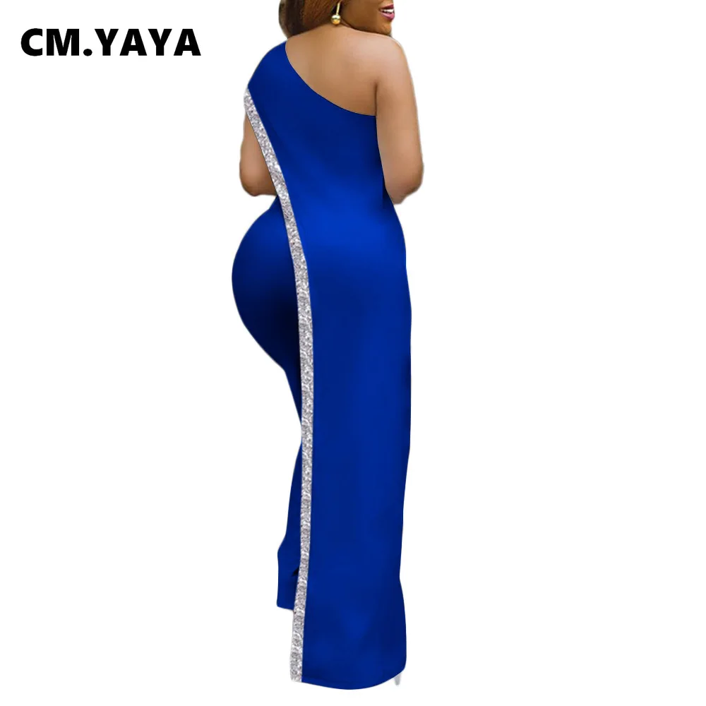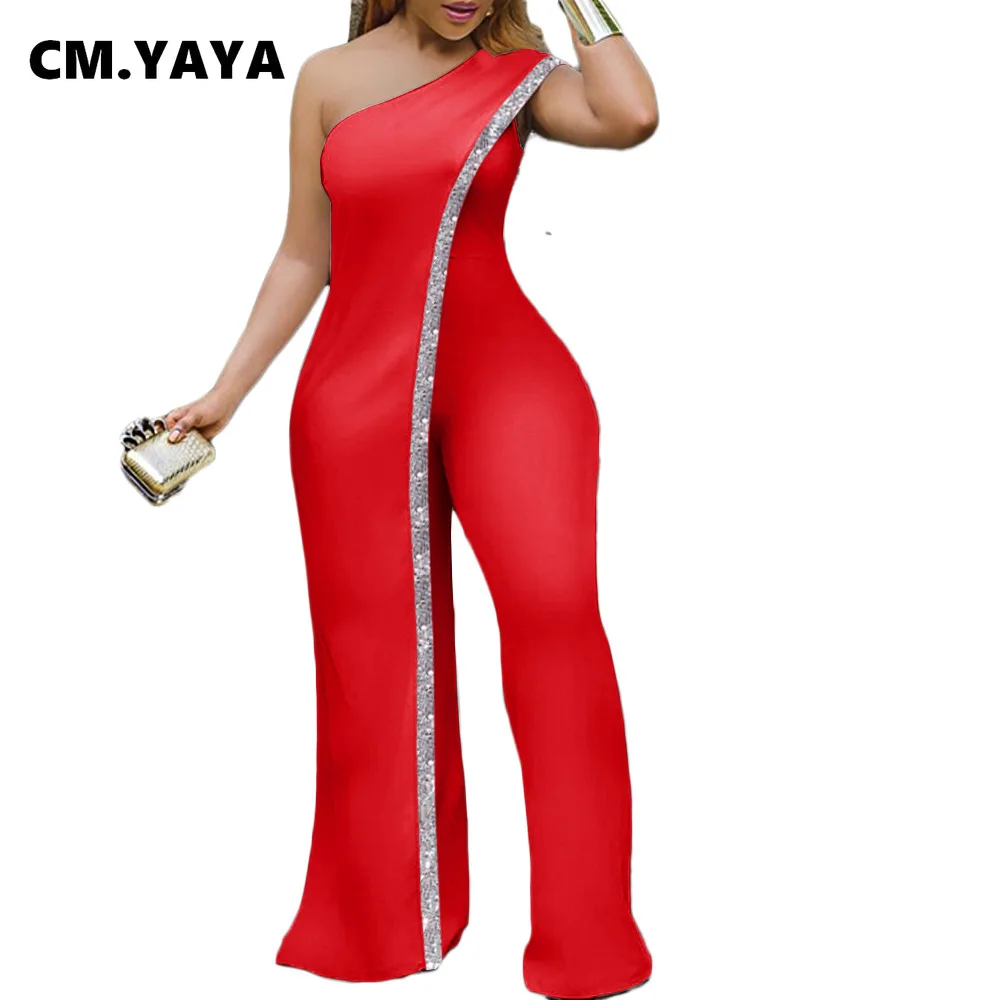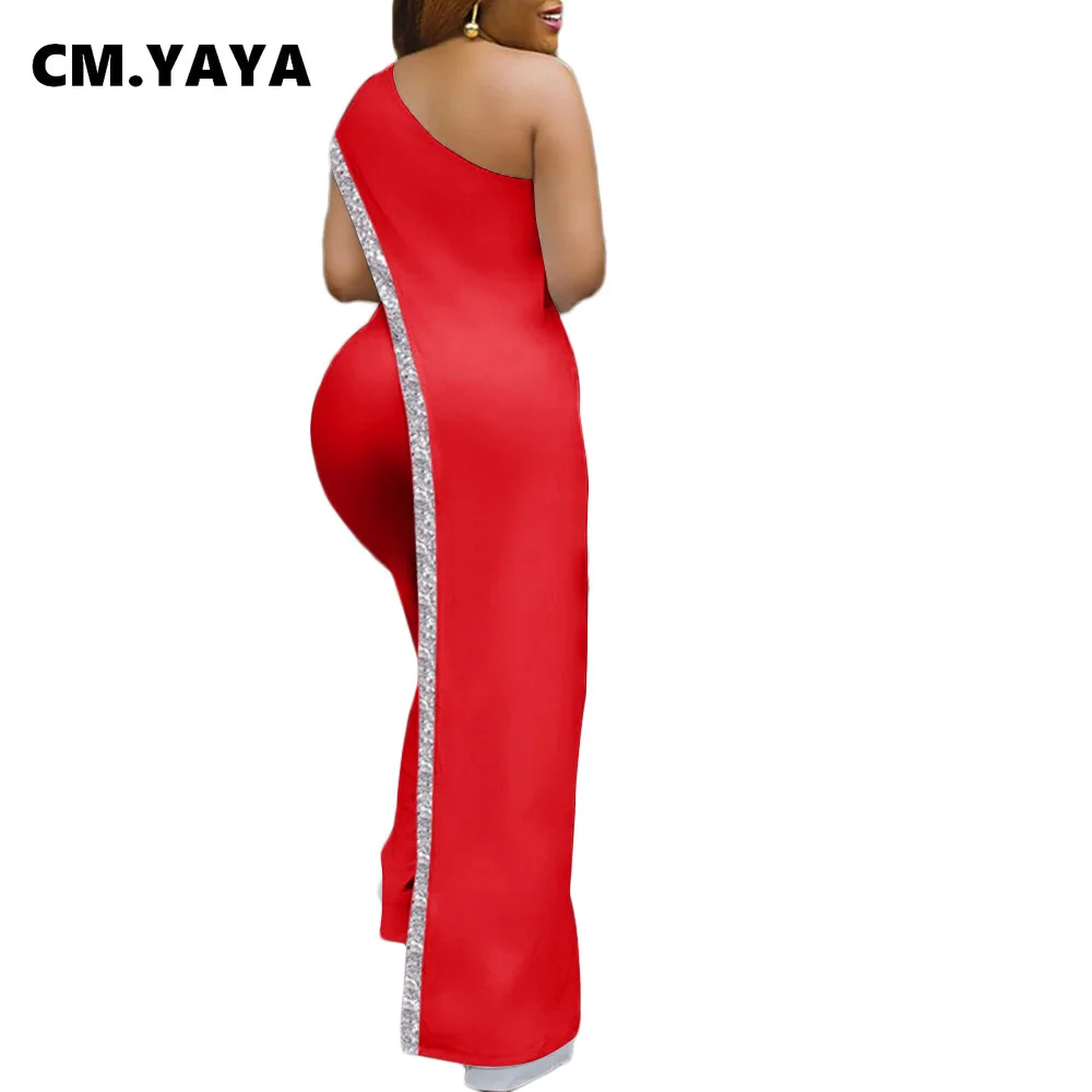 CM.YAYA Bright Bar Patchwork One Shoulder Loose One Piece Jumpsuit Women Fashion Streetwear Full Length Jumpsuits Ladies Outfit