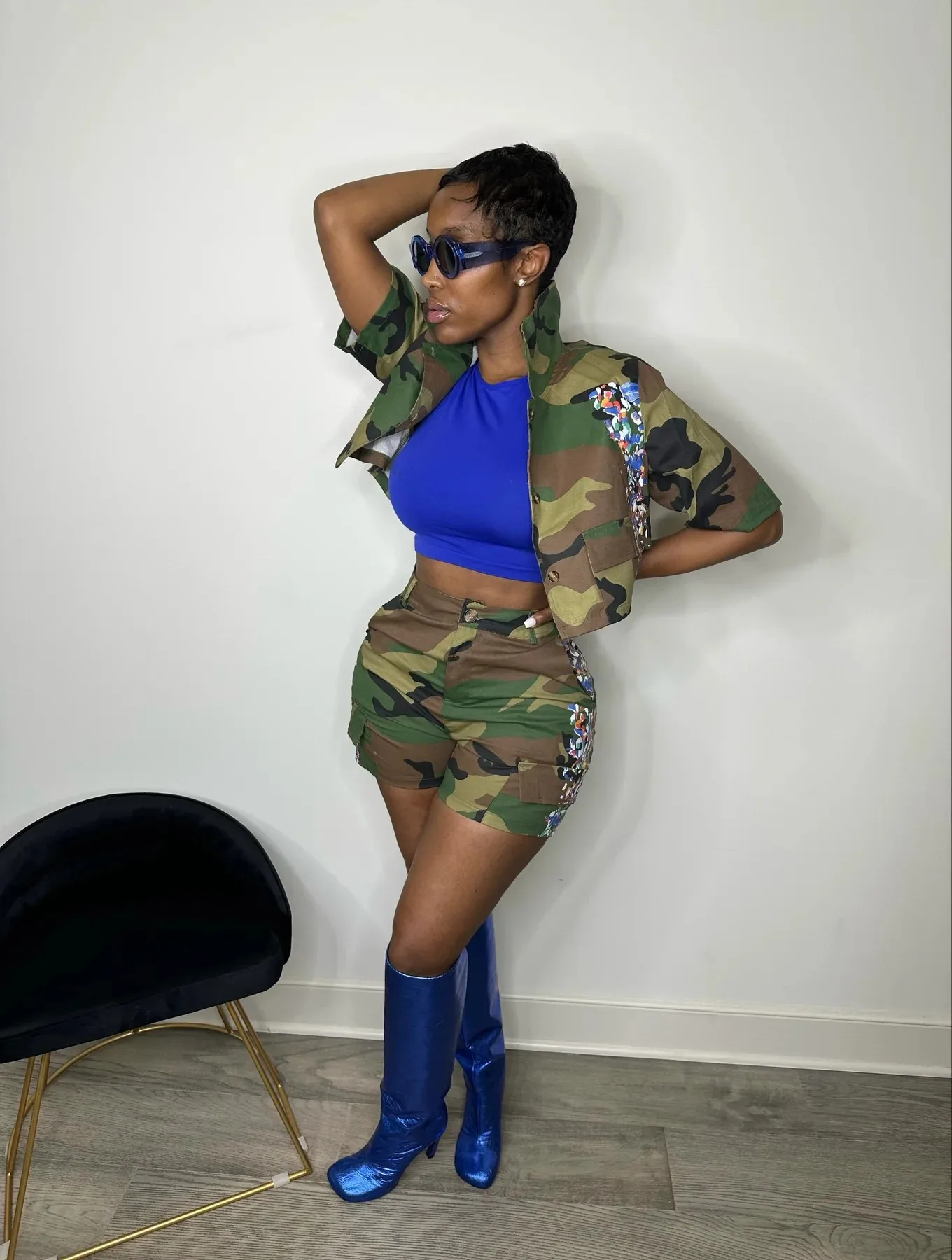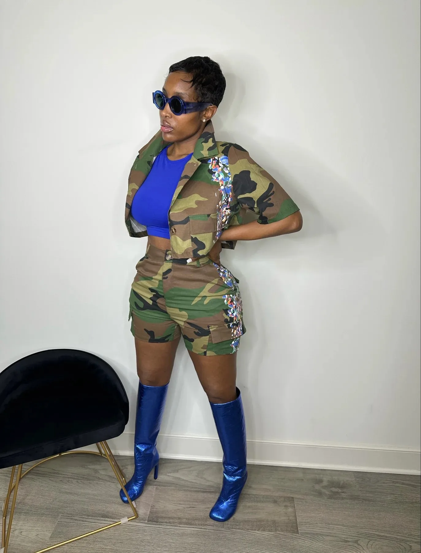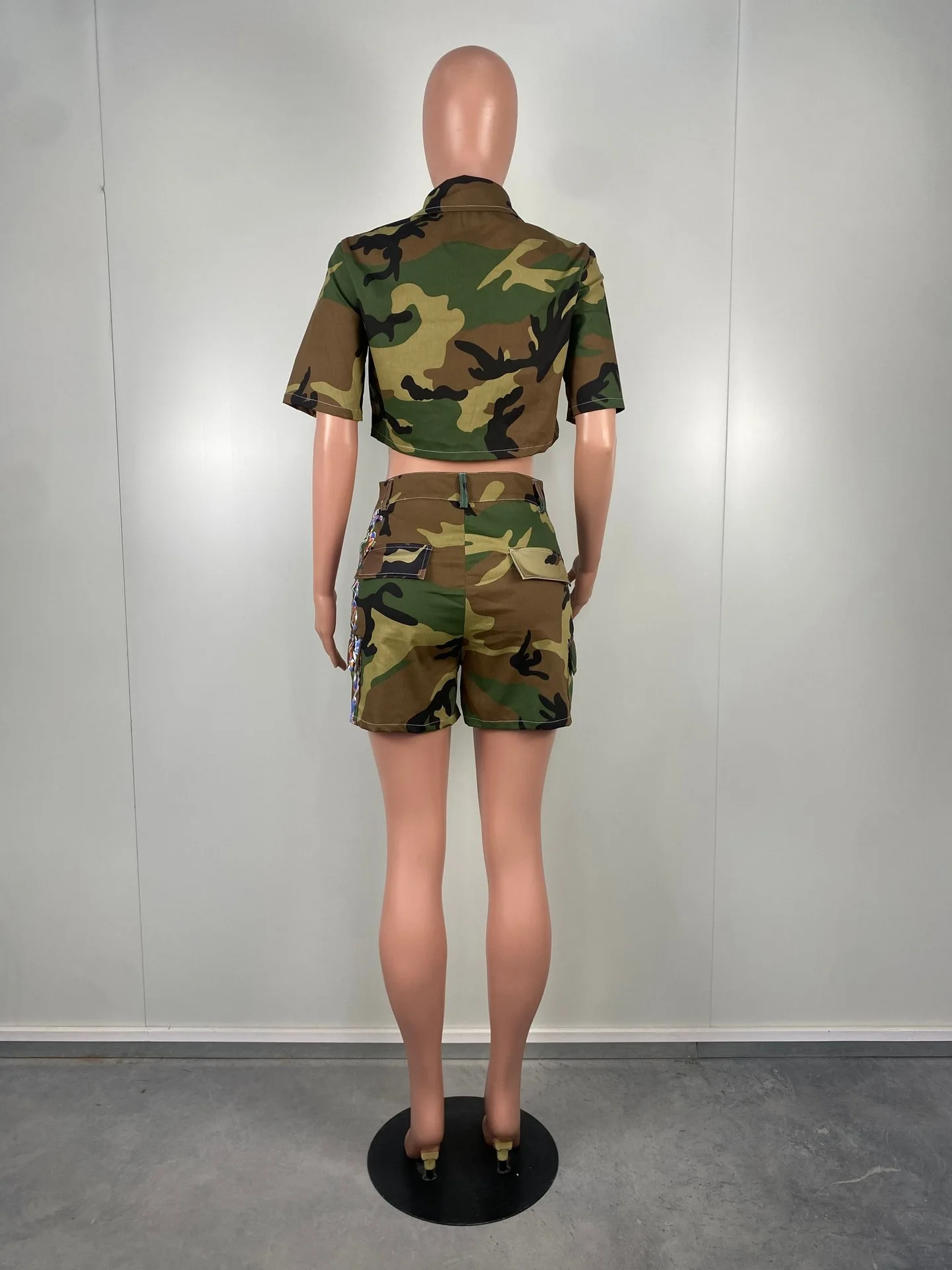 CM.YAYA Camouflage Military Women’s Set Short Sleeve Shirt and Cargo Shorts Suit 2023 Sweatsuit Two 2 Piece Set Outfit Tracksuit
