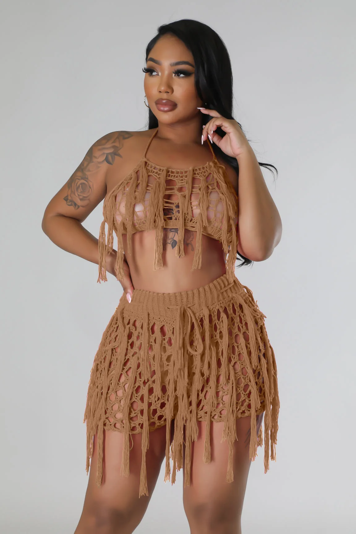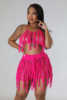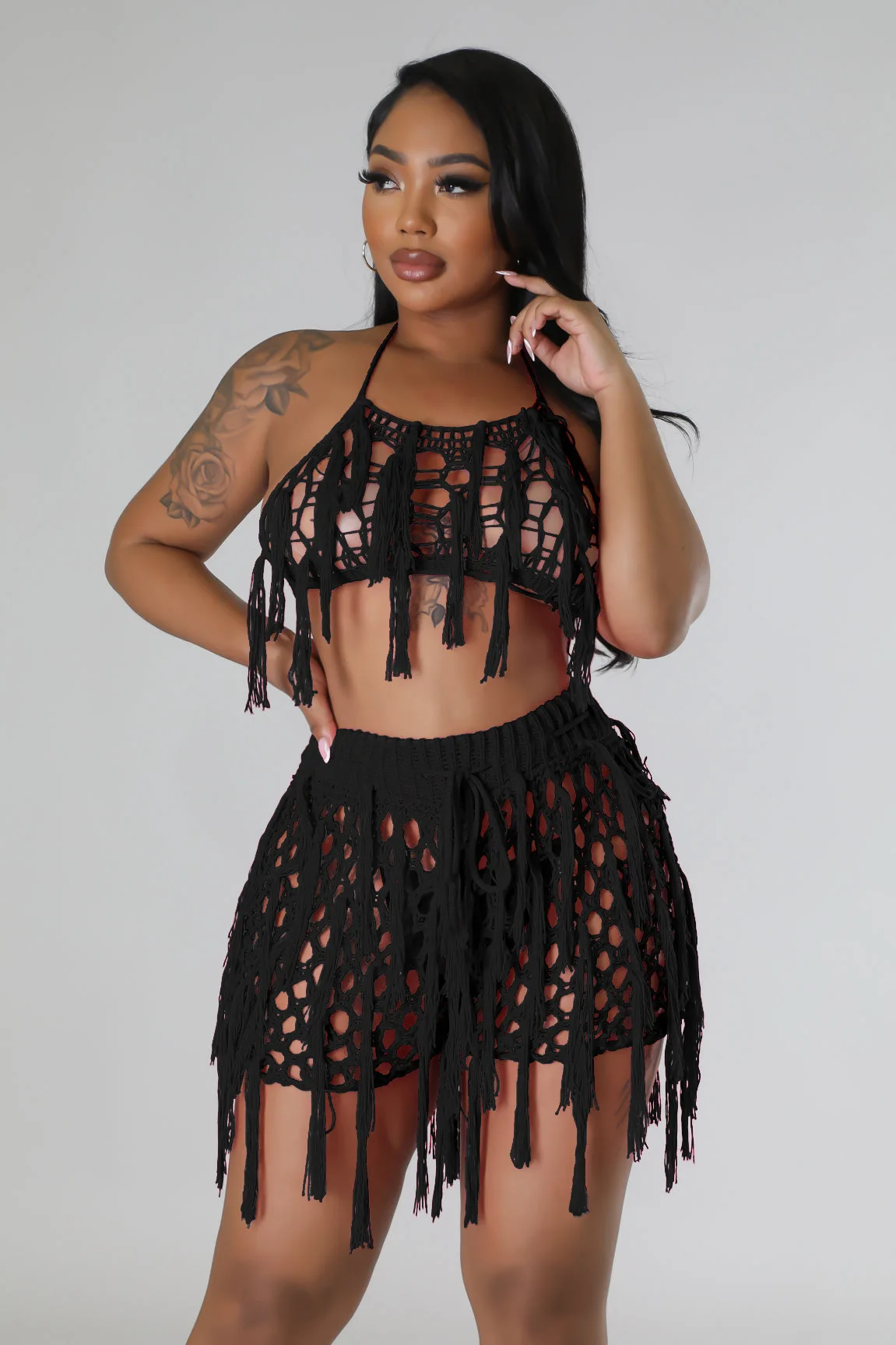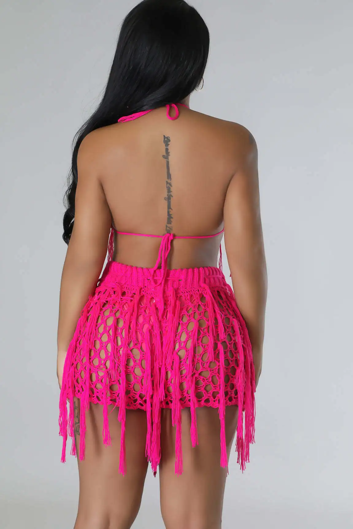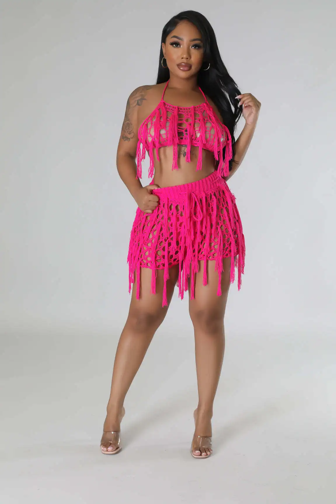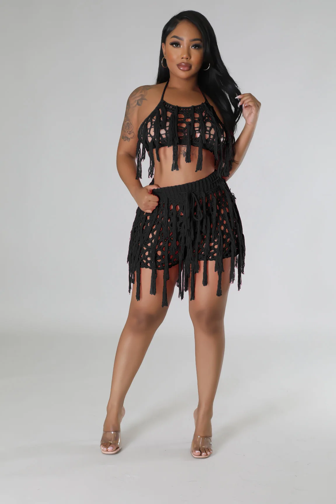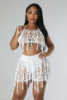 CM.YAYA Chic Knit Crochet Women’s Set Halter Crop Top and Tassel Shorts 2023 Summer Beach Sexy Two 2 Piece Set Outfits Tracksuit