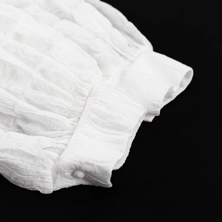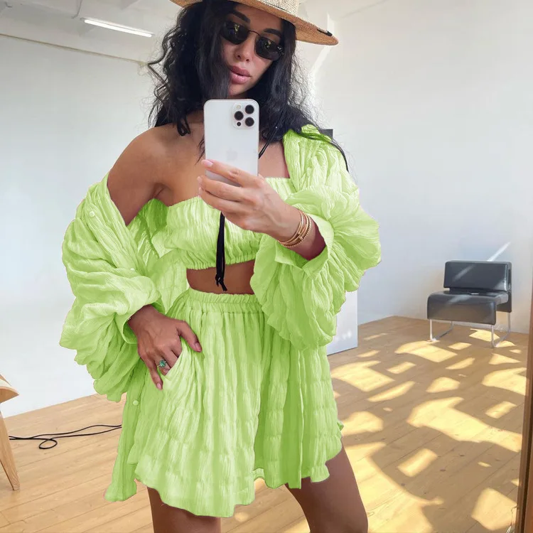 CM.YAYA Chic Women’s Set Long Sleeve Shirt Strapless Crop Top and Flare Shorts 2023 Fashion Summer 3-Piece Set Outfit Tracksuit