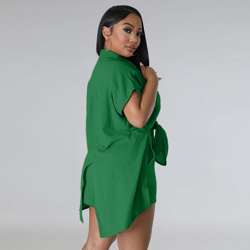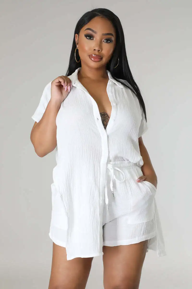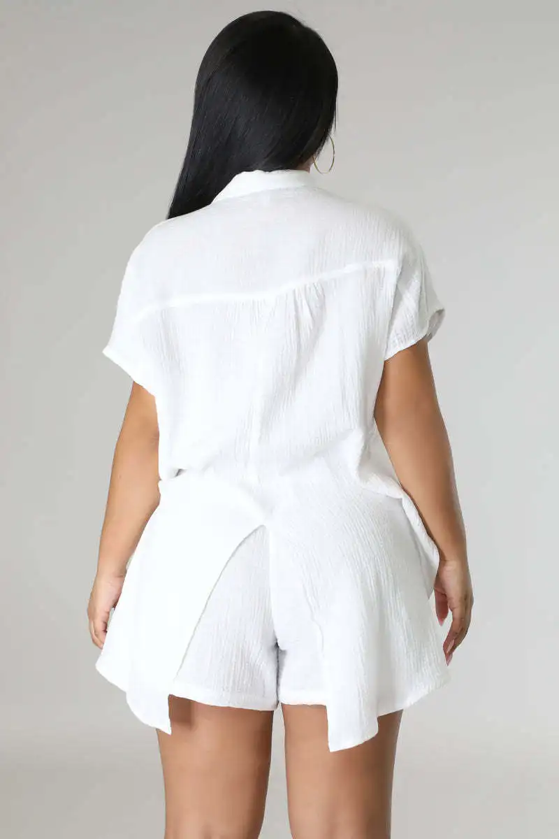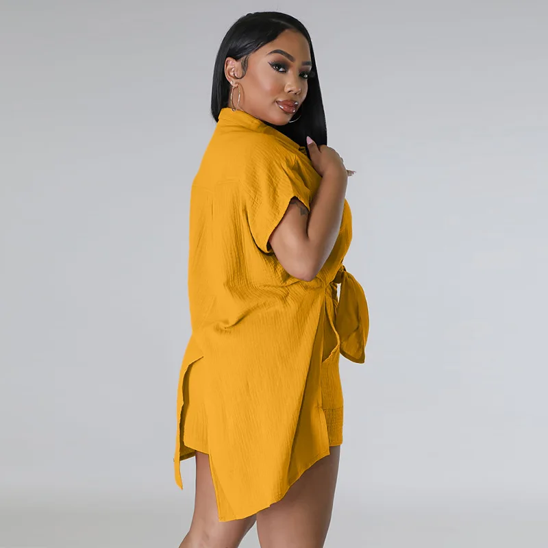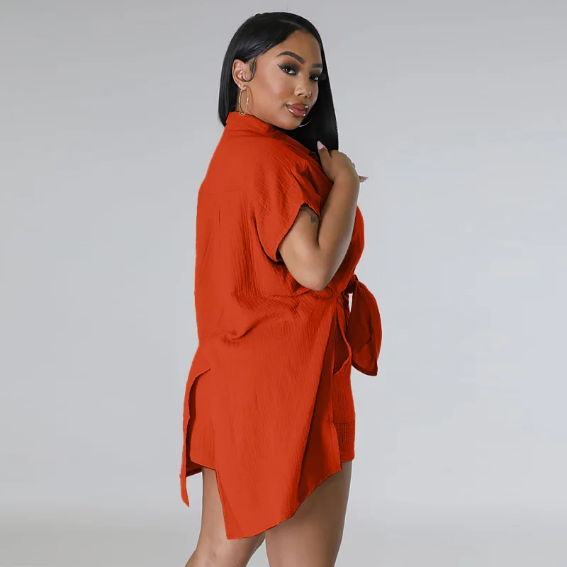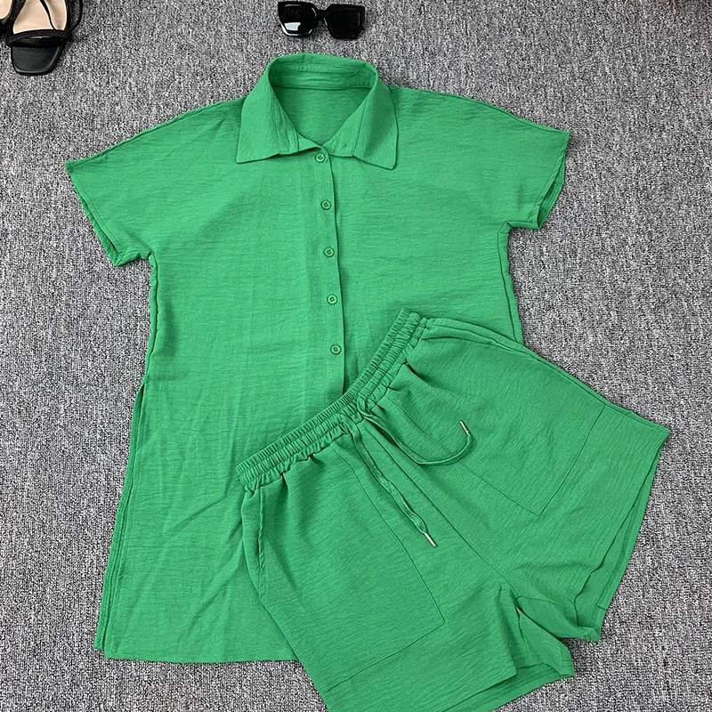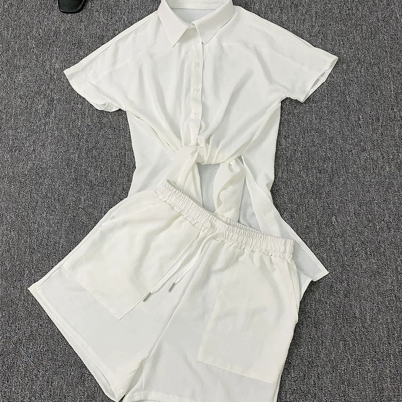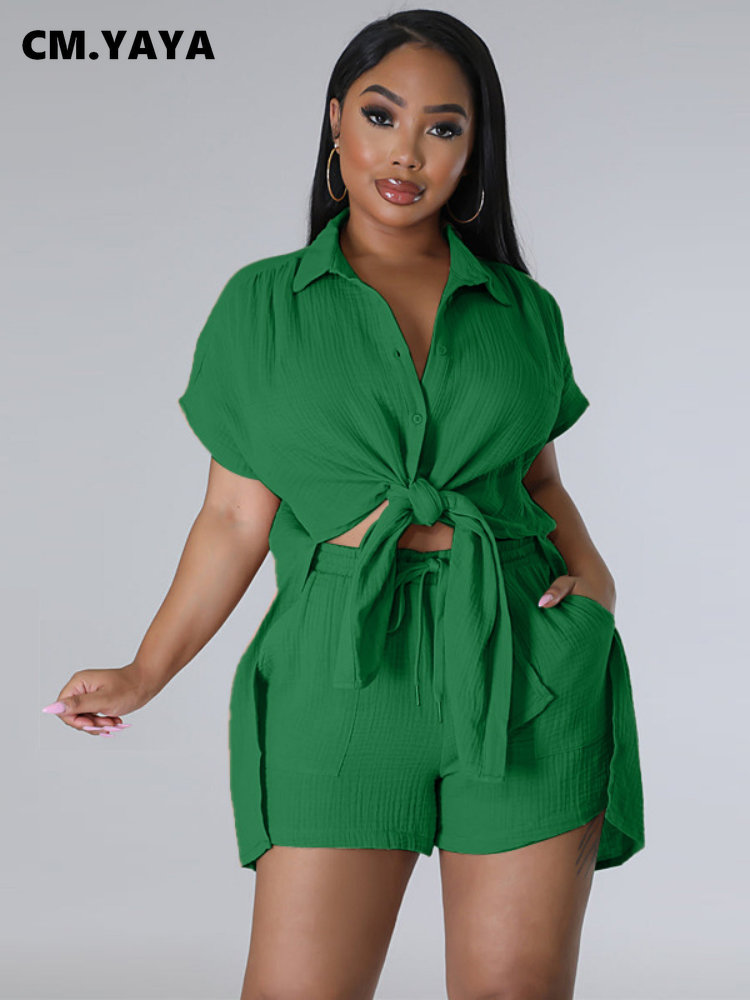 CM.YAYA Chic Women’s Set Short Sleeve Side Slit Shirt and Straight Shorts Suit 2023 Street Two 2 Piece Set Outfit Tracksuit