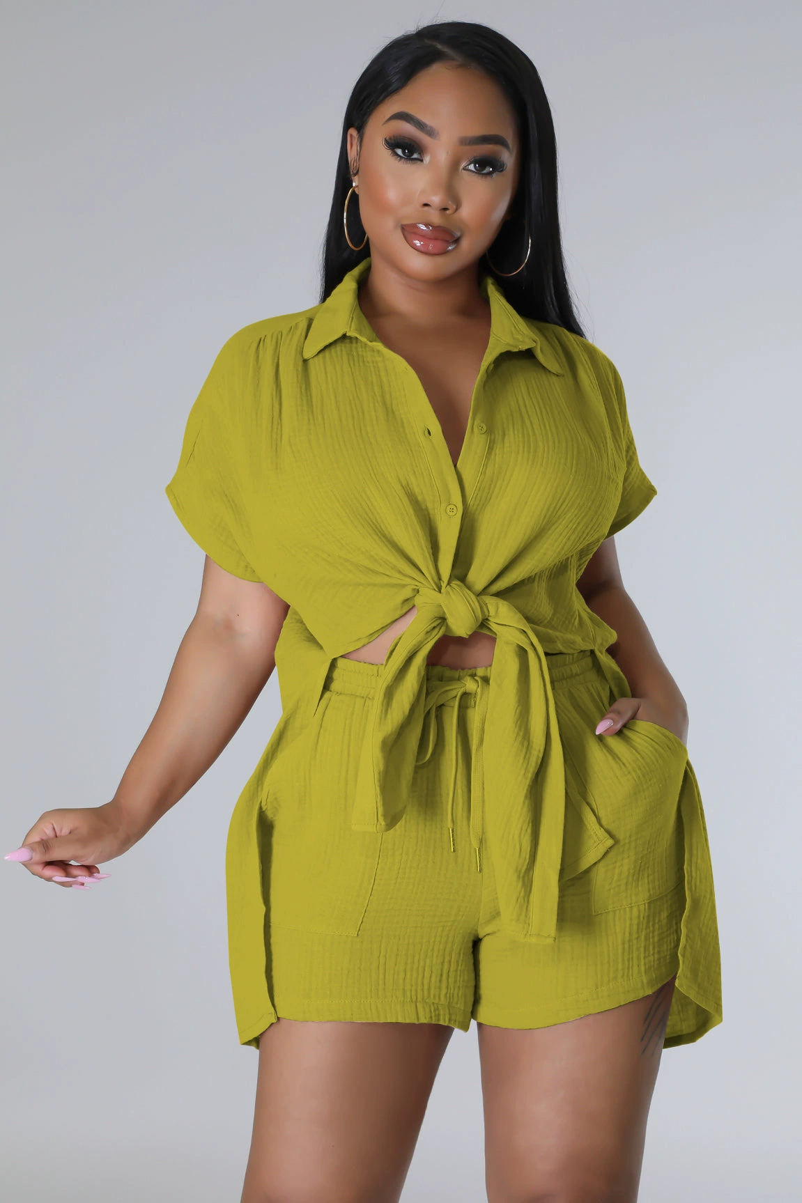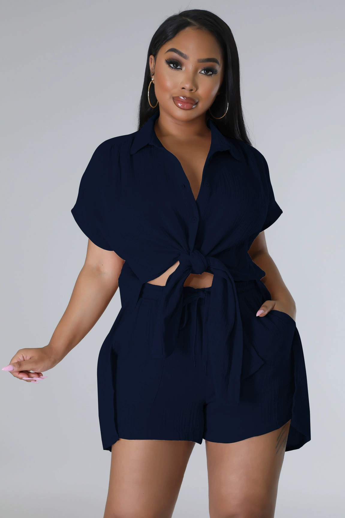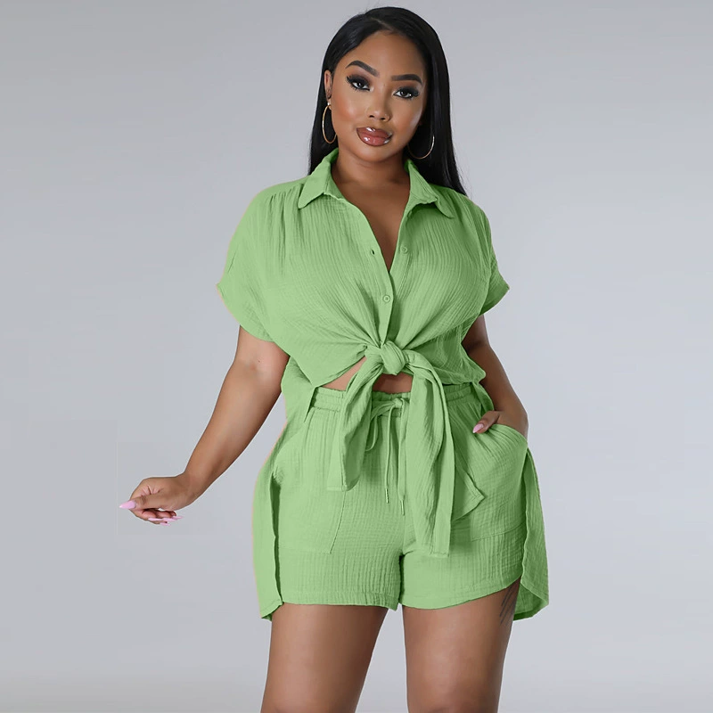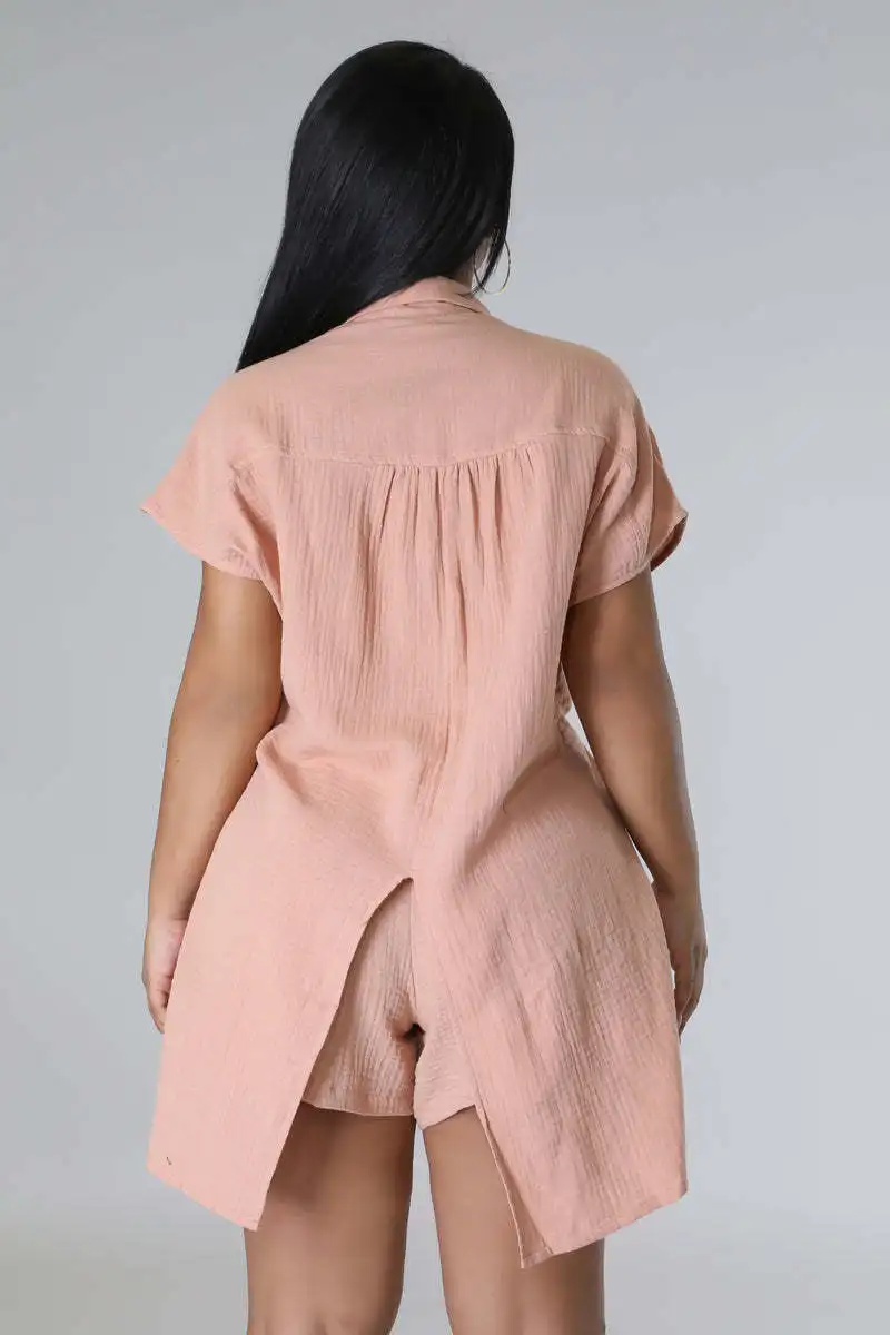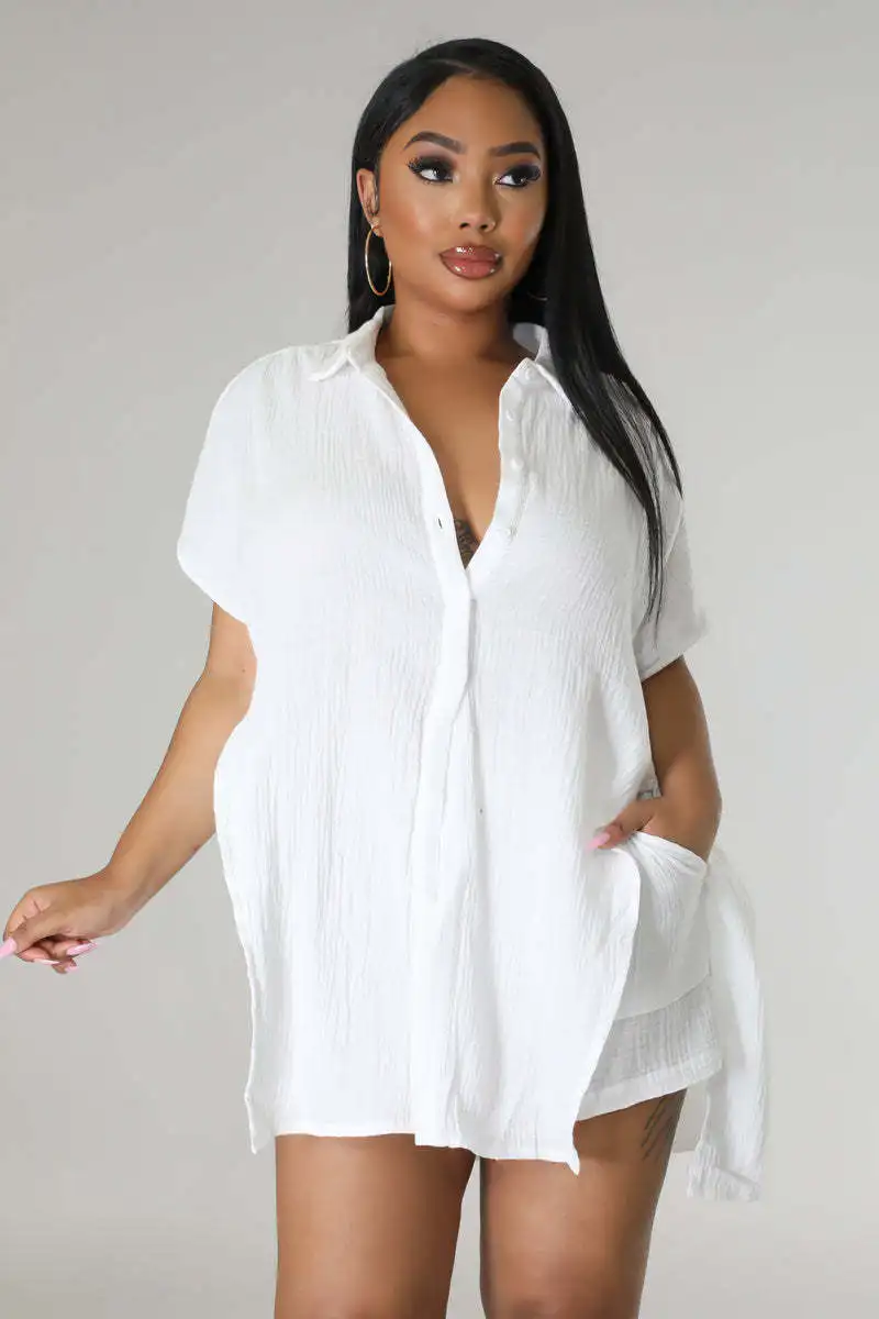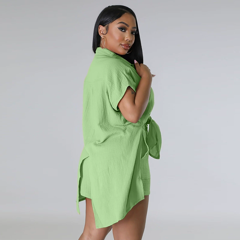 CM.YAYA Chic Women’s Set Short Sleeve Side Slit Shirt and Straight Shorts Suit 2023 Street Two 2 Piece Set Outfit Tracksuit