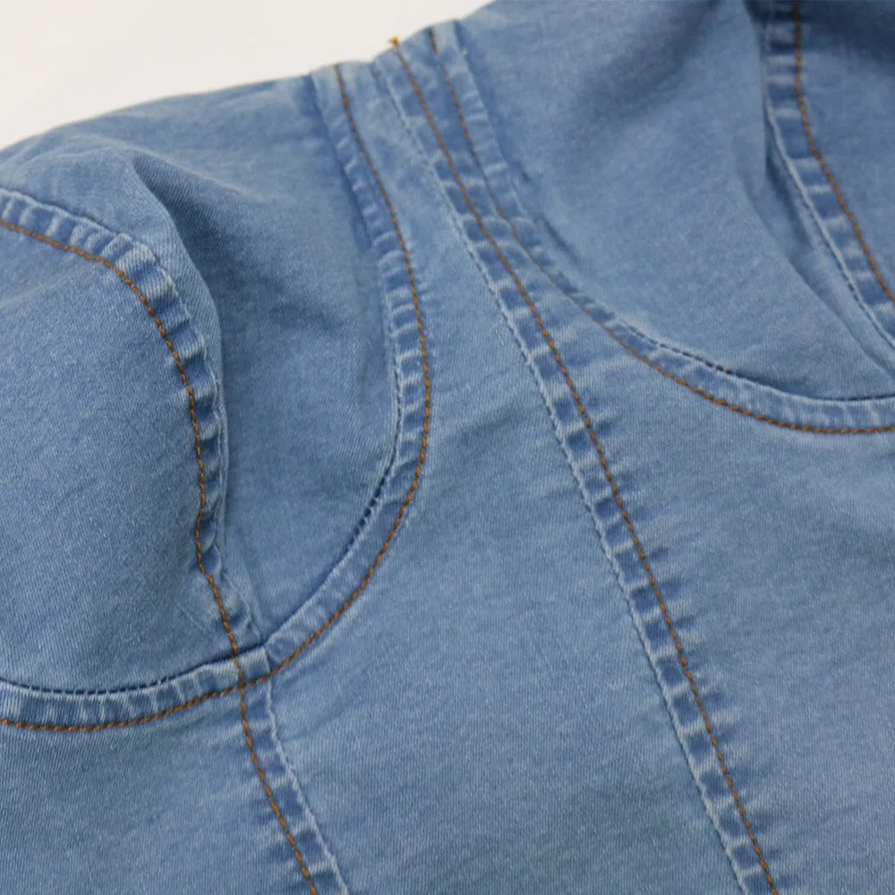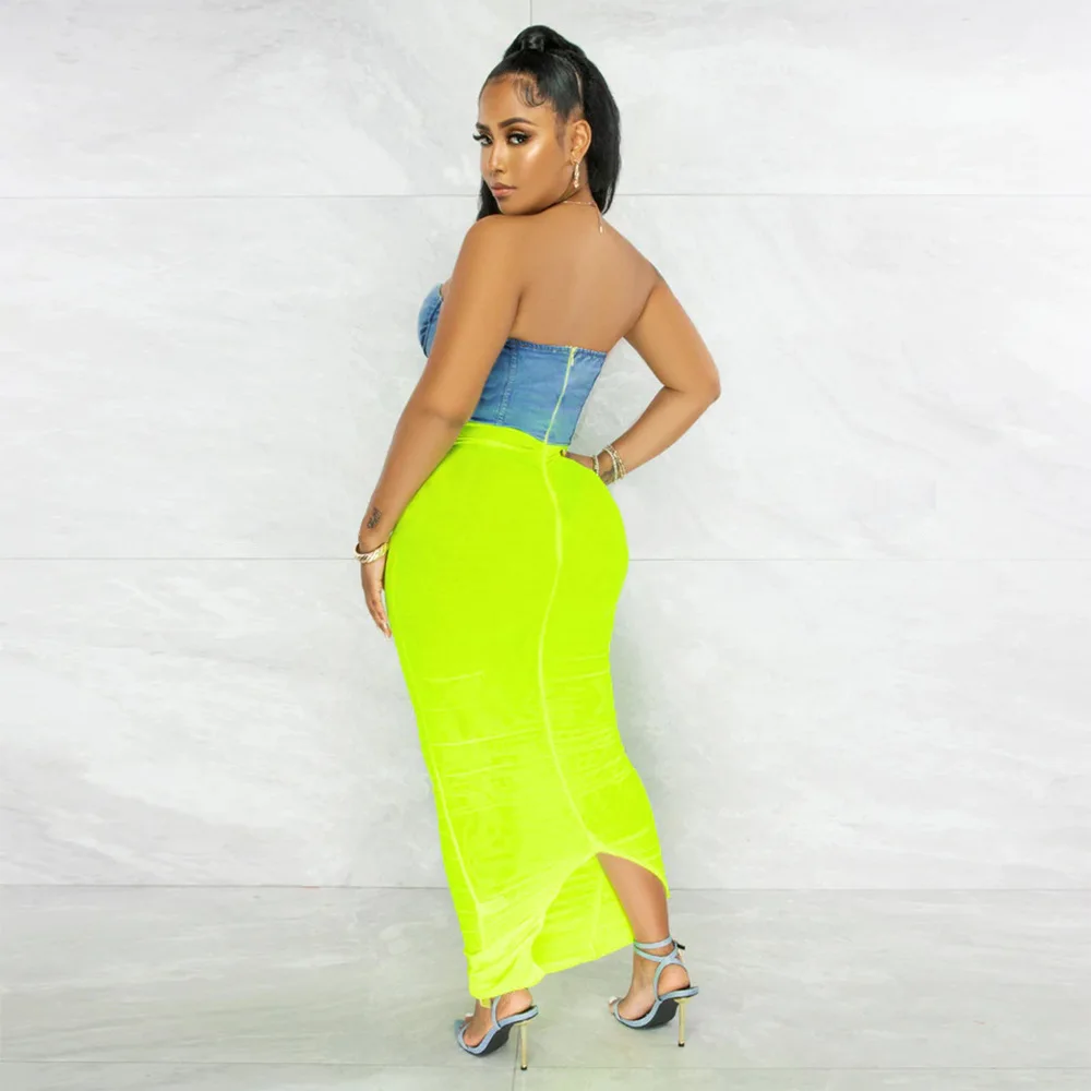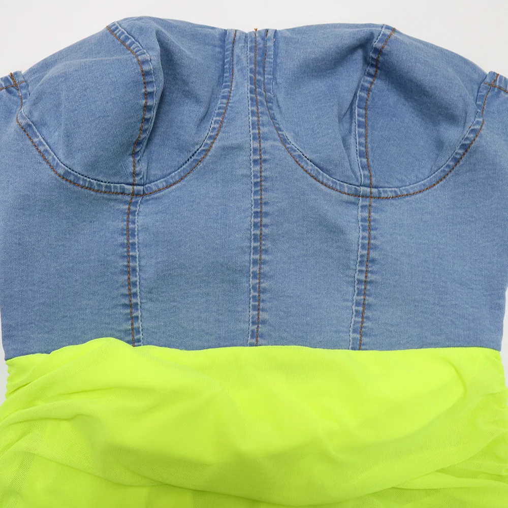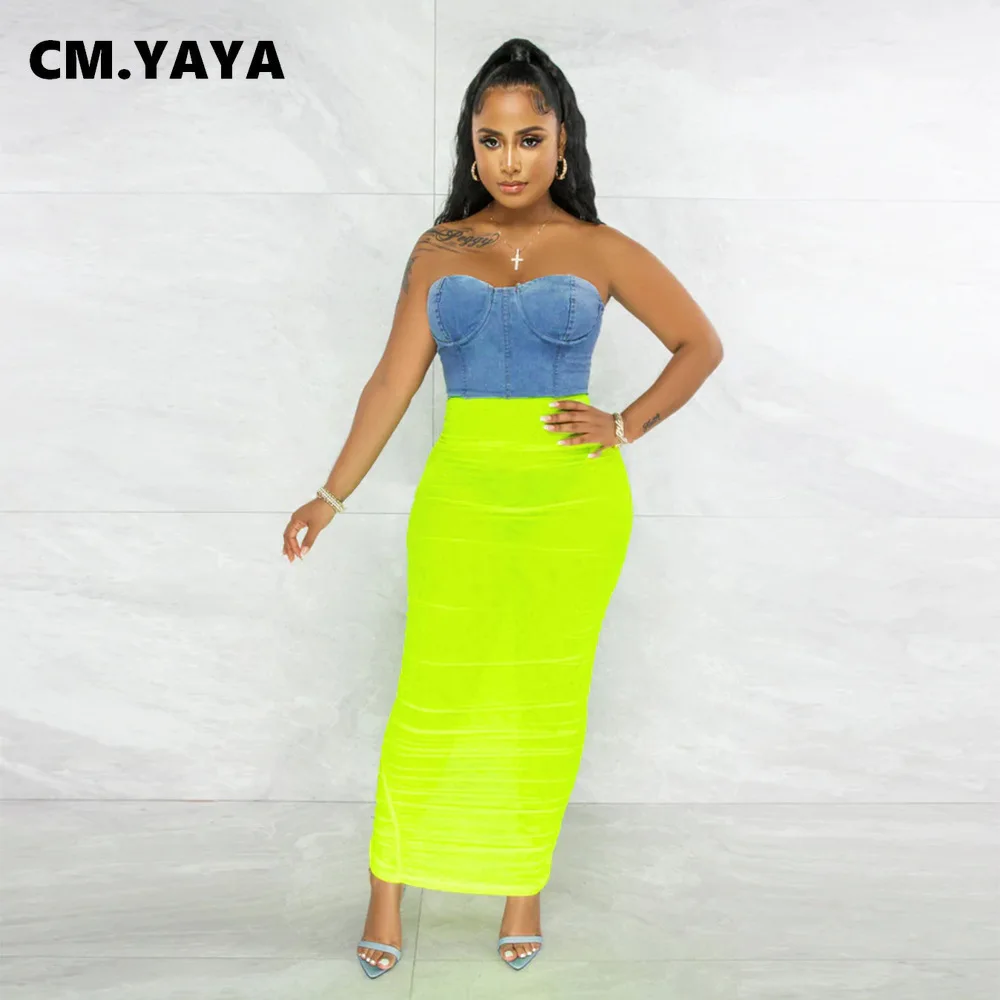 CM.YAYA Denim Patchwork Strapless High Waist Tunic Ruched Bodycon Midi Dress Women 2022 Sexy Party Club Jean Sleeveless Dresses