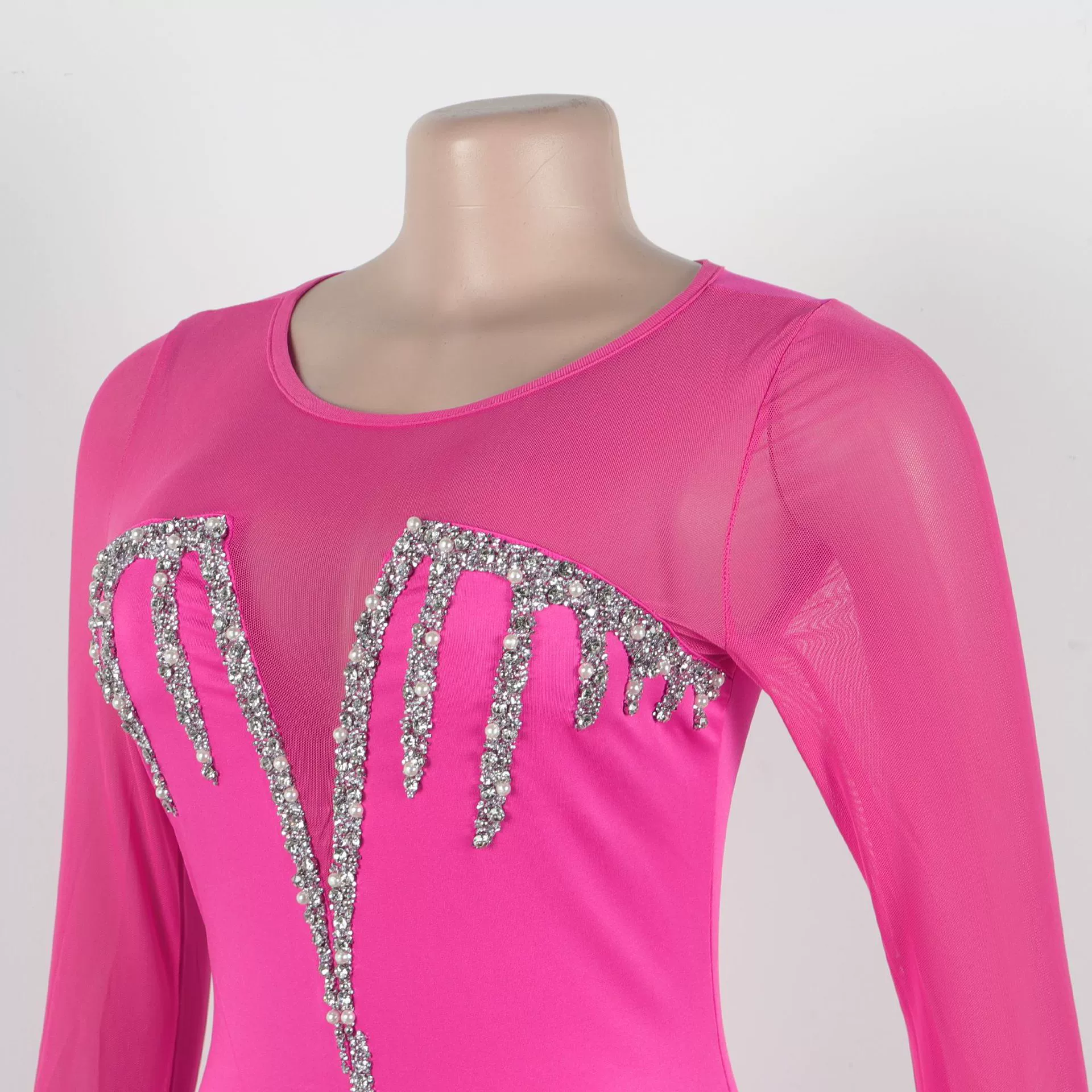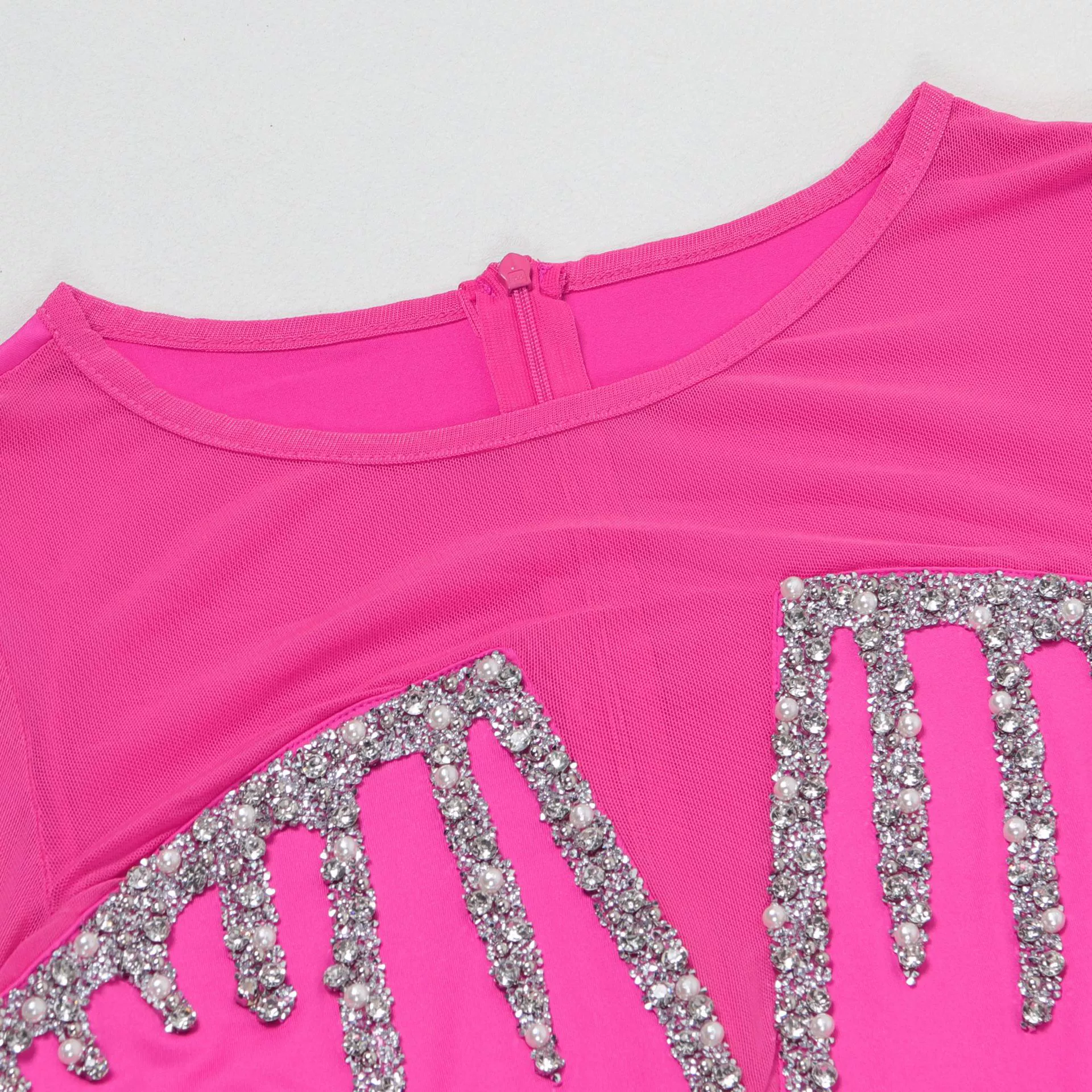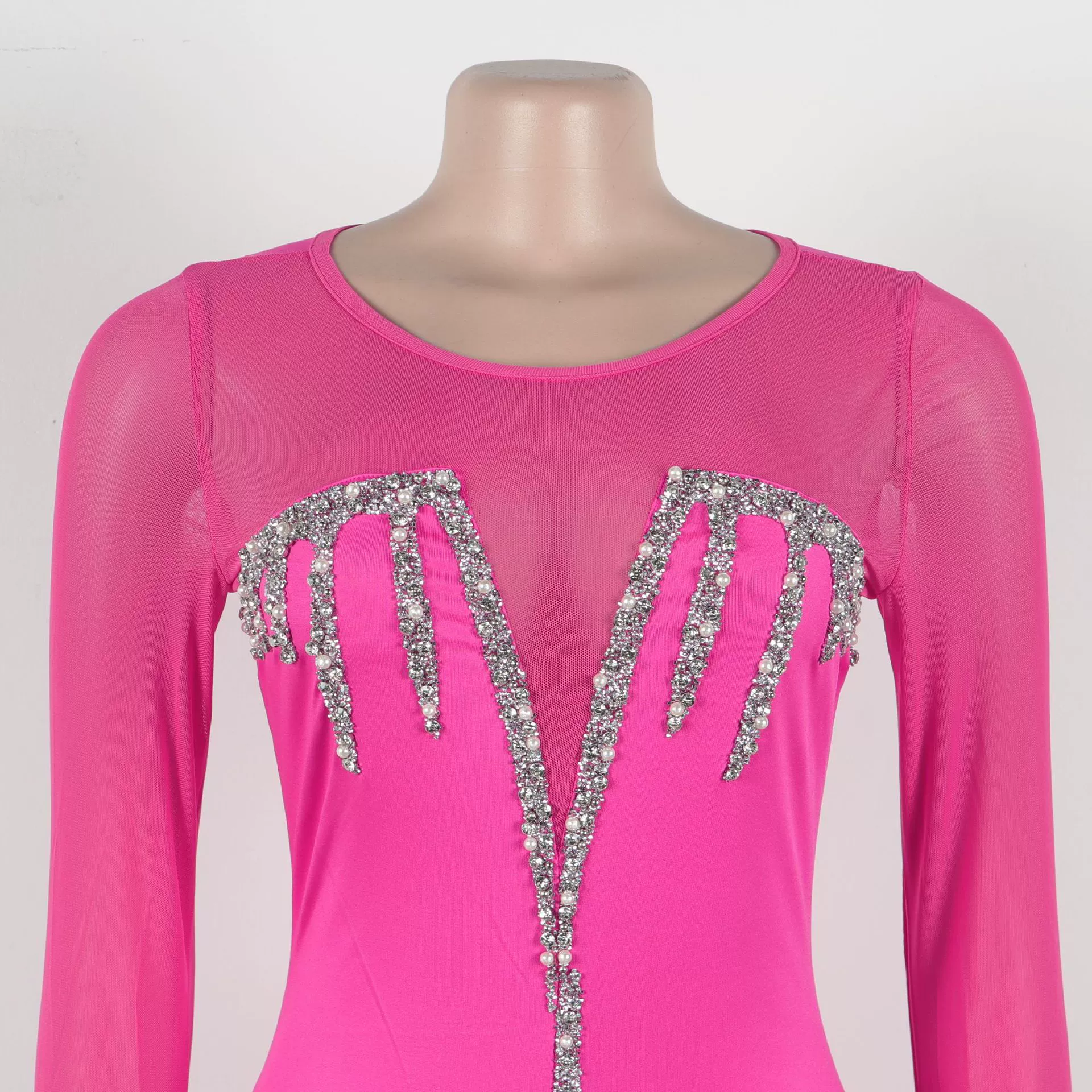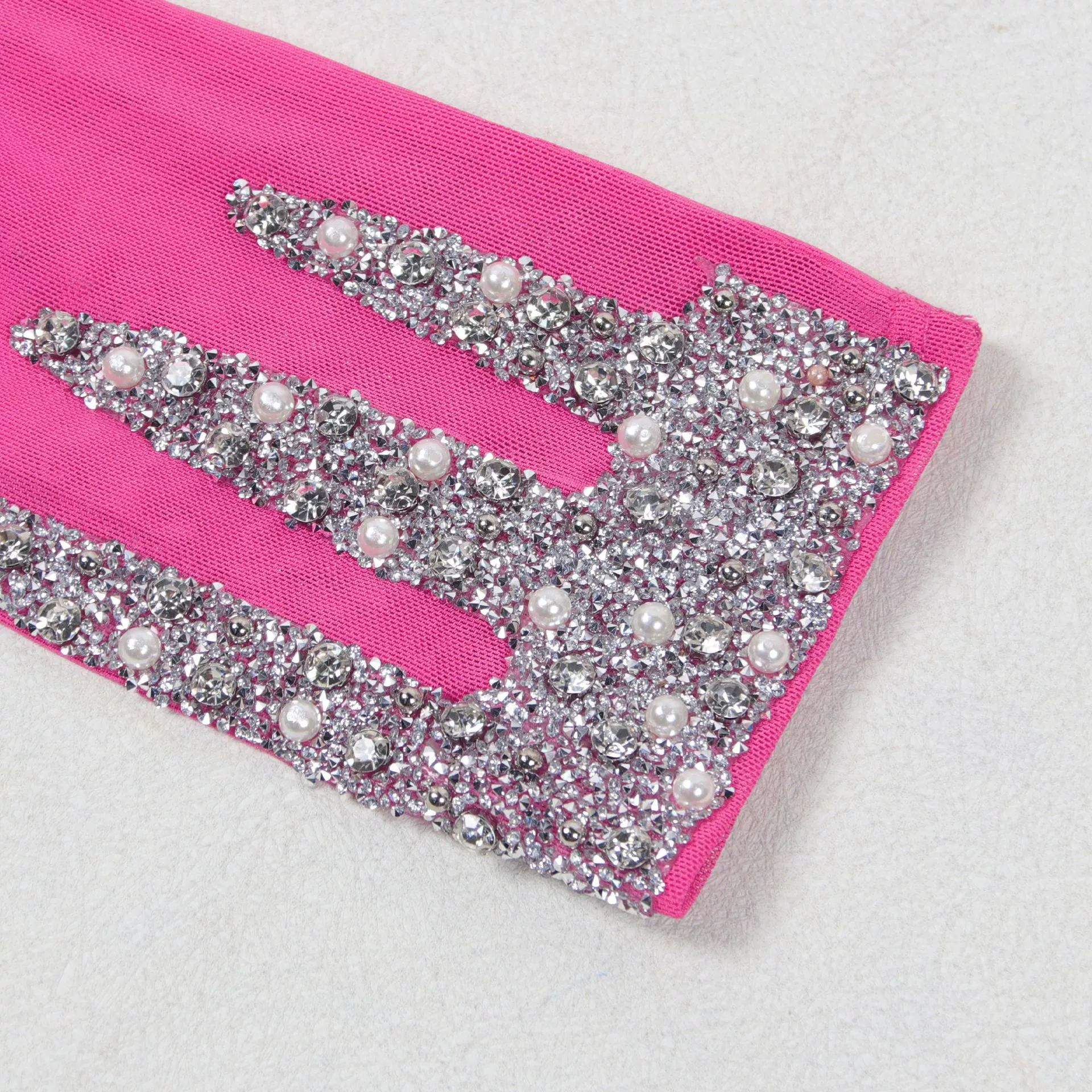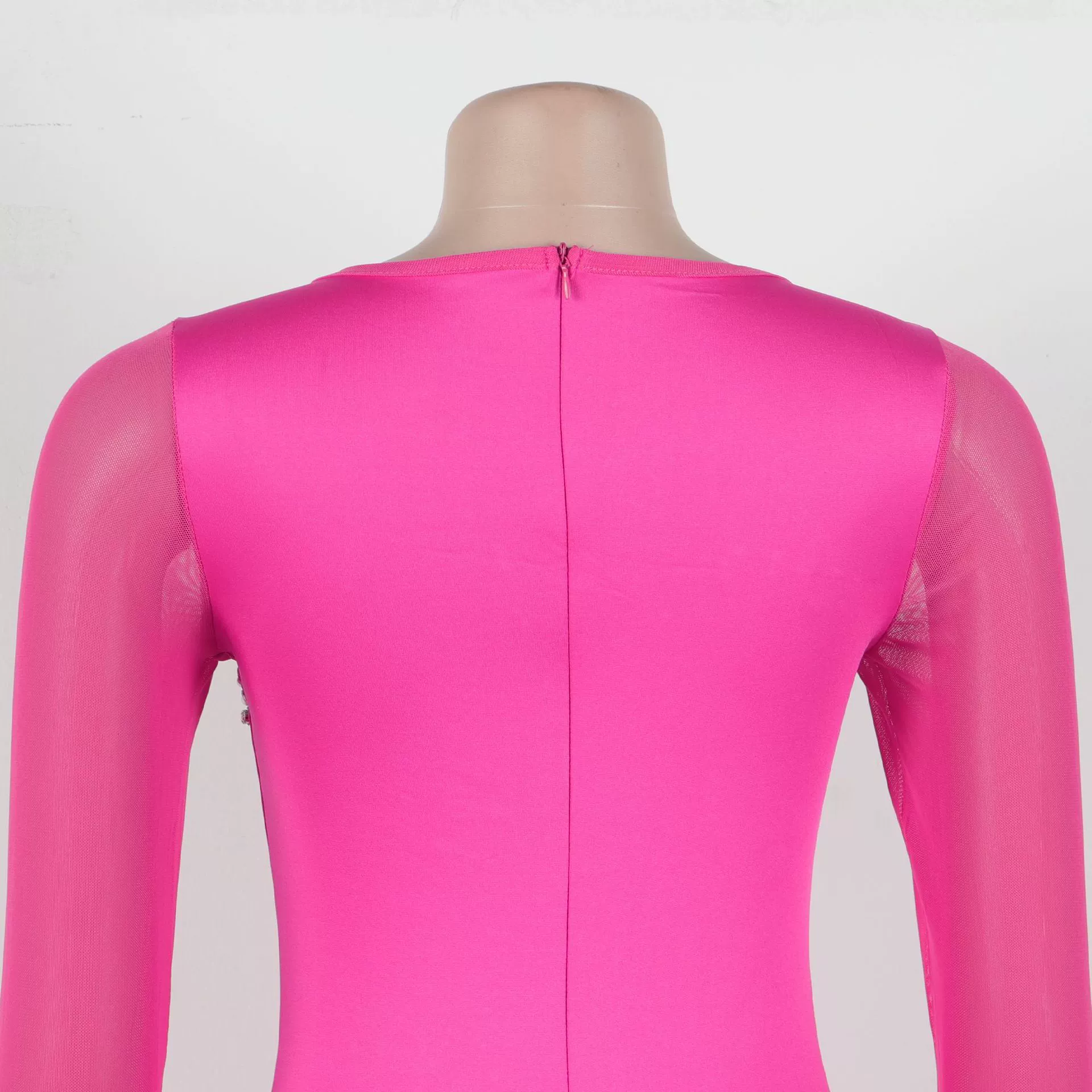 CM.YAYA Diamonds Hot Rhinestones O-neck Women Mesh Full Sleeve Long Dress 2025 High Split Party Night Evening Prom Maxi Dresses