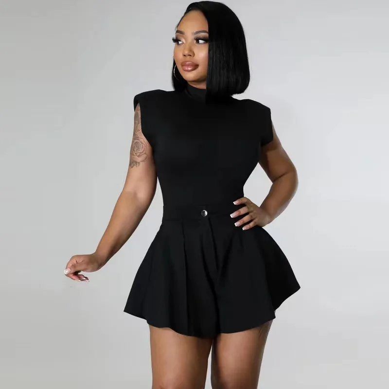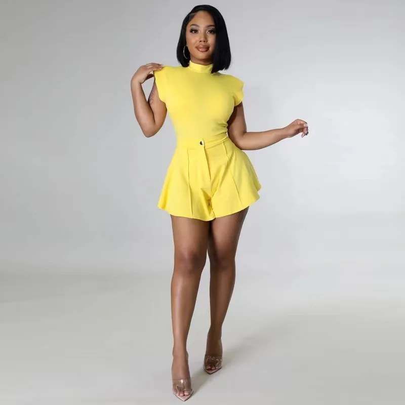 CM.YAYA Elegant Active Women’s Set Bodysuit and Flare Shorts Fashion Chic Tracksuit Two 2Piece Set Fitness Outfit 2022 Sweatsuit