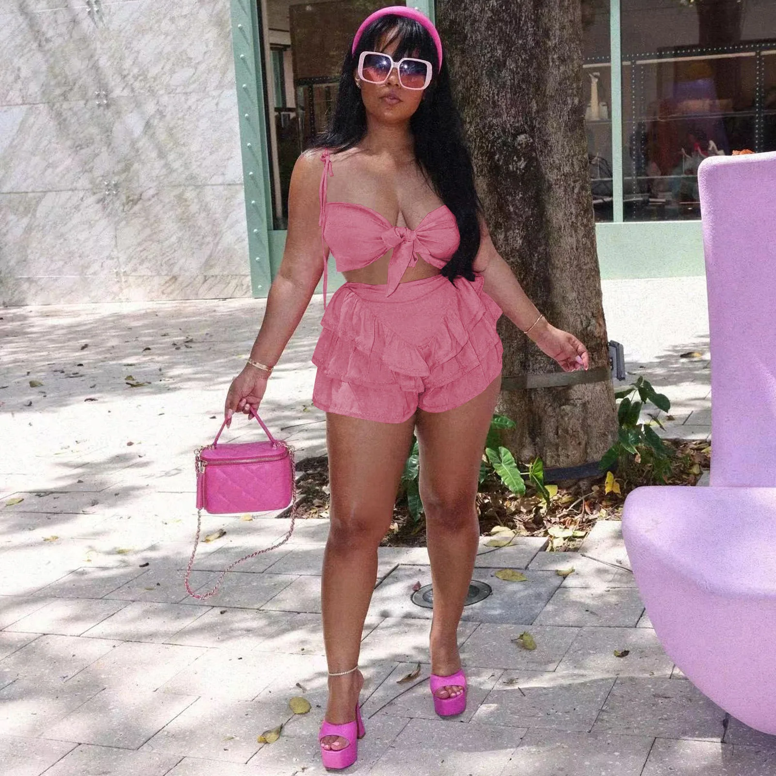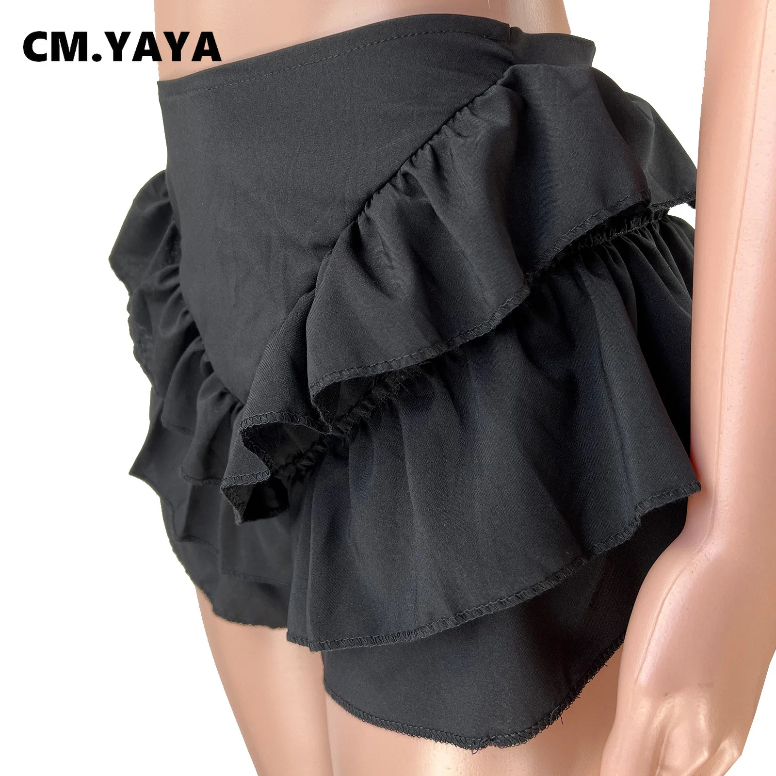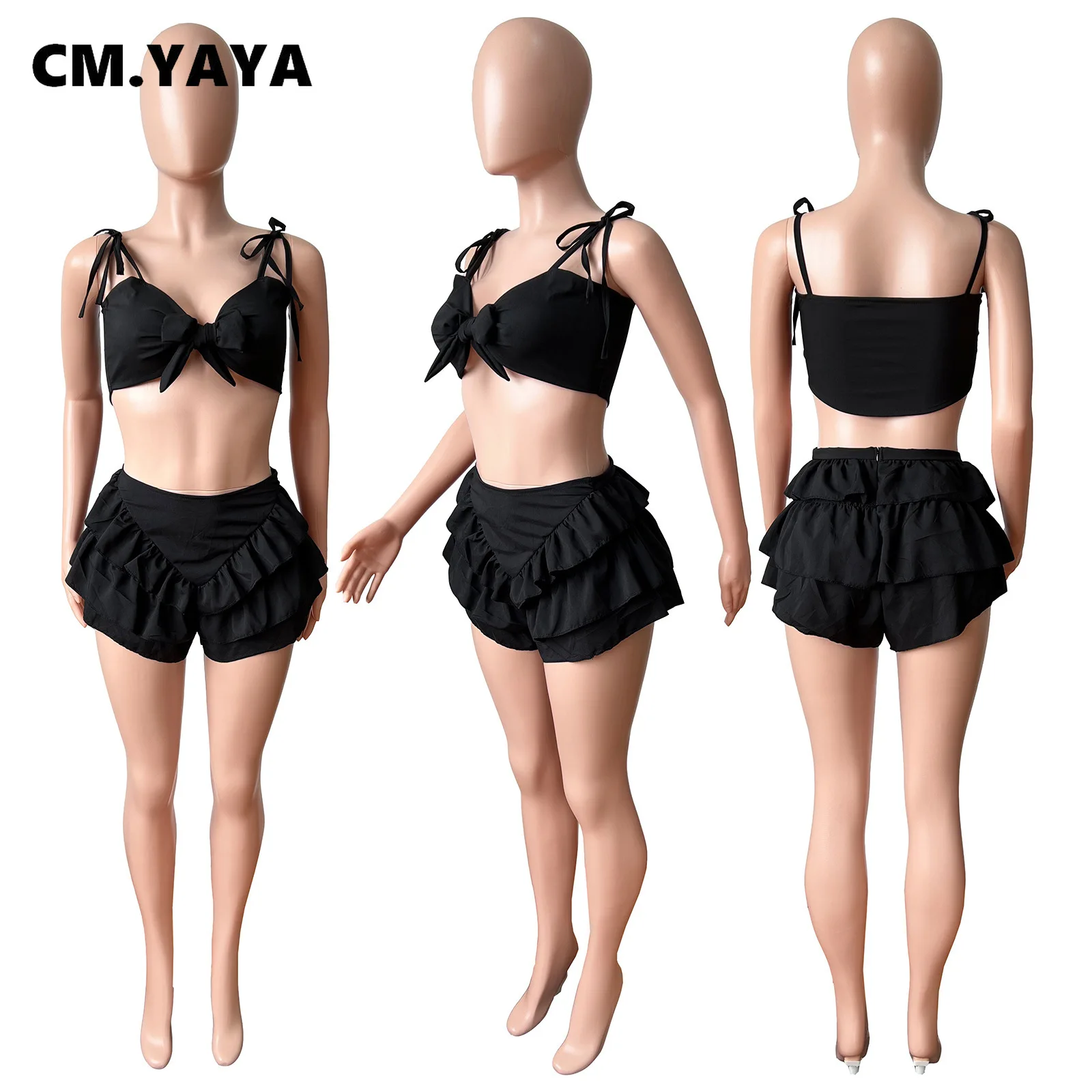 CM.YAYA Elegant Chic Women’s Set Bra Top and Cascading Ruffles Shorts Set 2022 Tracksuit Beach Two 2 Piece Set Fitness Outfits