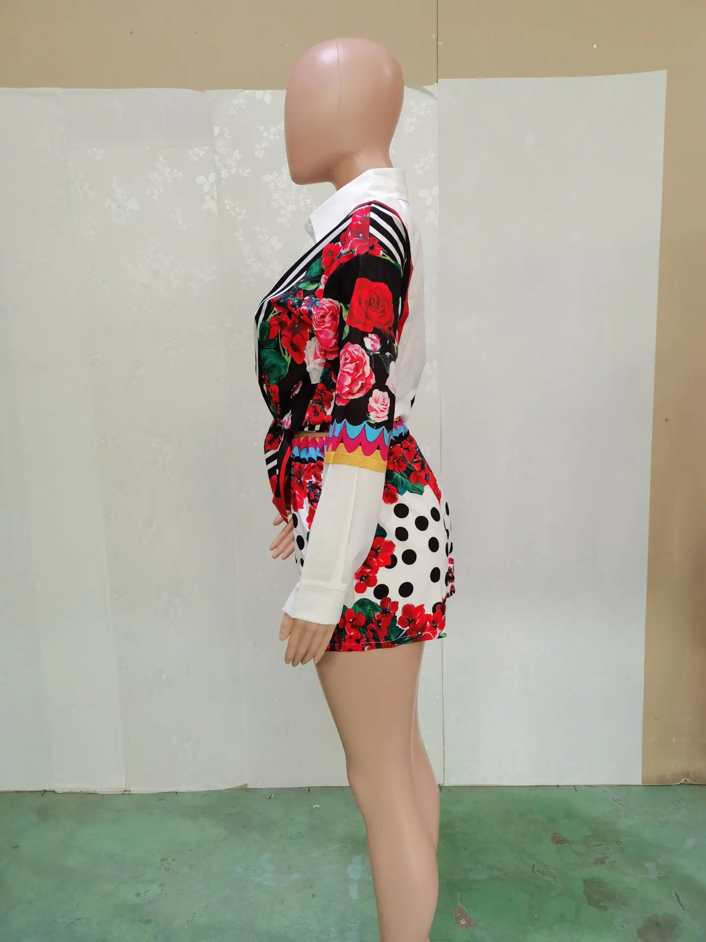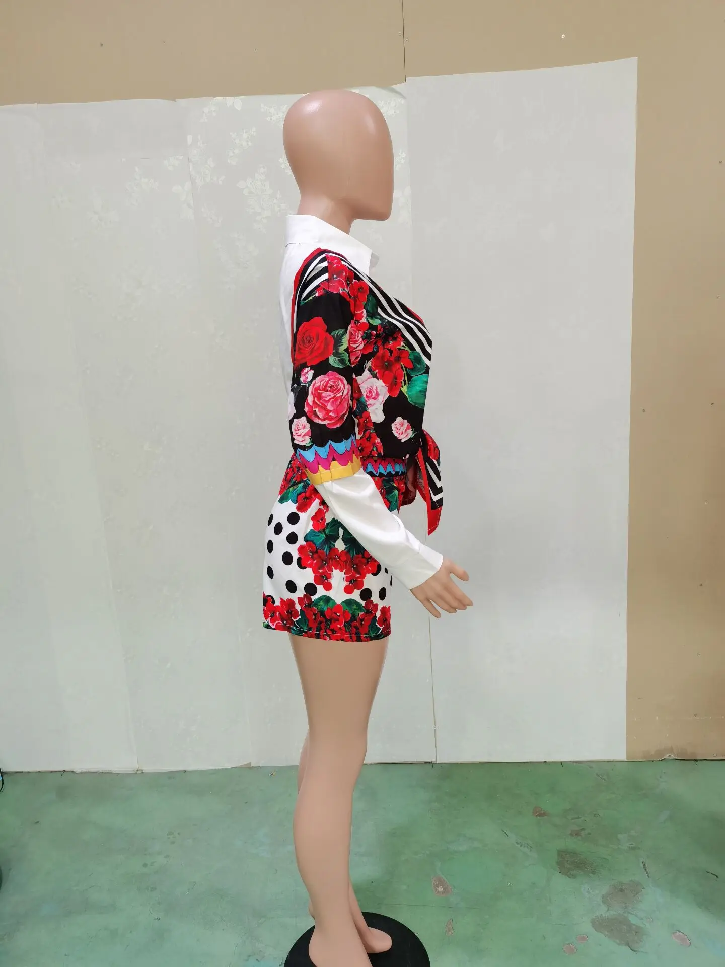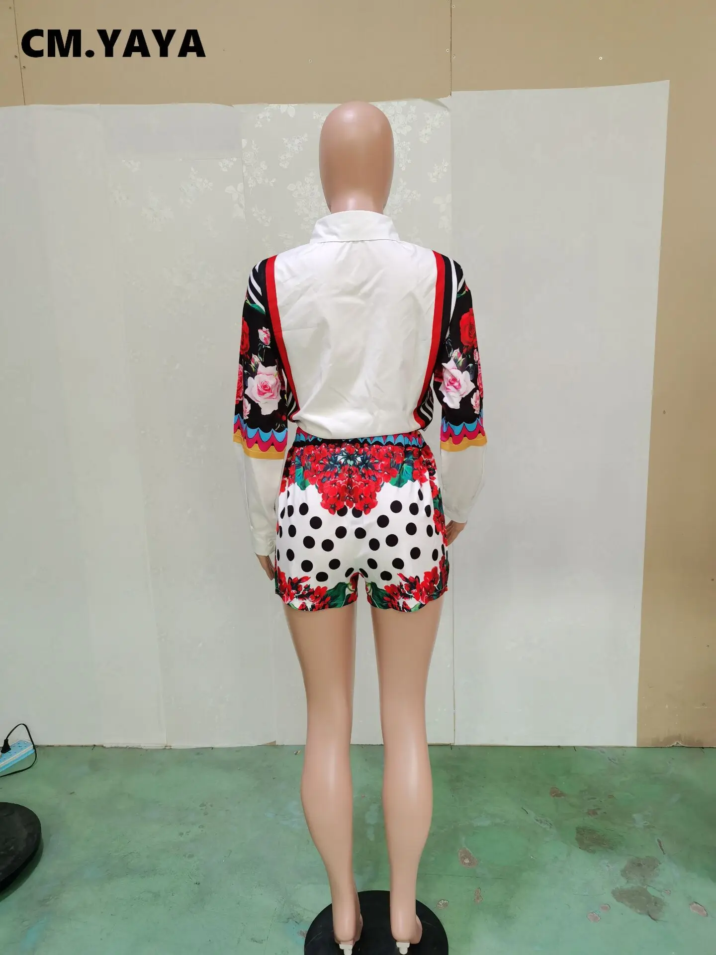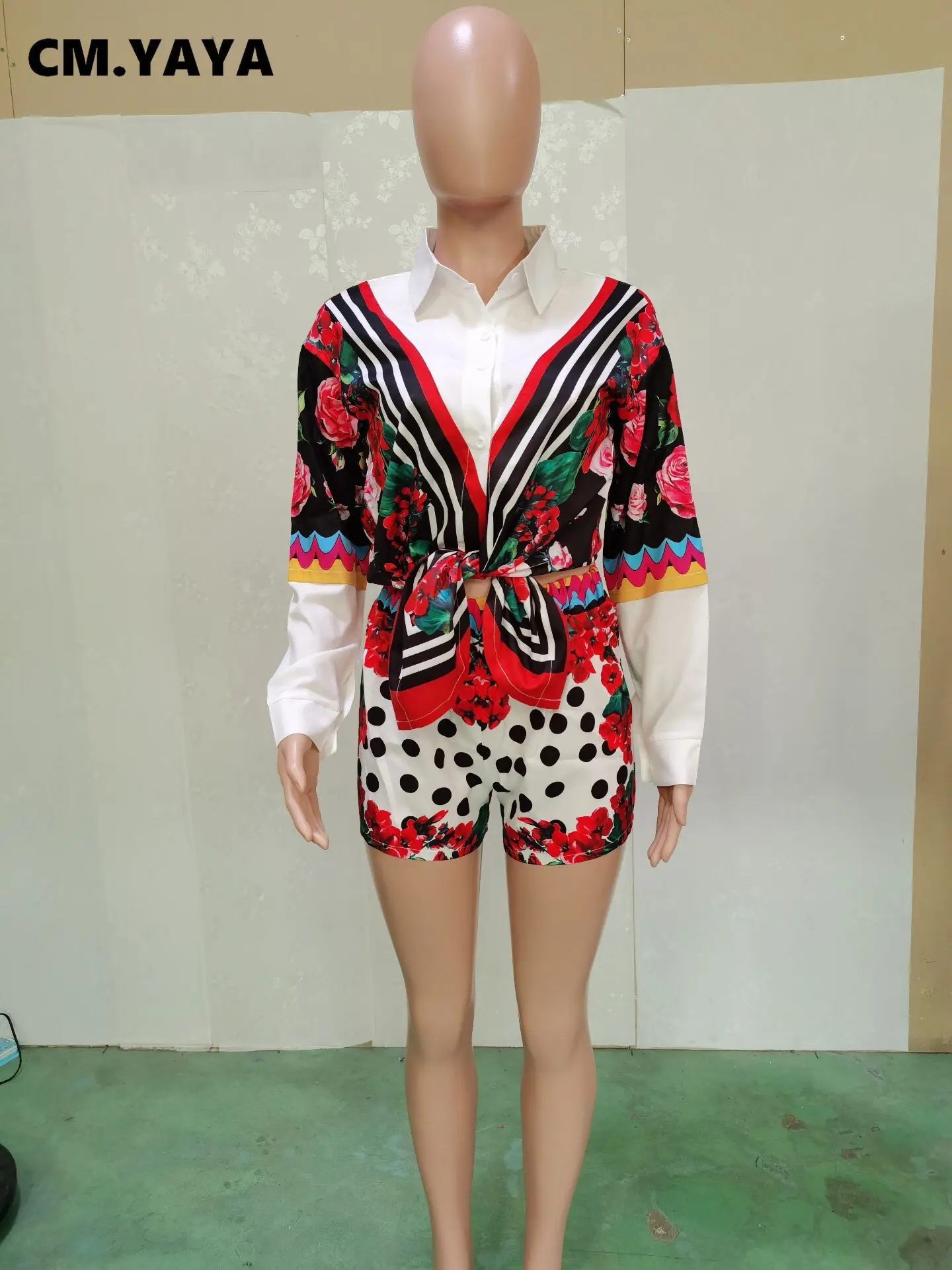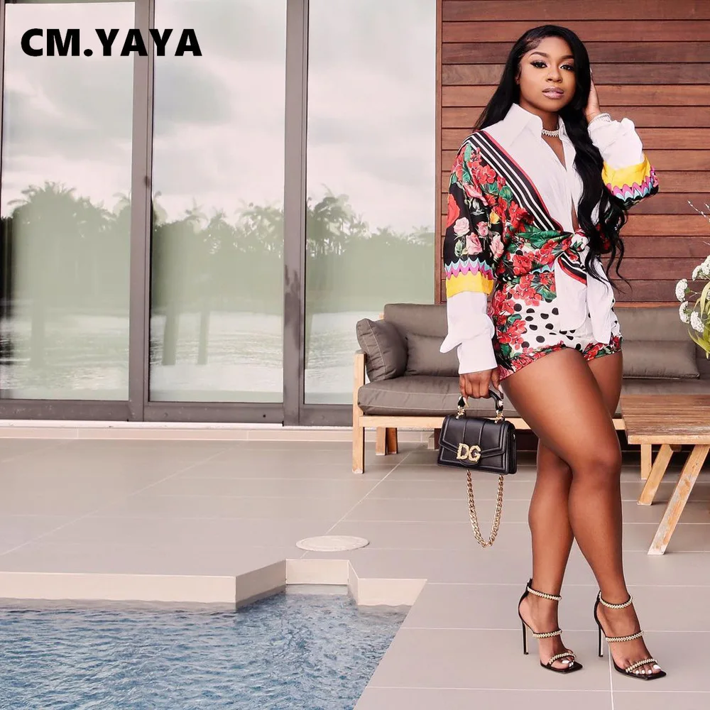 CM.YAYA Elegant Floral Women’s Set Long Sleeve Shirt and Shorts Suit Tracksuit Boho Two 2 Piece Set Fitness Outfits 2022 Summer