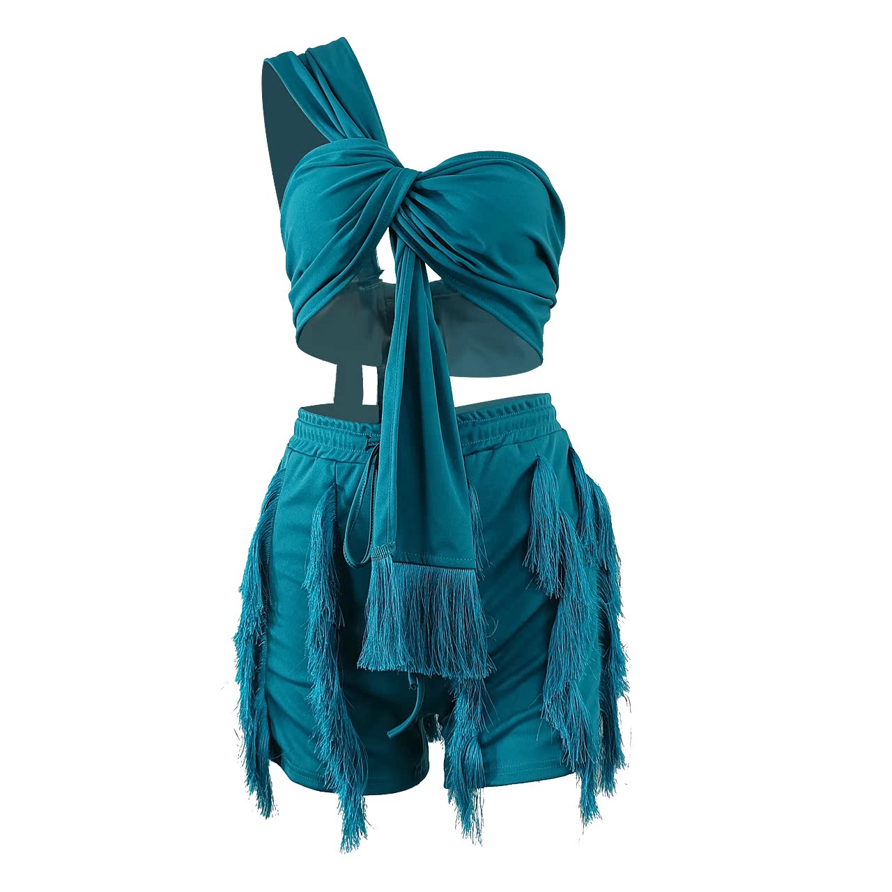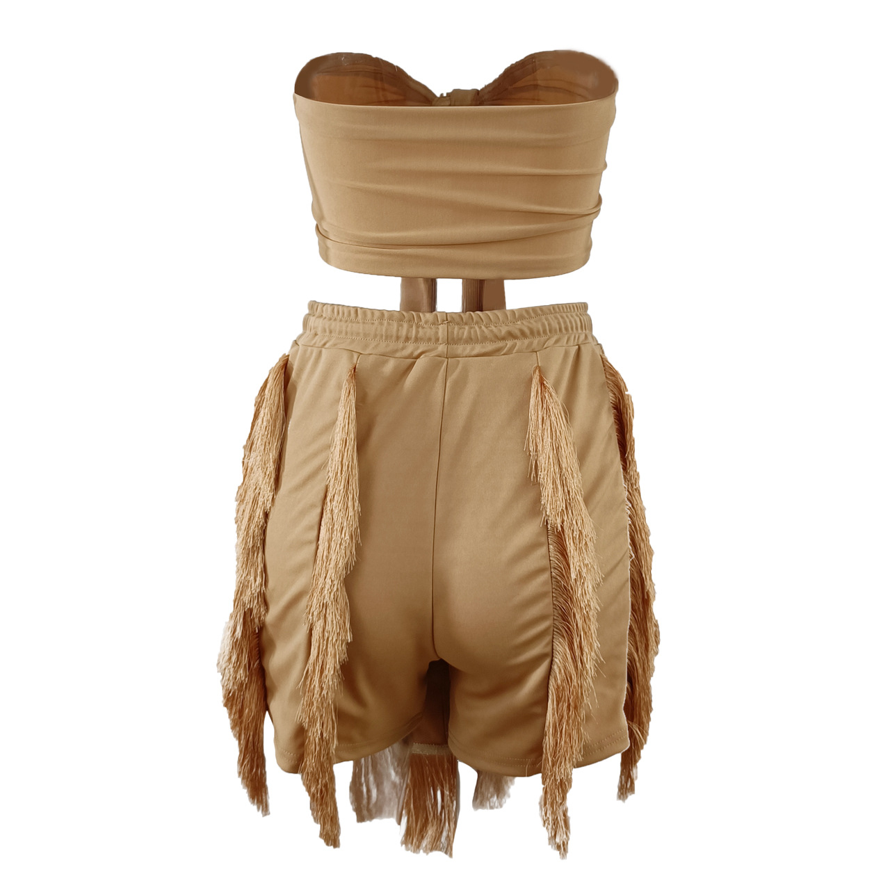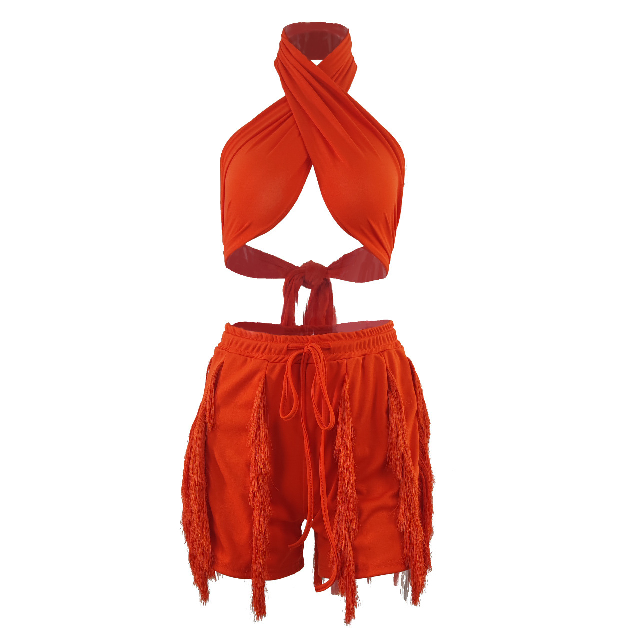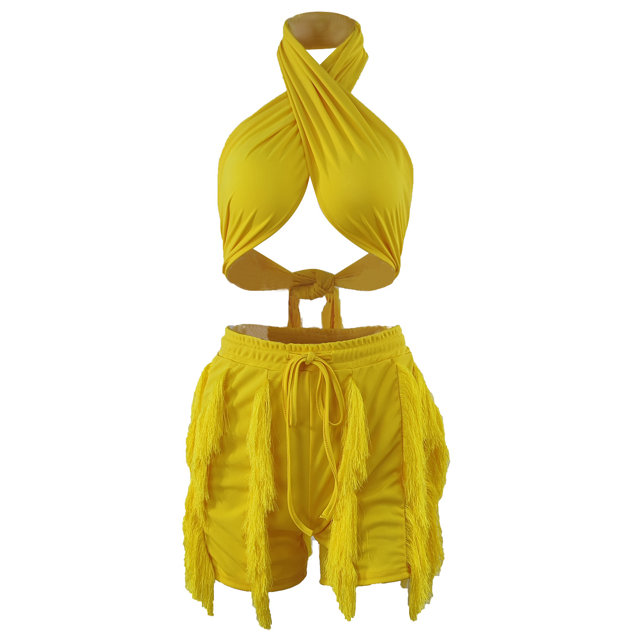 CM.YAYA Elegant INS Street Women’s Set Halter Crop Top and Tassel Shorts Suit Sexy Fashion Tracksuit Two 2 Piece Set Outfits