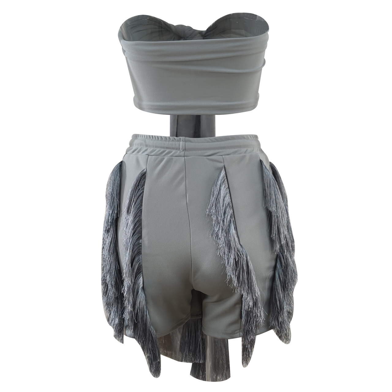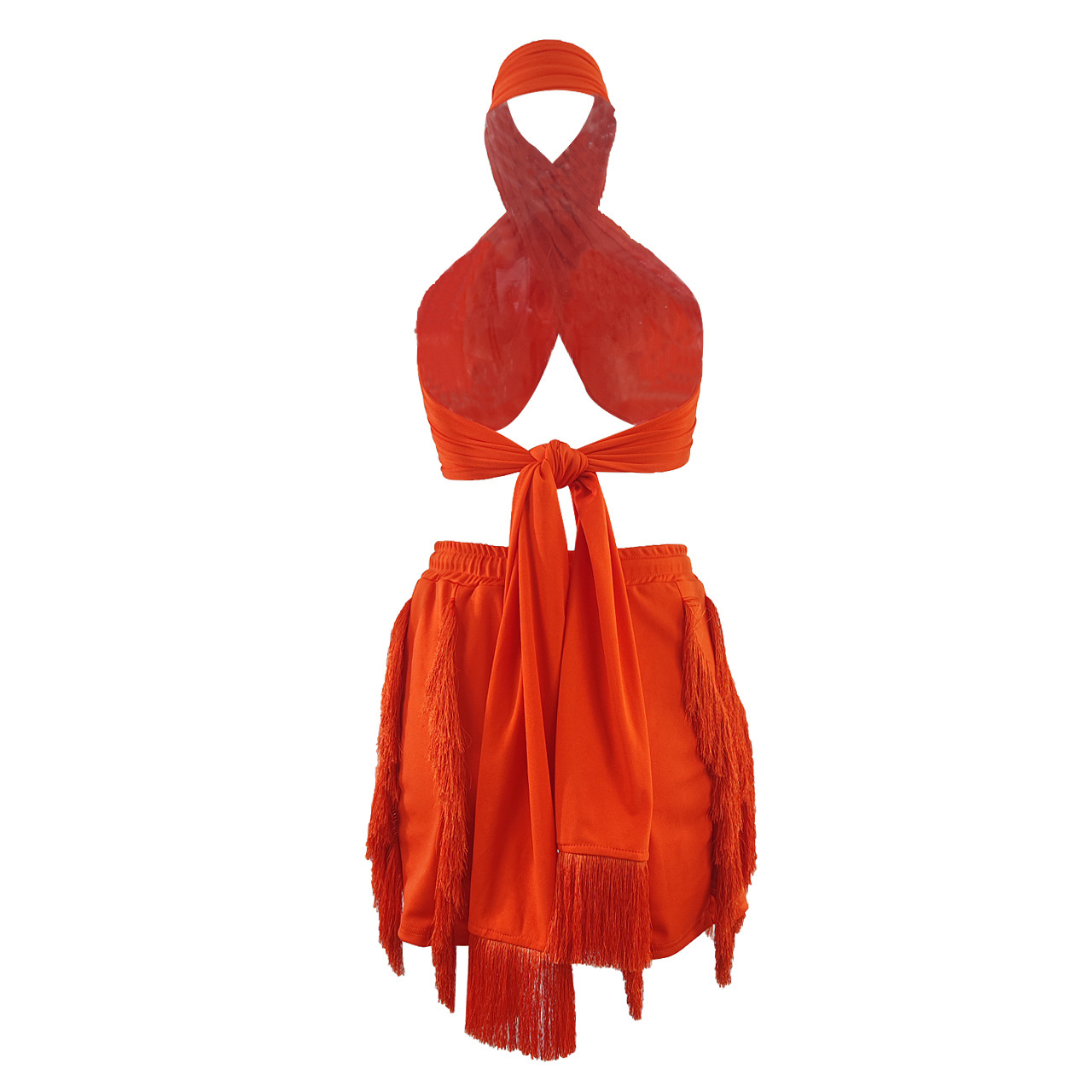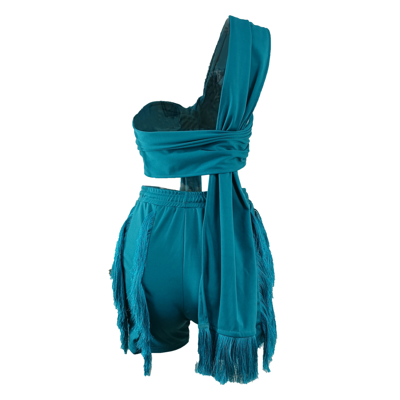 CM.YAYA Elegant INS Street Women’s Set Halter Crop Top and Tassel Shorts Suit Sexy Fashion Tracksuit Two 2 Piece Set Outfits