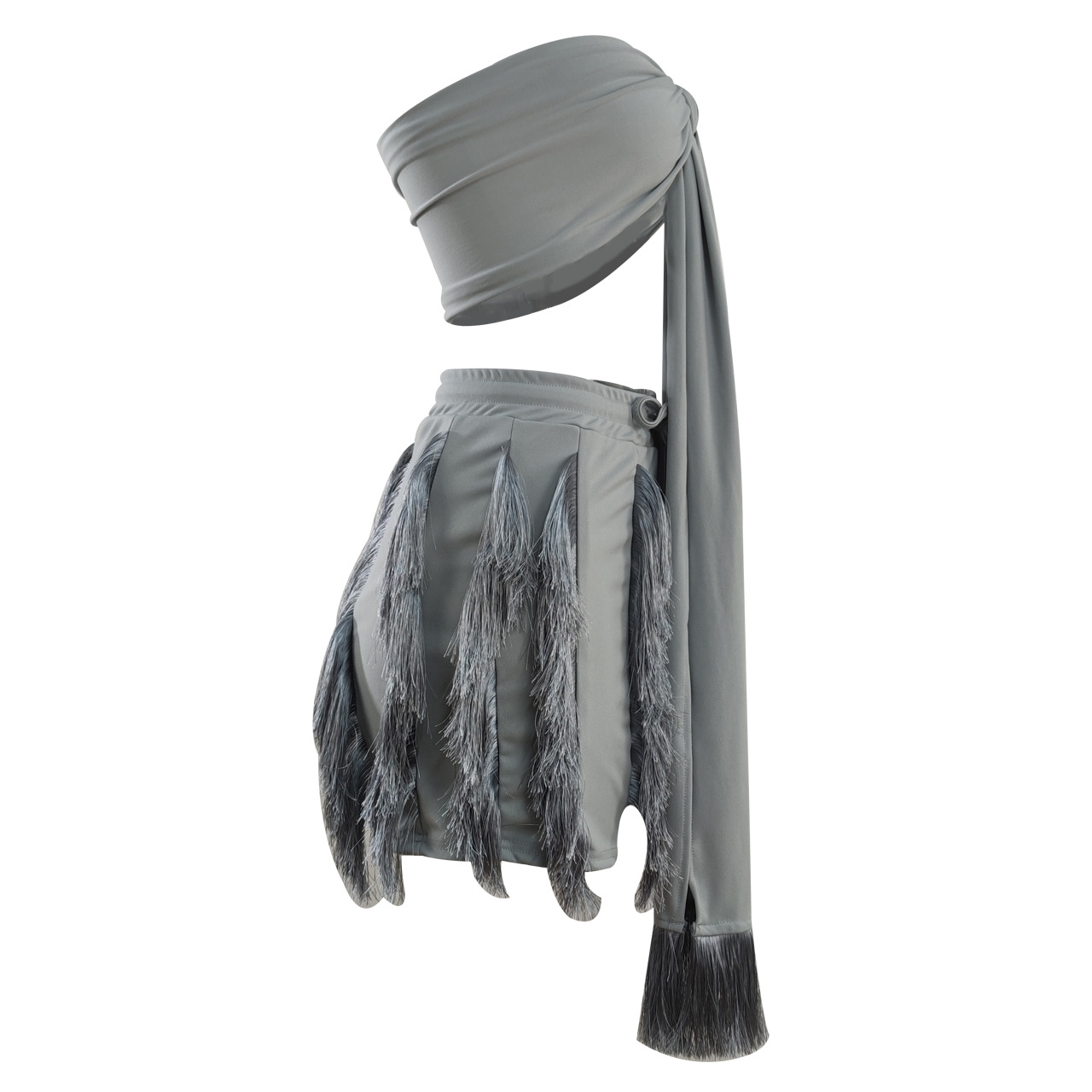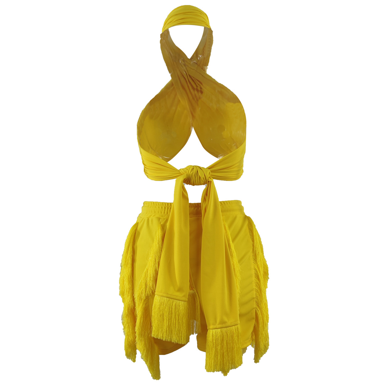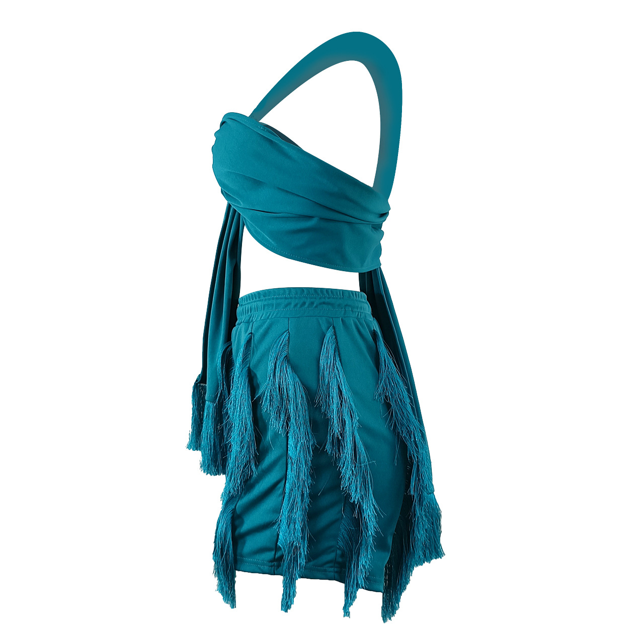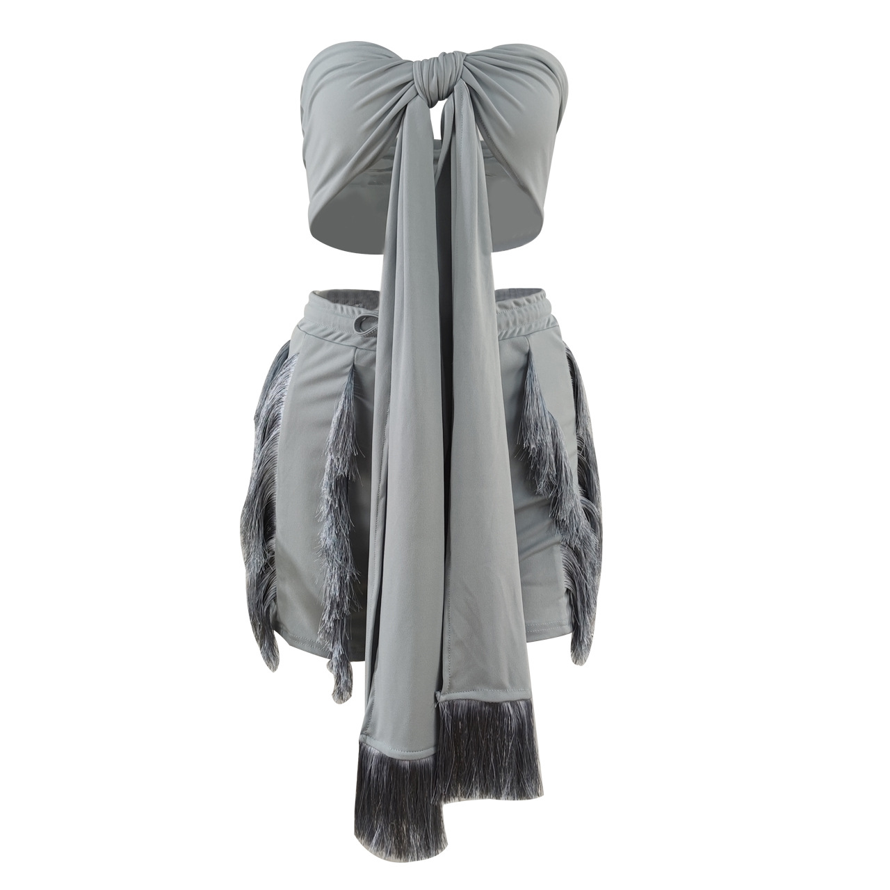 CM.YAYA Elegant INS Street Women’s Set Halter Crop Top and Tassel Shorts Suit Sexy Fashion Tracksuit Two 2 Piece Set Outfits