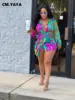 CM.YAYA Elegant Satin Tie Dye Women Wraped Turn-down Neck Lapel Long Sleeve Asymmetrical Shirt Style Mini Dress