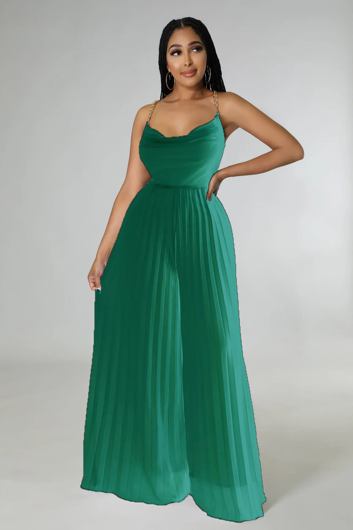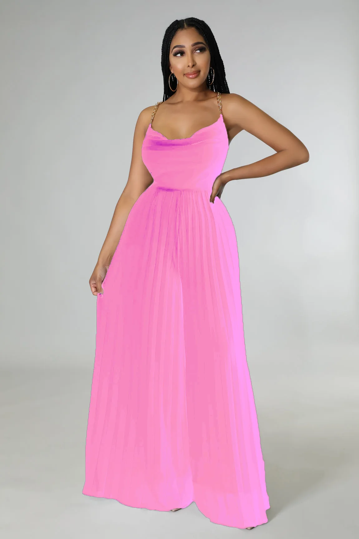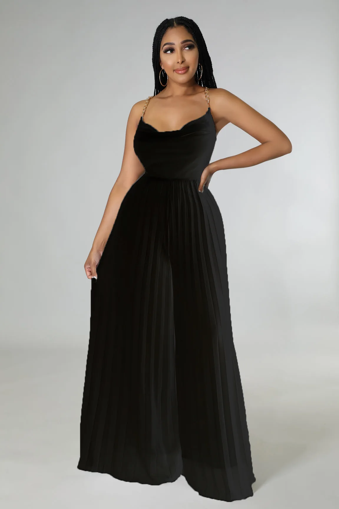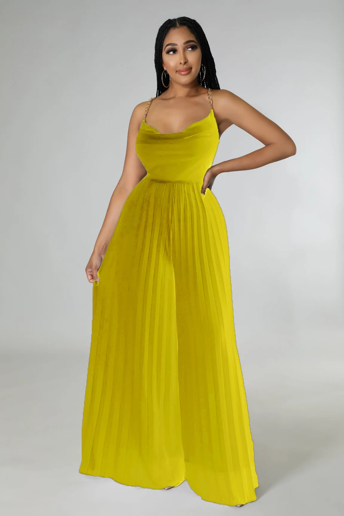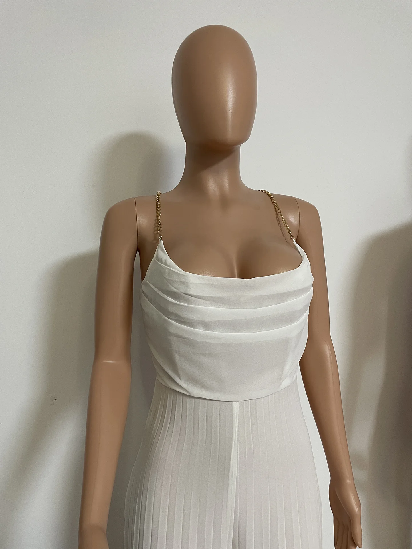 CM.YAYA Elegant Women Halter Neck Backless High Waist Pleated Loose Jumpsuit Chic Streetwear Party Wide Leg Straight Playsuit