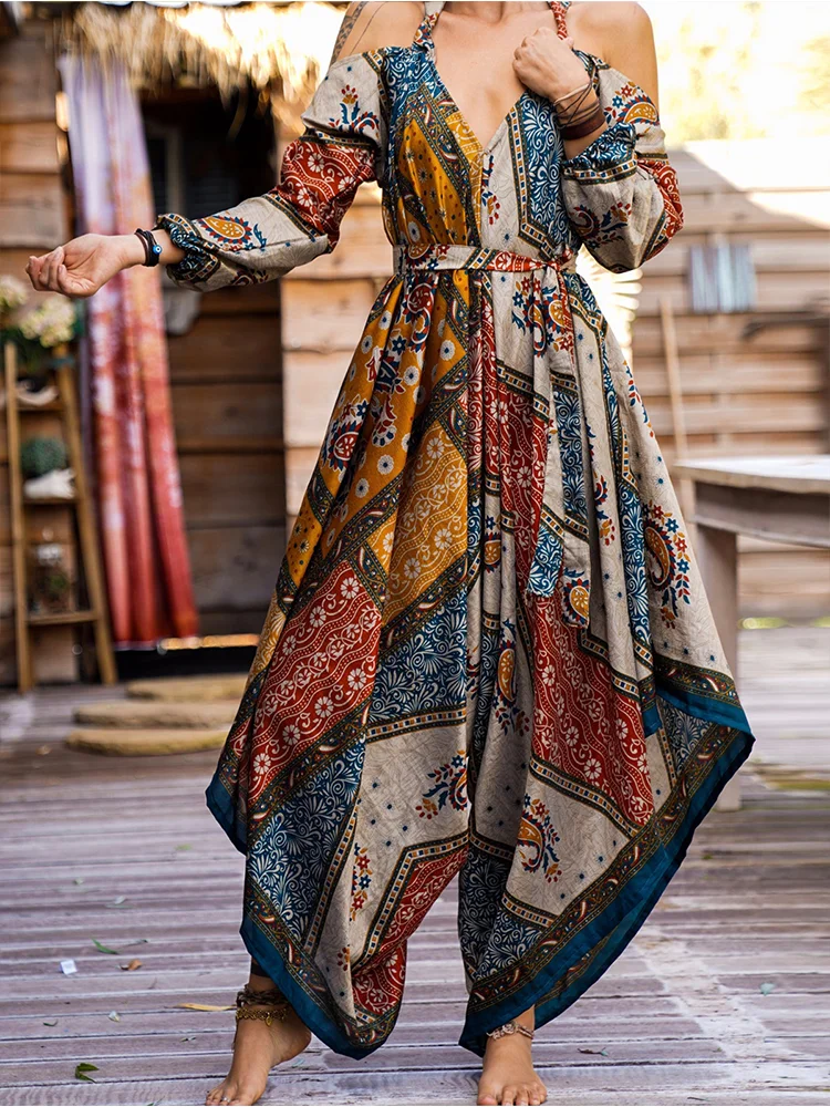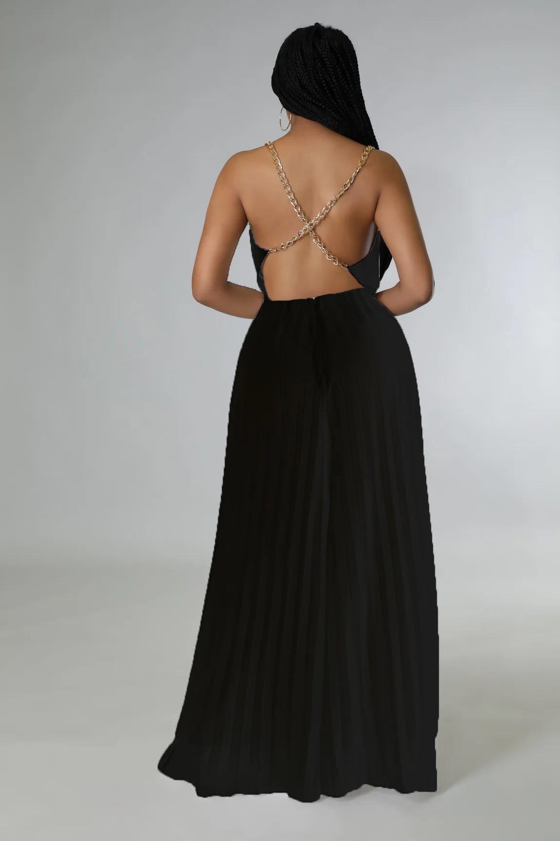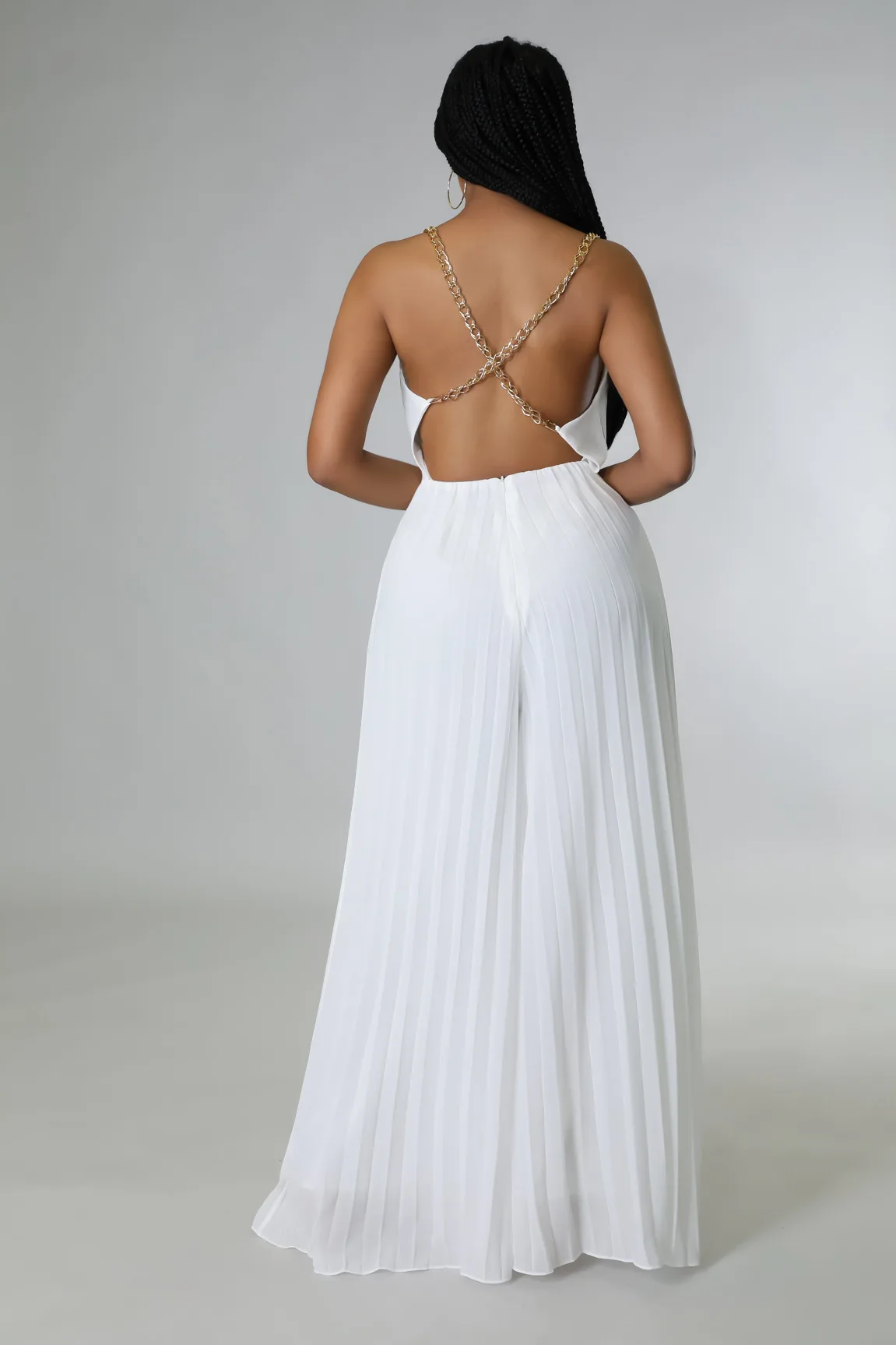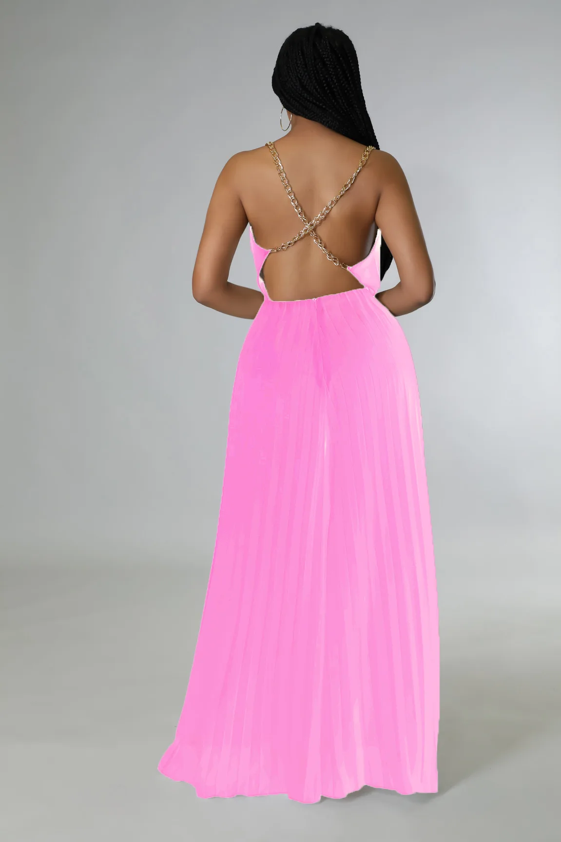 CM.YAYA Elegant Women Halter Neck Backless High Waist Pleated Loose Jumpsuit Chic Streetwear Party Wide Leg Straight Playsuit