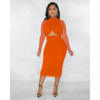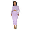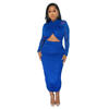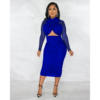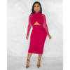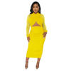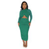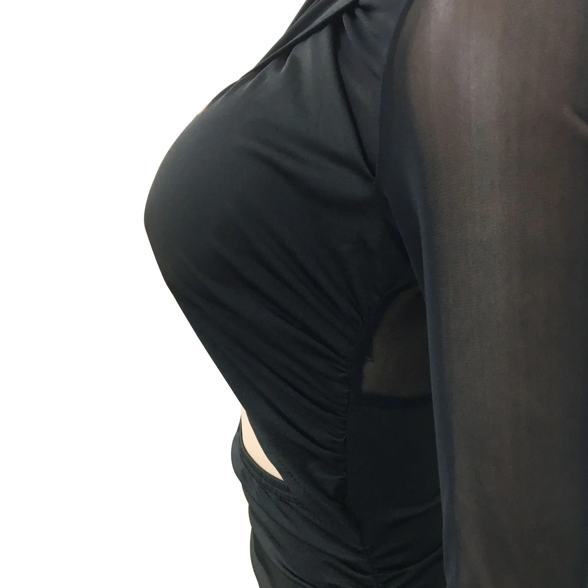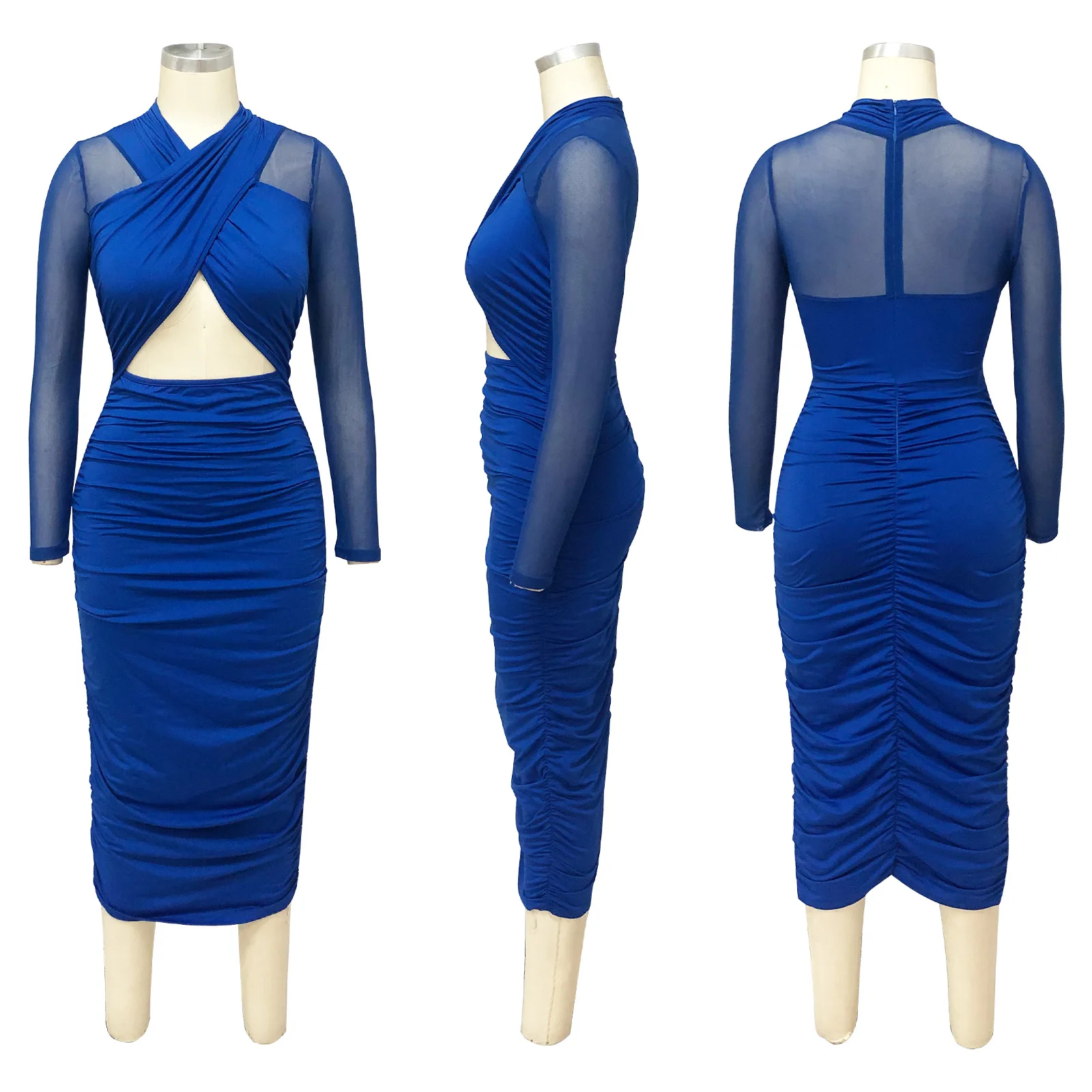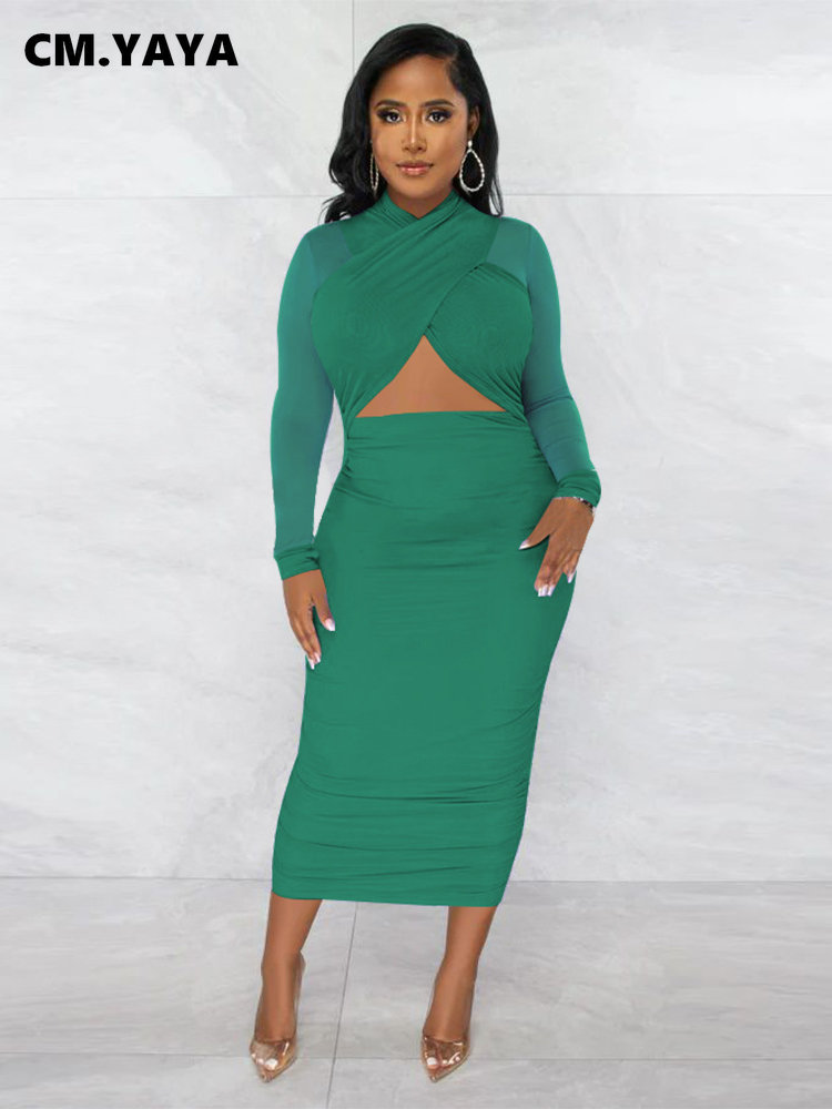 CM.YAYA Elegant Women Halter Neck Cutout Front Long Sleeve Ruched Bodycon Midi Dress Sexy Party Evening Prom Dresses Vestidos