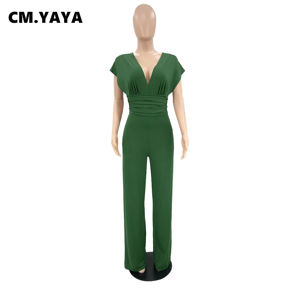 CM.YAYA Elegant Women Halter Neck High Waist Tunic Straight Jumpsuit 2022 Summer INS Sexy Night Party One Piece Overall Playsuit