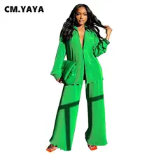CM.YAYA Elegant Women Long Sleeve Double Button Blazer and Pants Suits 2025 Chic Streetwear Fall Fashion Two 2 Piece Set Outfits