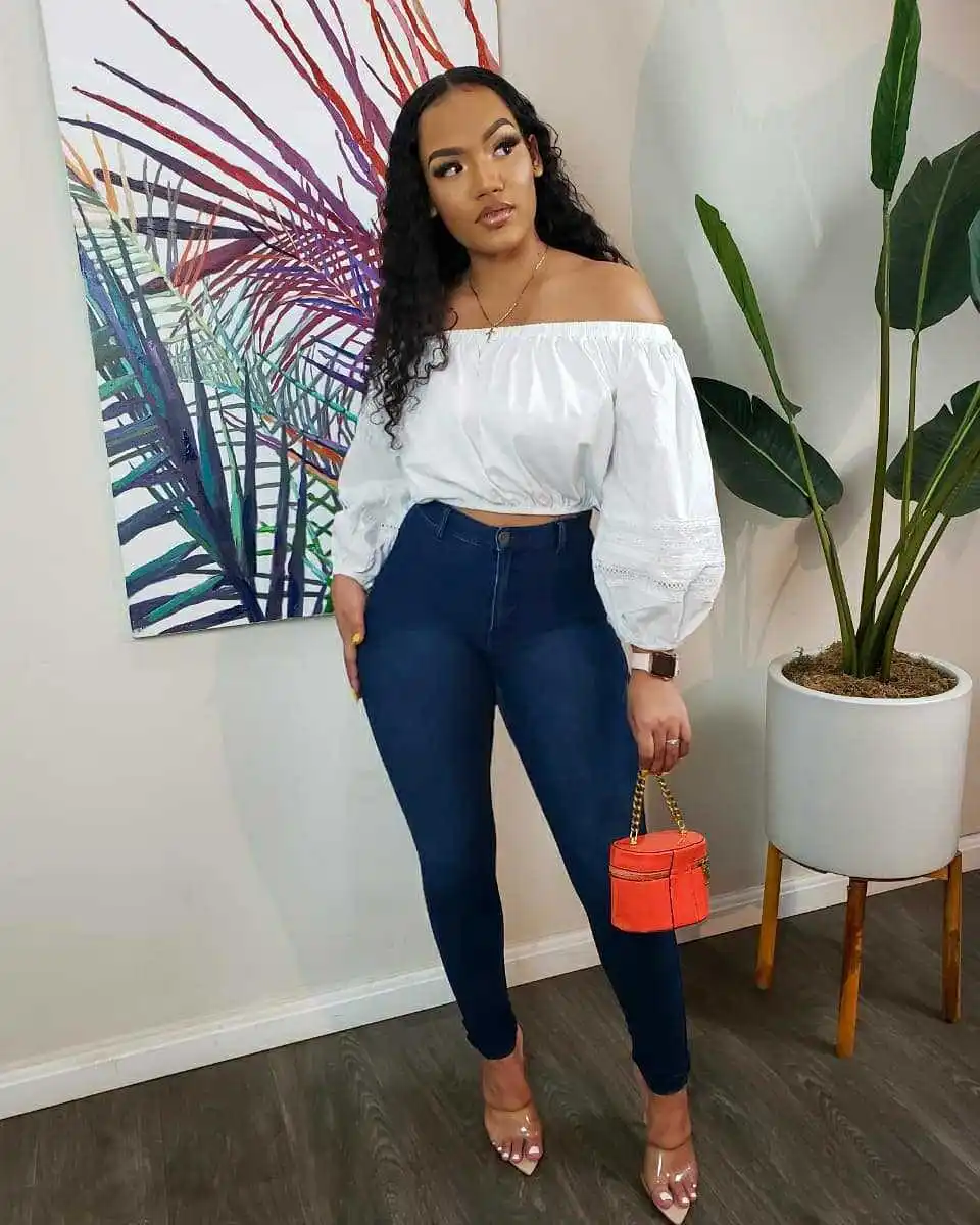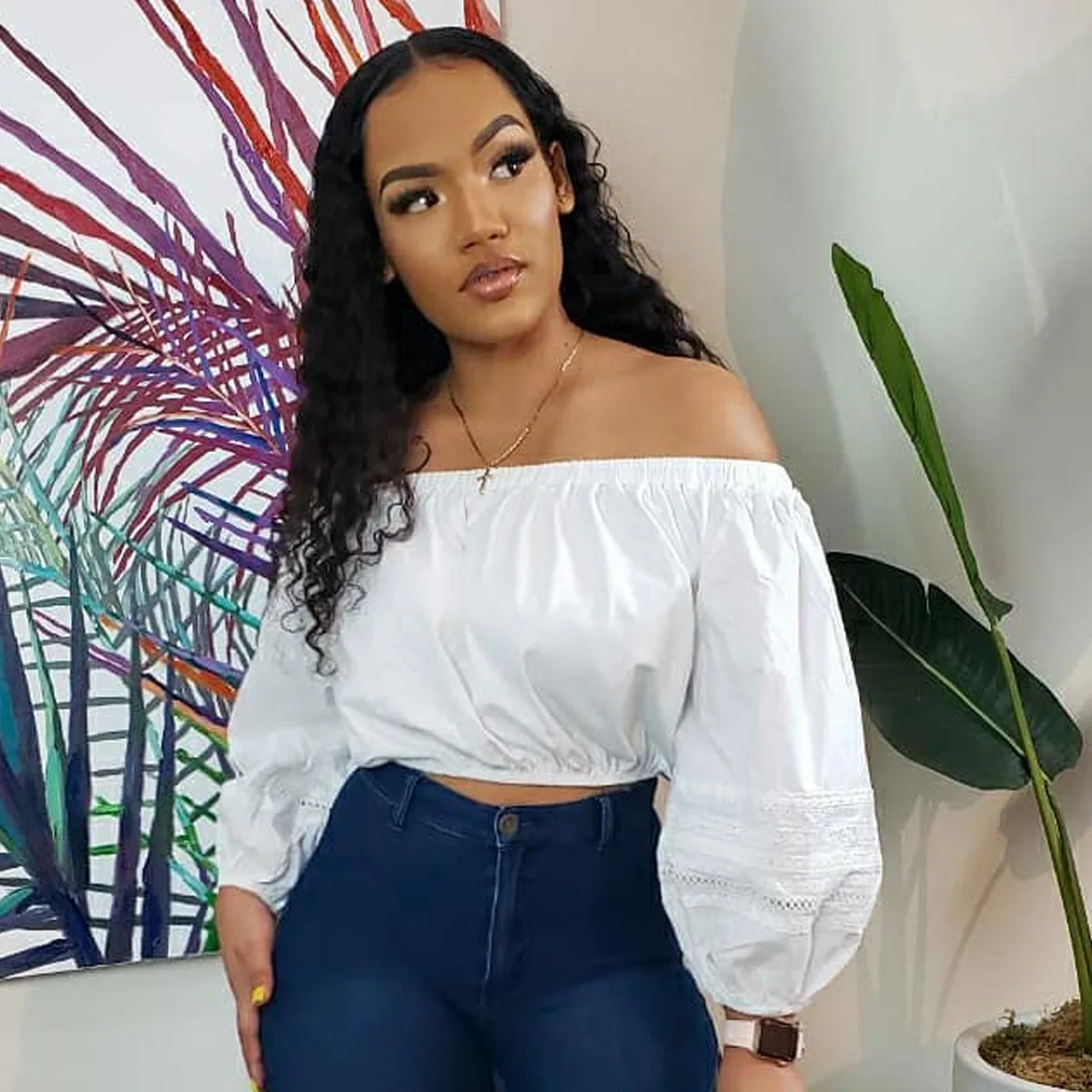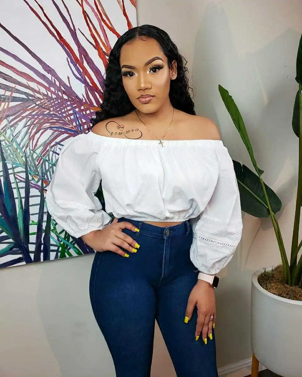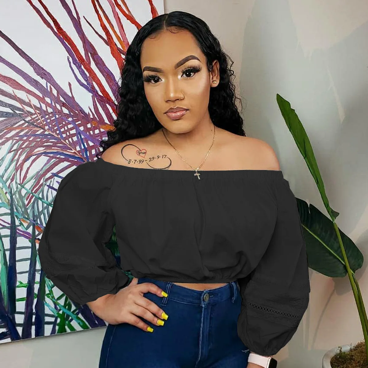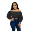 CM.YAYA Elegant Women Off Shoulder Lace Patchwork Lantern Long Sleeve White Black Mini Blouse Shirt Tops