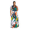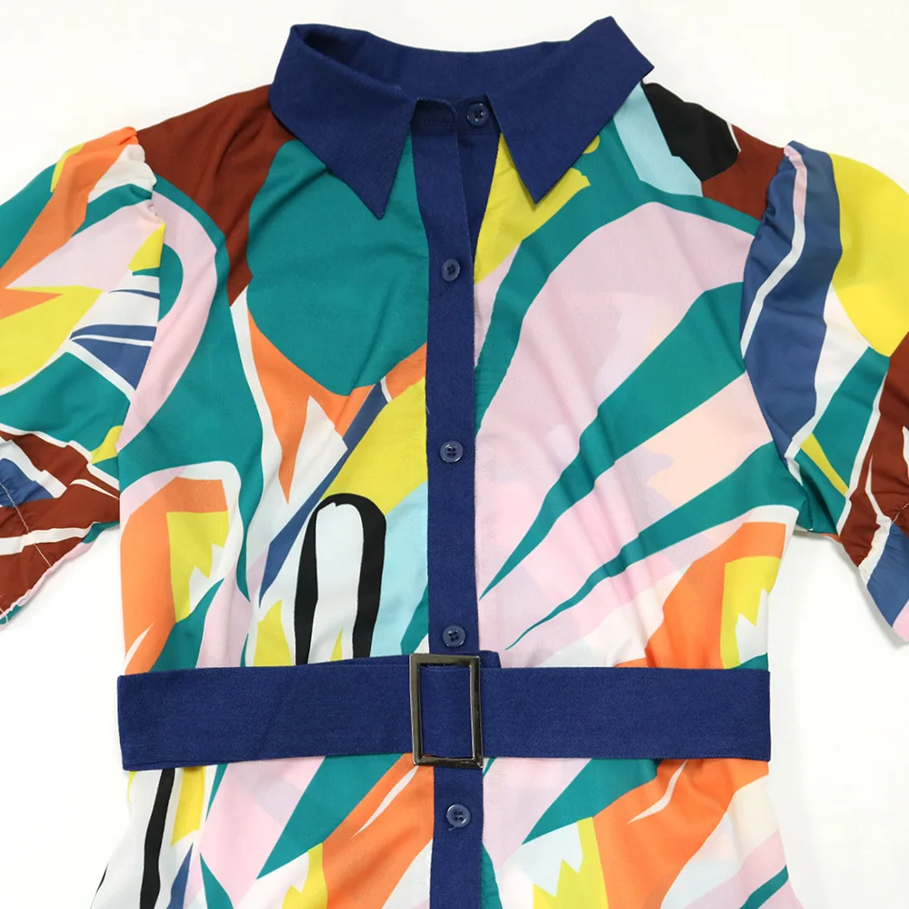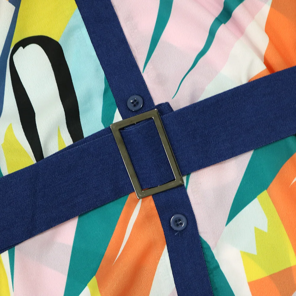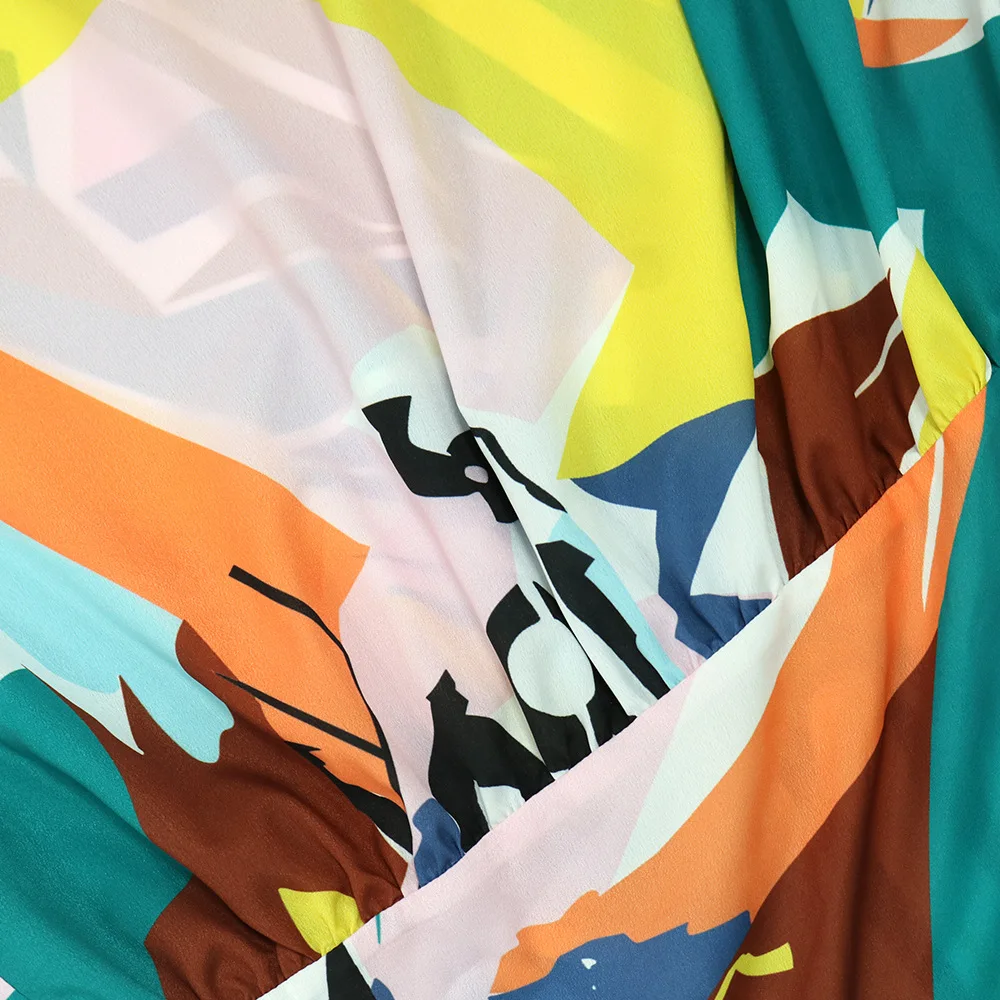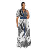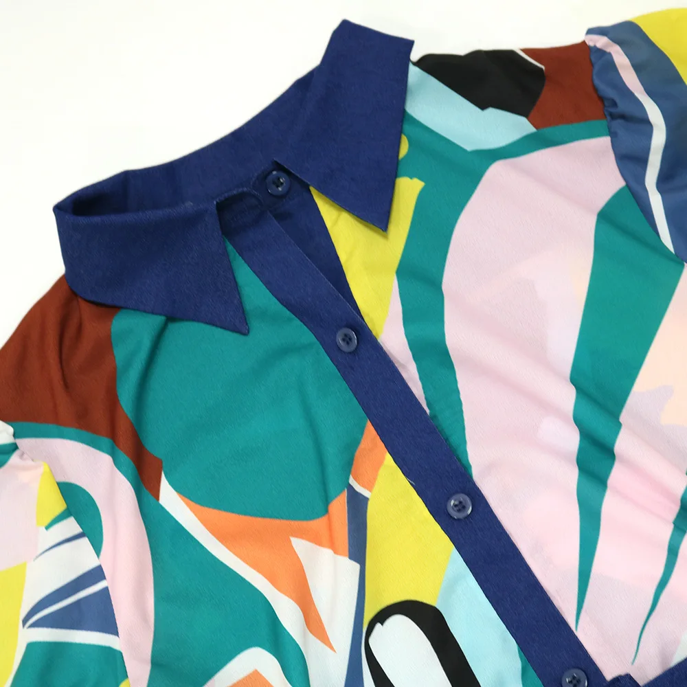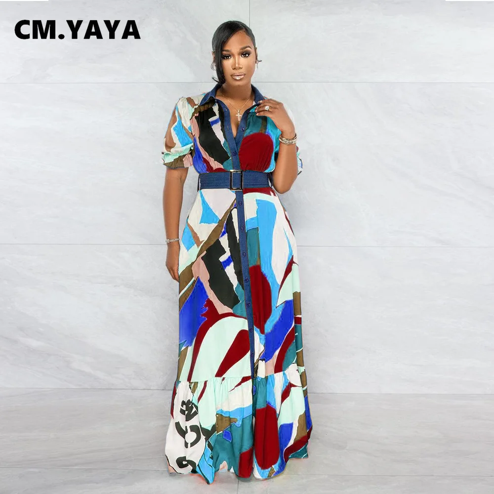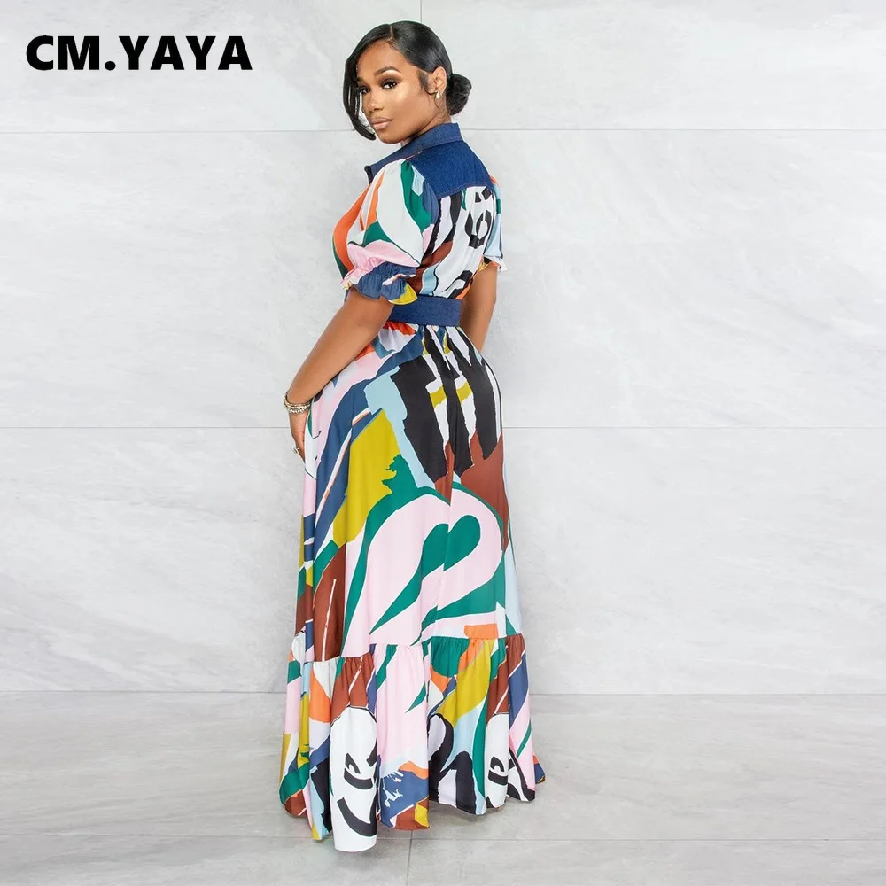 CM.YAYA Elegant Women Painting Single Breasted Turn-down Neck Ruffles Blocked Shirt Smock Maxi Dress 2022 Summer Long Dresses