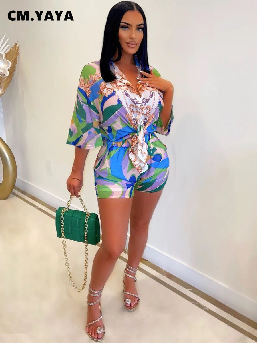 CM.YAYA Elegant Women Paisley 3d Printed Half Sleeve Shirt and Shorts Matching Two 2piece Set Streetwear Casual Outfit Tracksuit