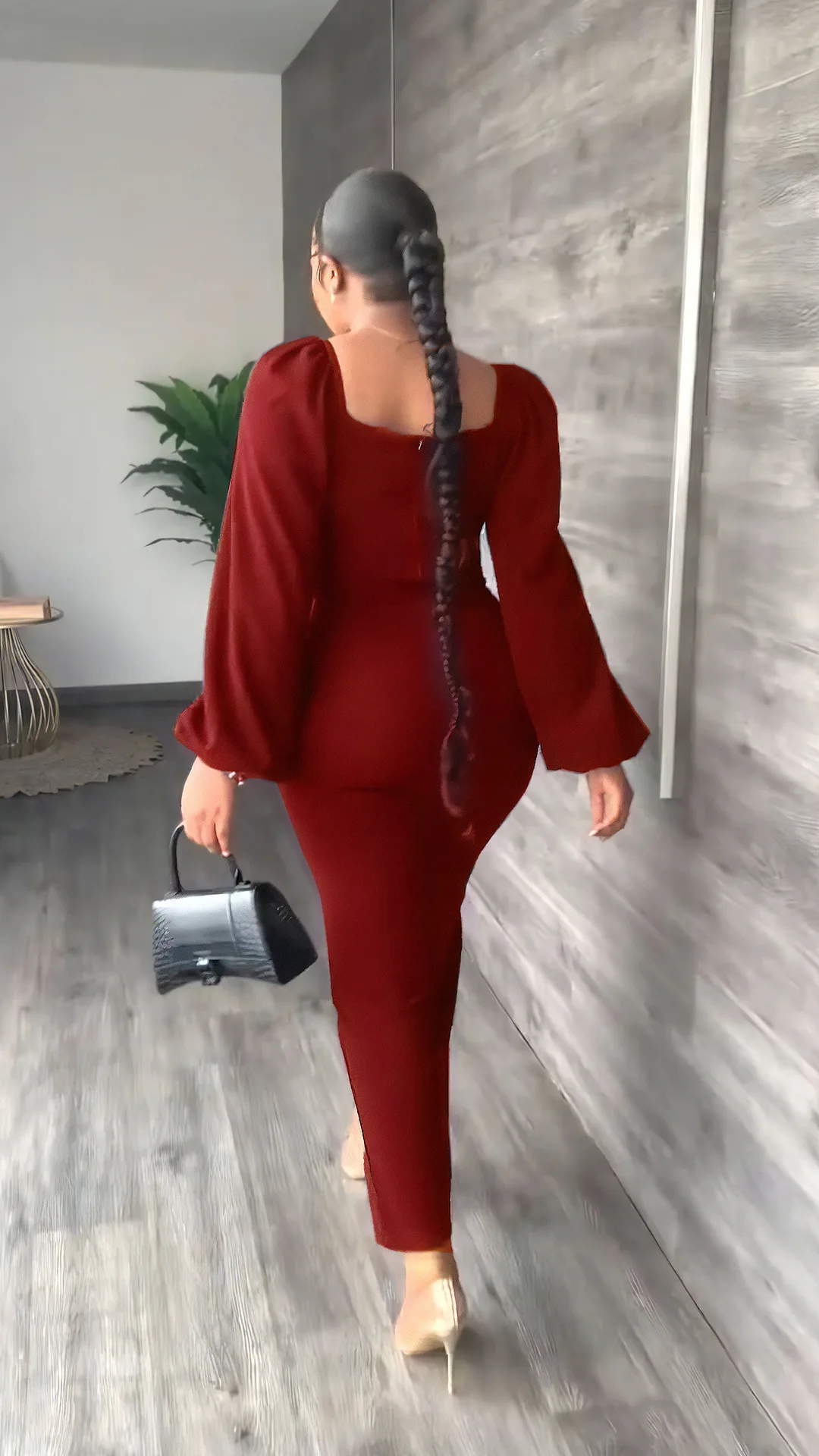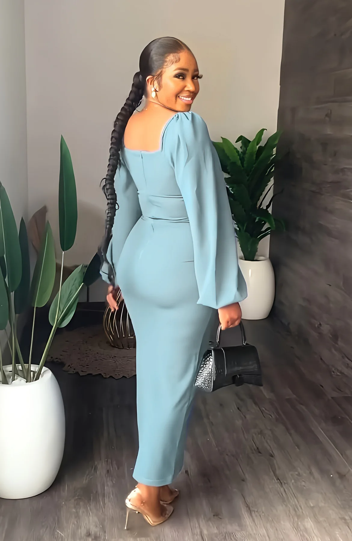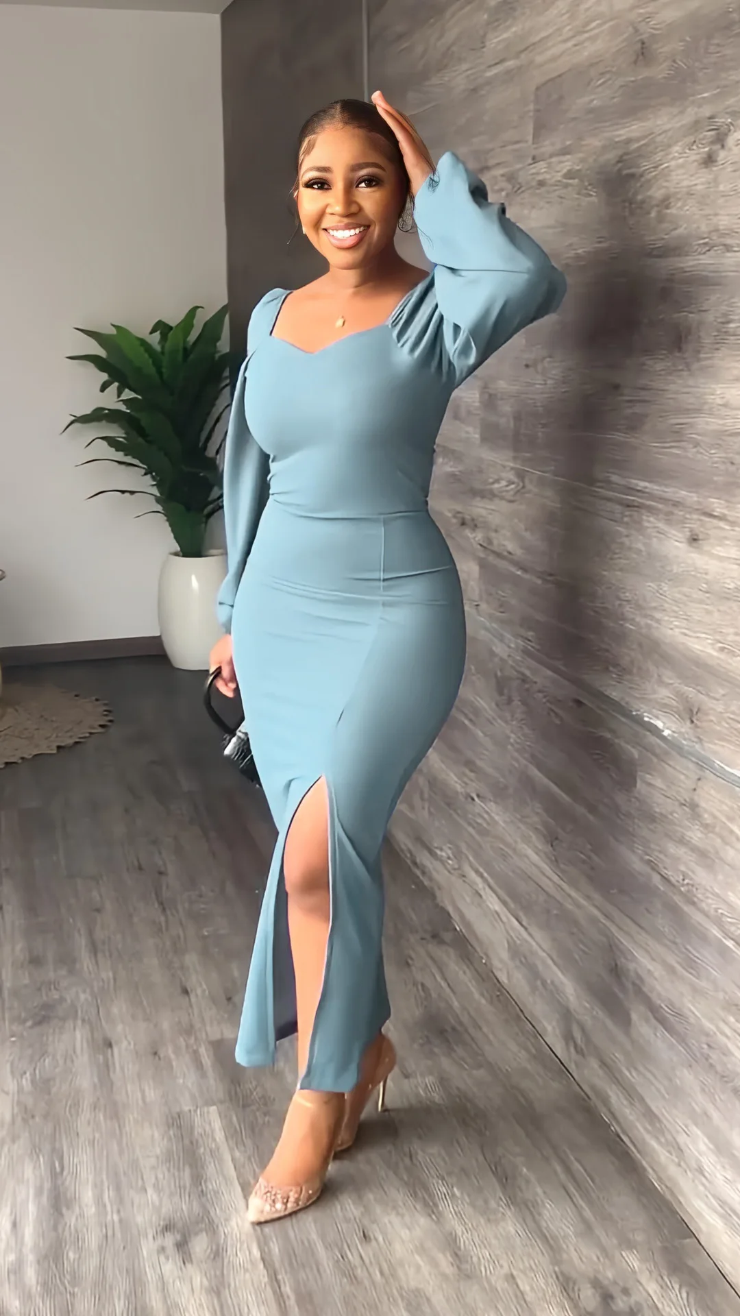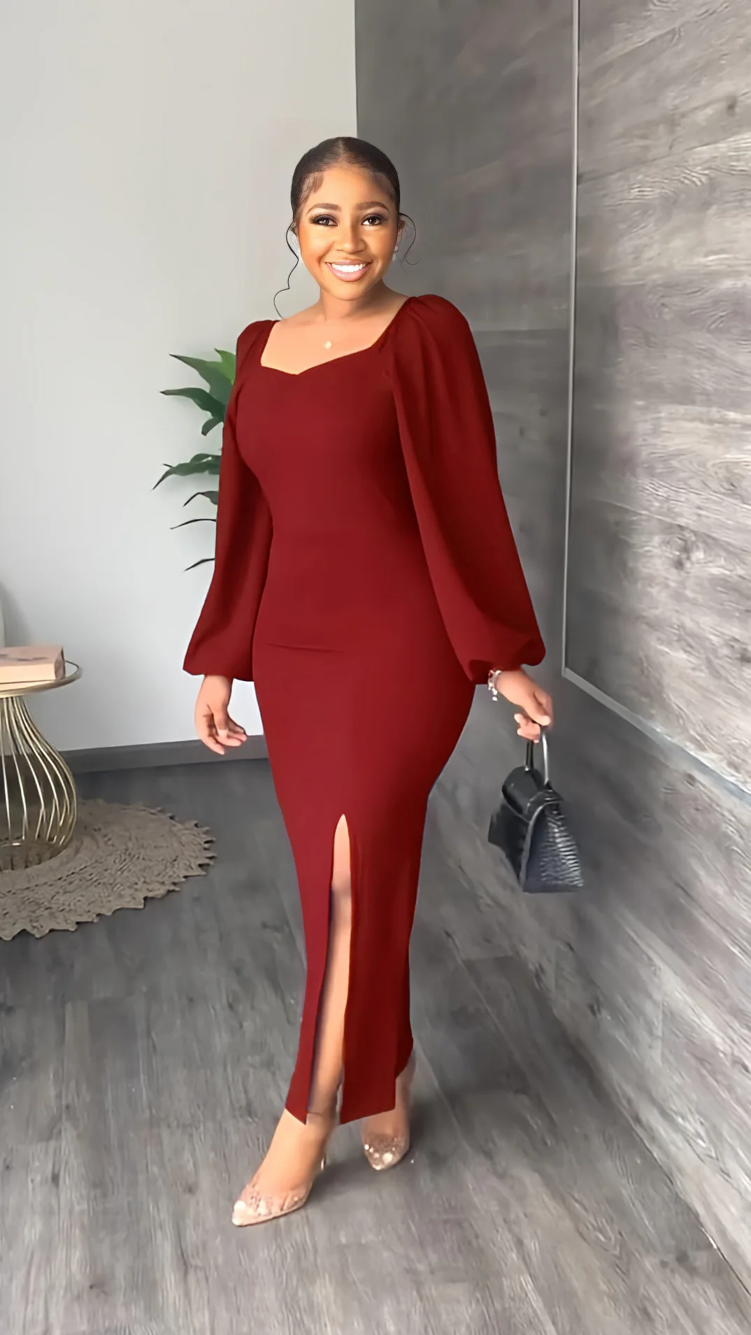 CM.YAYA Elegant Women Puff Long Sleeve Sweetheart Neck Side Split Bodycon Maxi Long Dress 2022 Club Sexy Party Dresses Vestidos