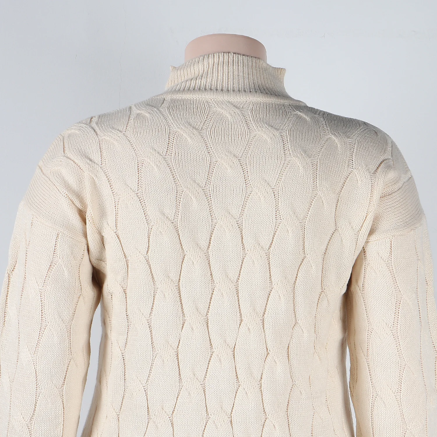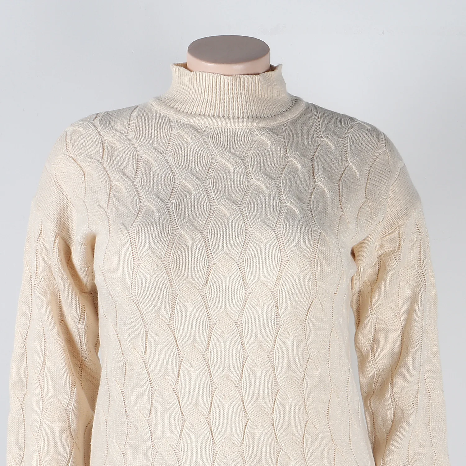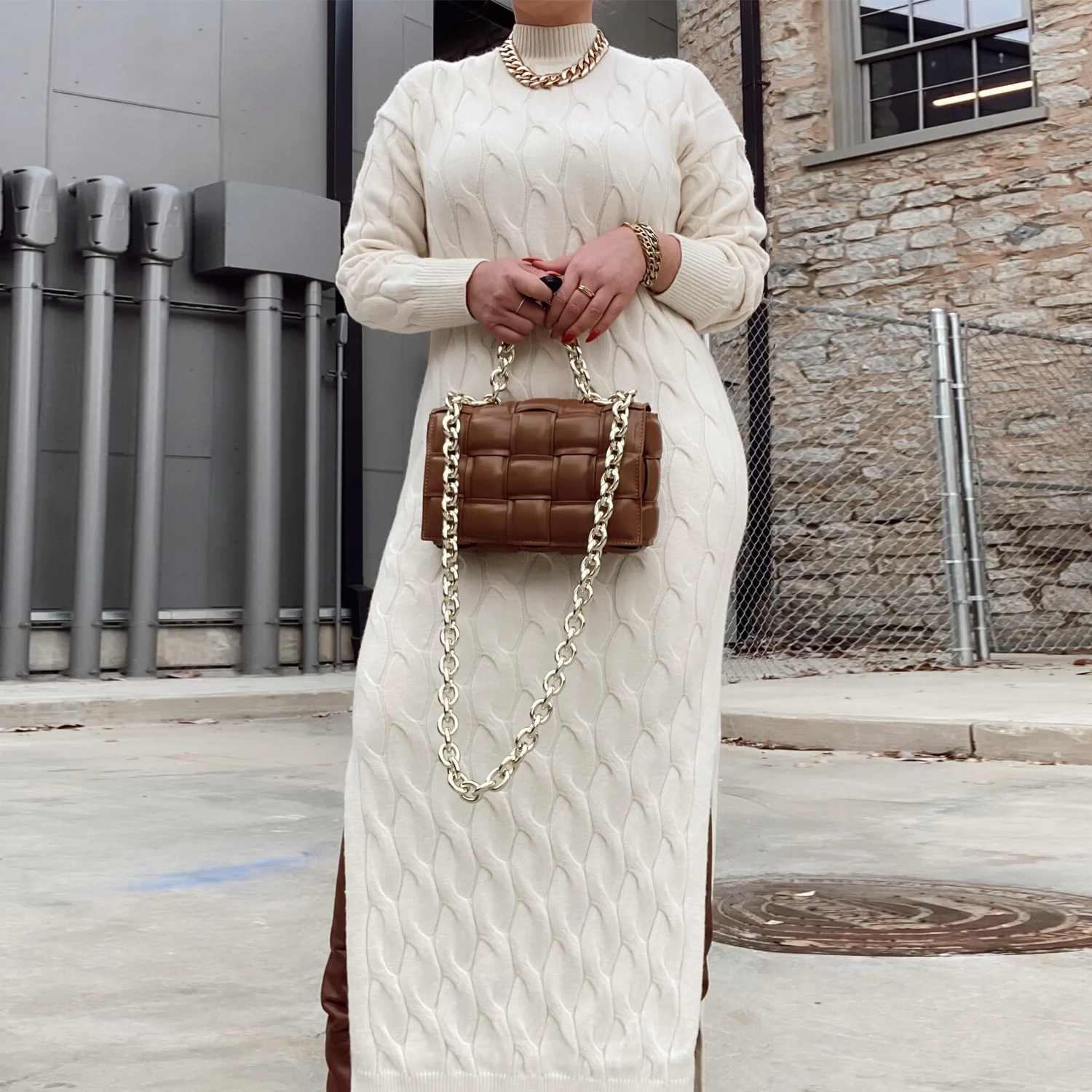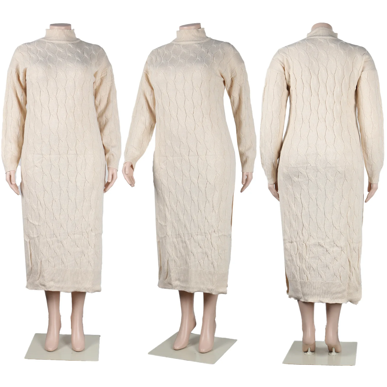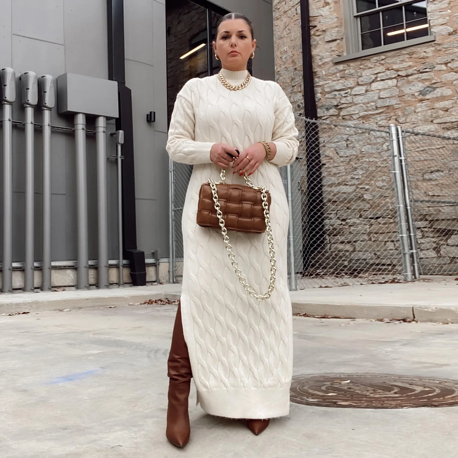 CM.YAYA Elegant Women Thick Warm Knit Ribbed Long Sleeve Turtleneck Side Slit Maxi Long Slim Dress Pullover Sweater