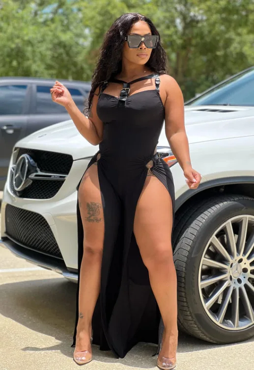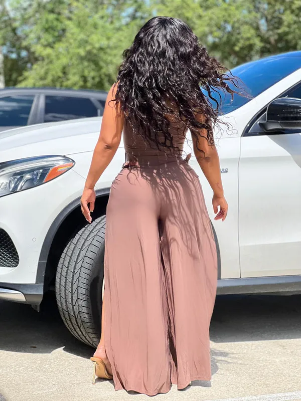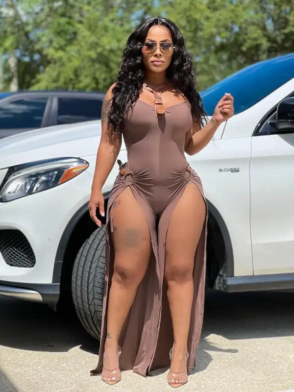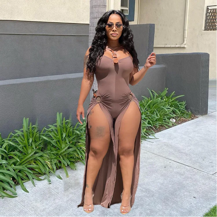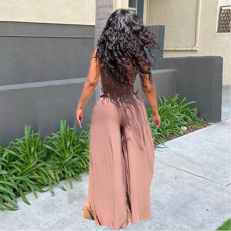 CM.YAYA Elegant Women V-neck Straight Jumpsuit Streetwear Sleeveless Strap Romper Fork Playsuit Summer 2022 One Piece Overalls