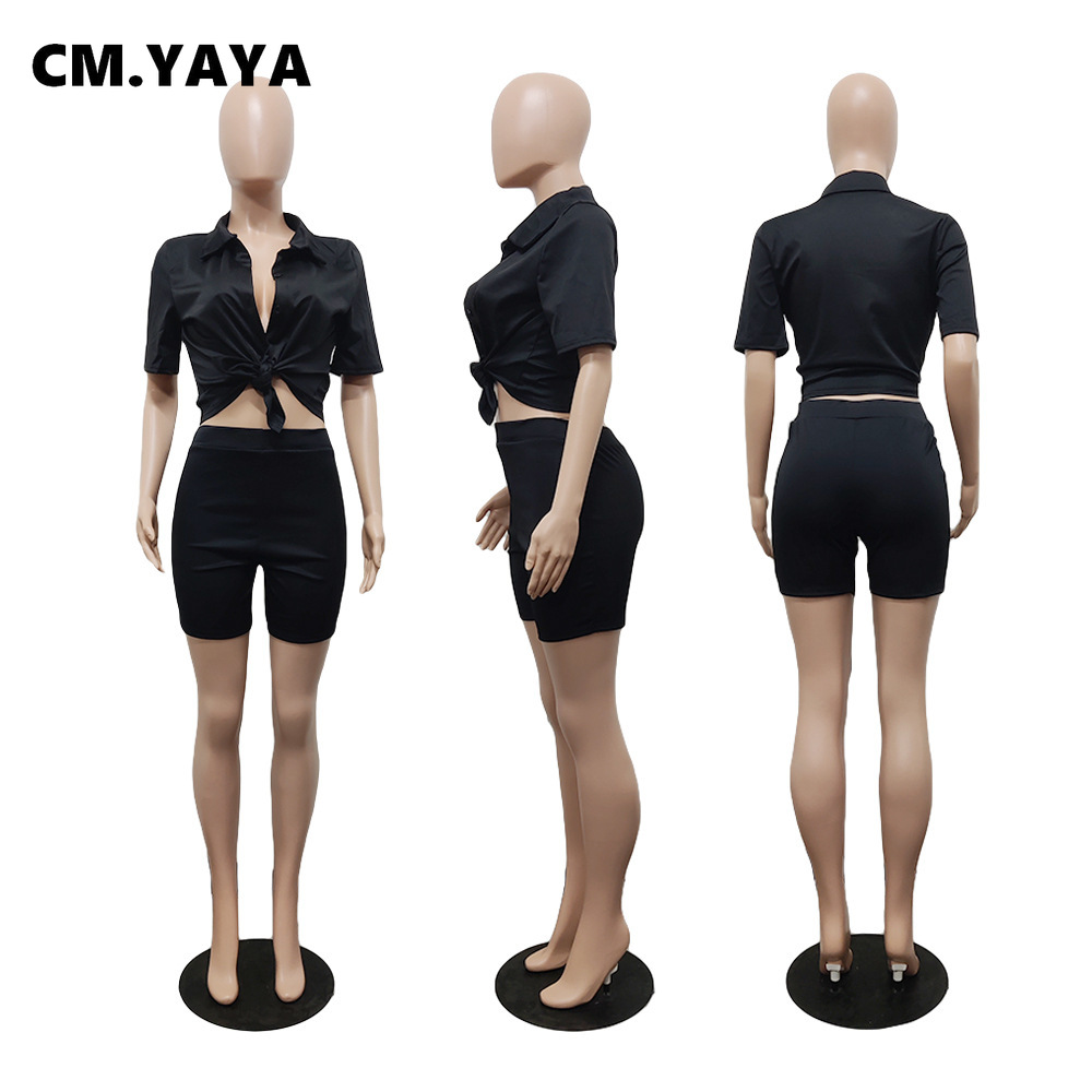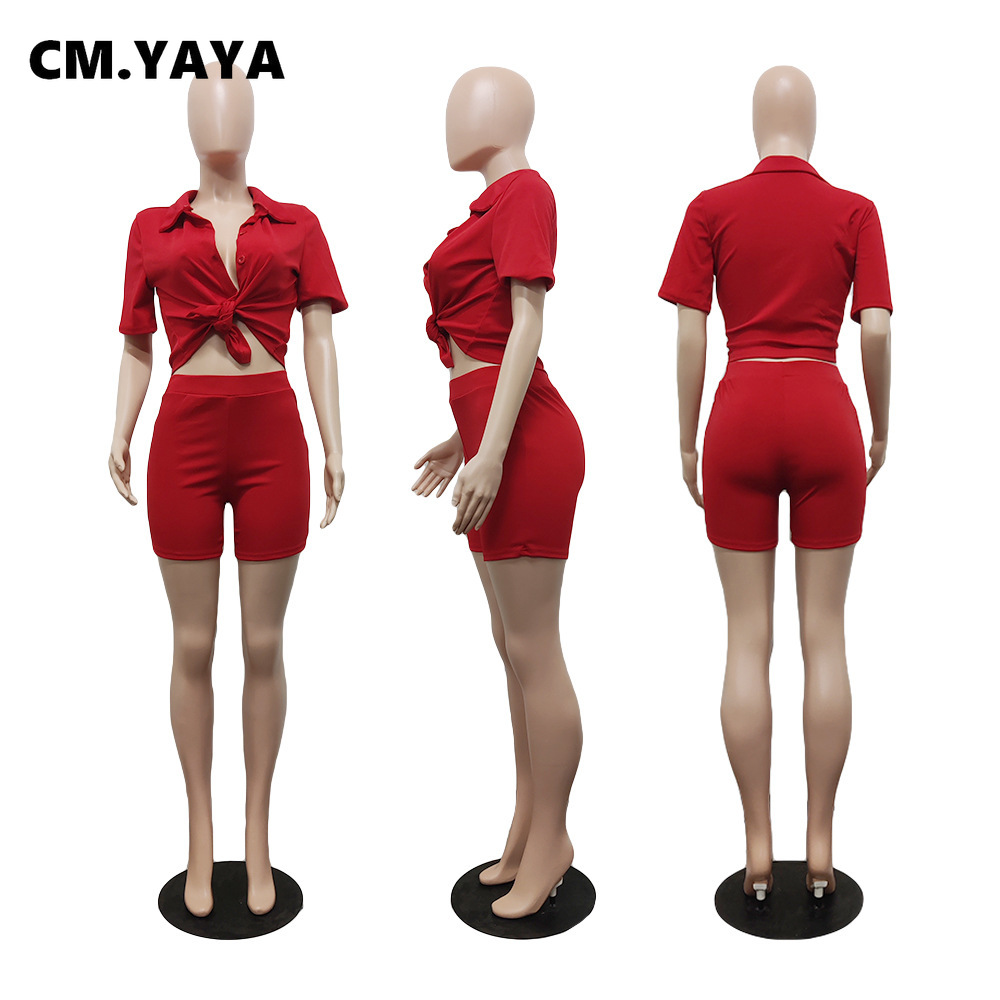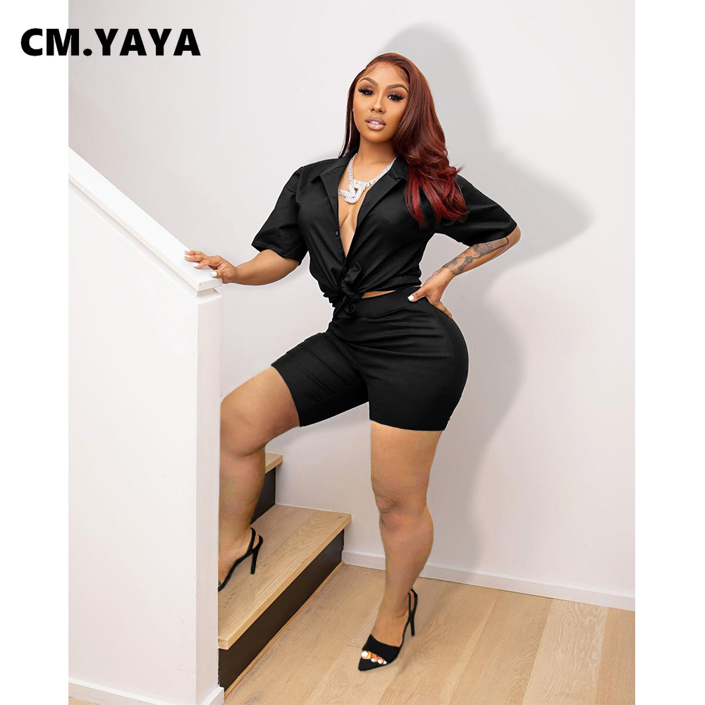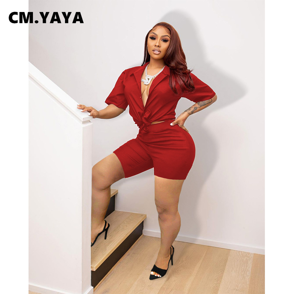 CM.YAYA Elegant Women’s Black Red Two 2 Piece Set Half Sleeve Shirt and Shorts Matching Streetwear INS Fashion Tracksuit Outfits