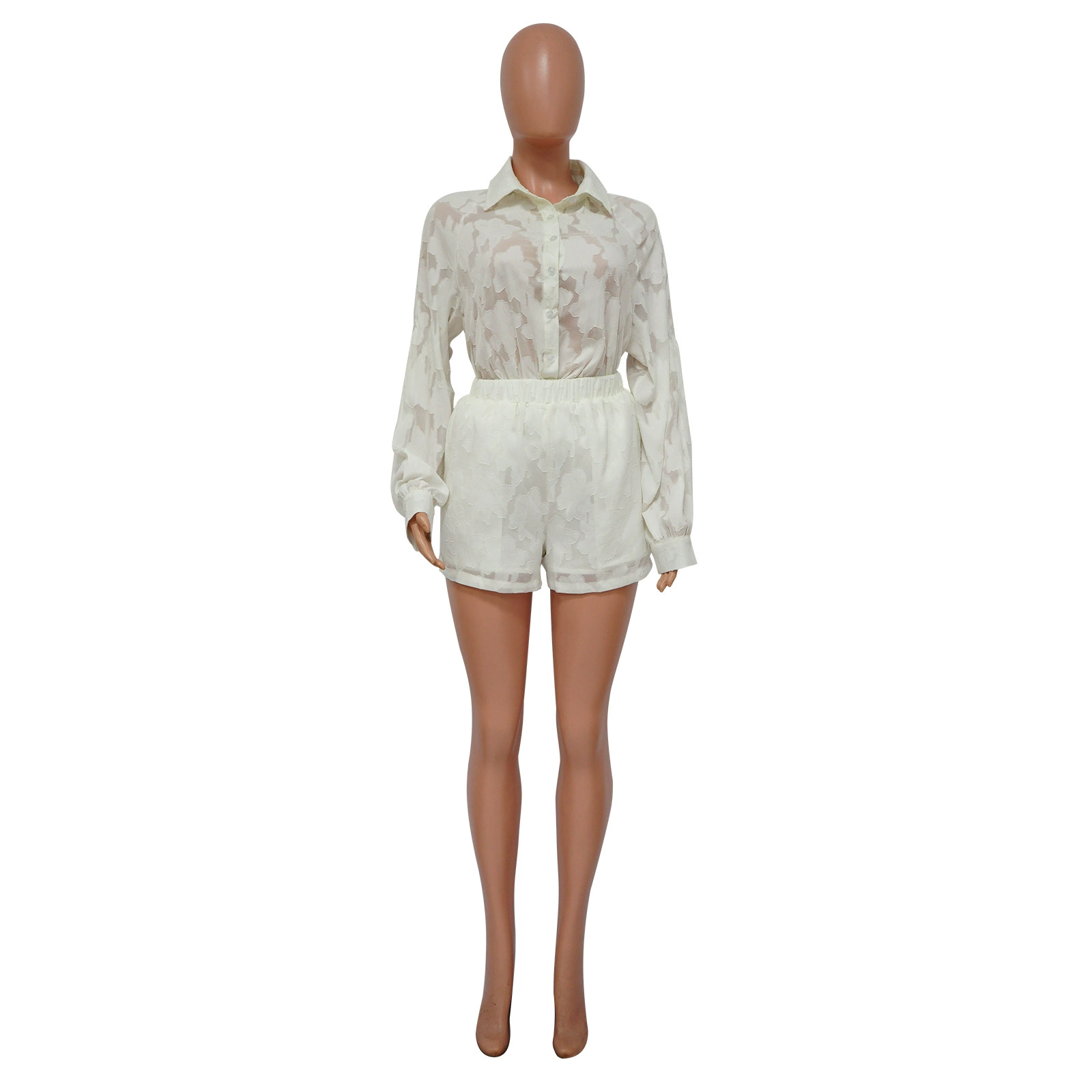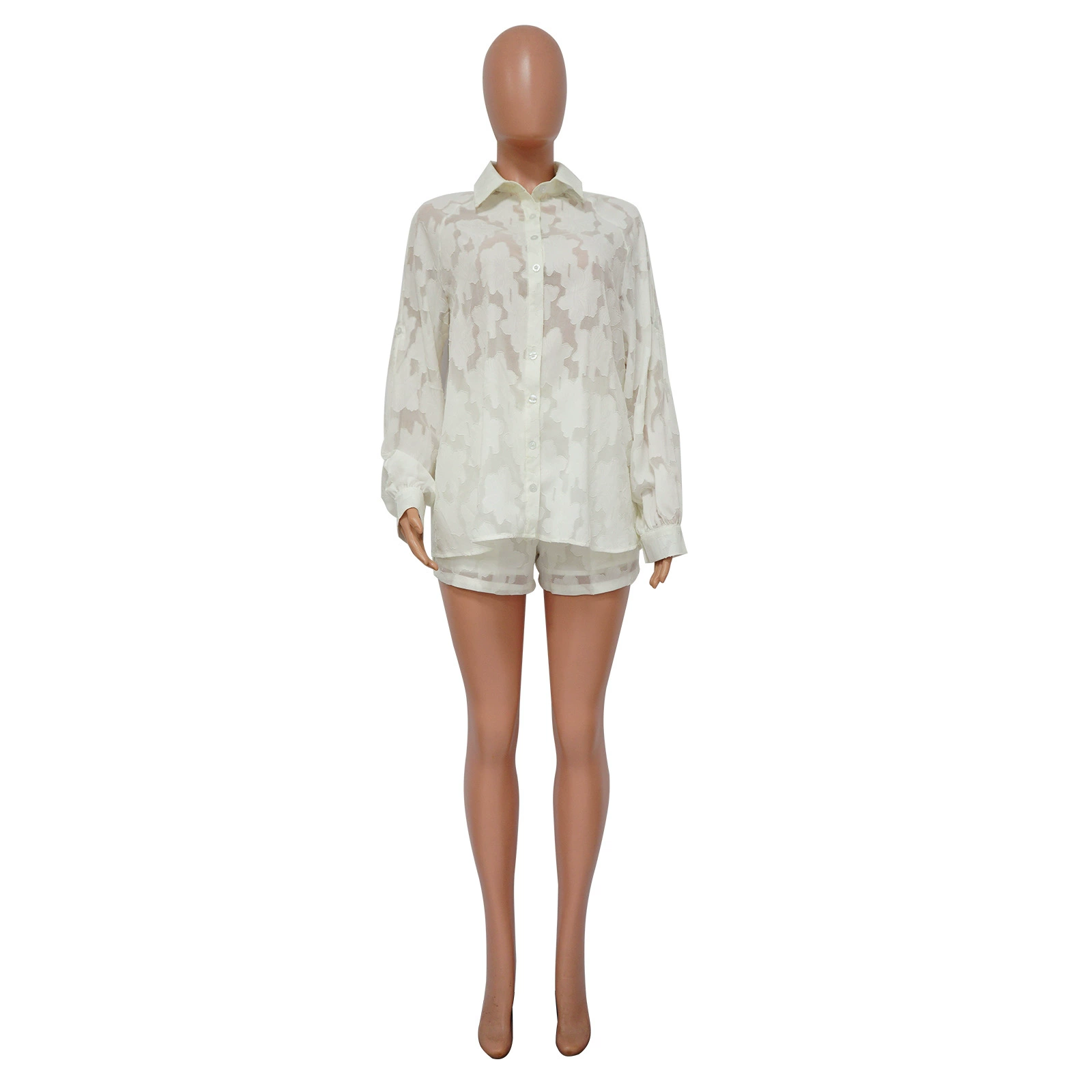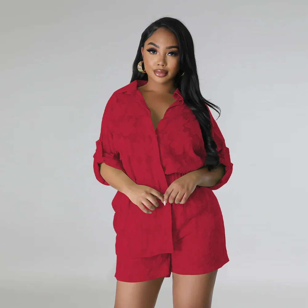 CM.YAYA Fashion Jacquard Women’s Set Long Sleeve Shirt and Shorts 2023 Summer Female Chic Two 2 Piece Set Outfits Tracksuit
