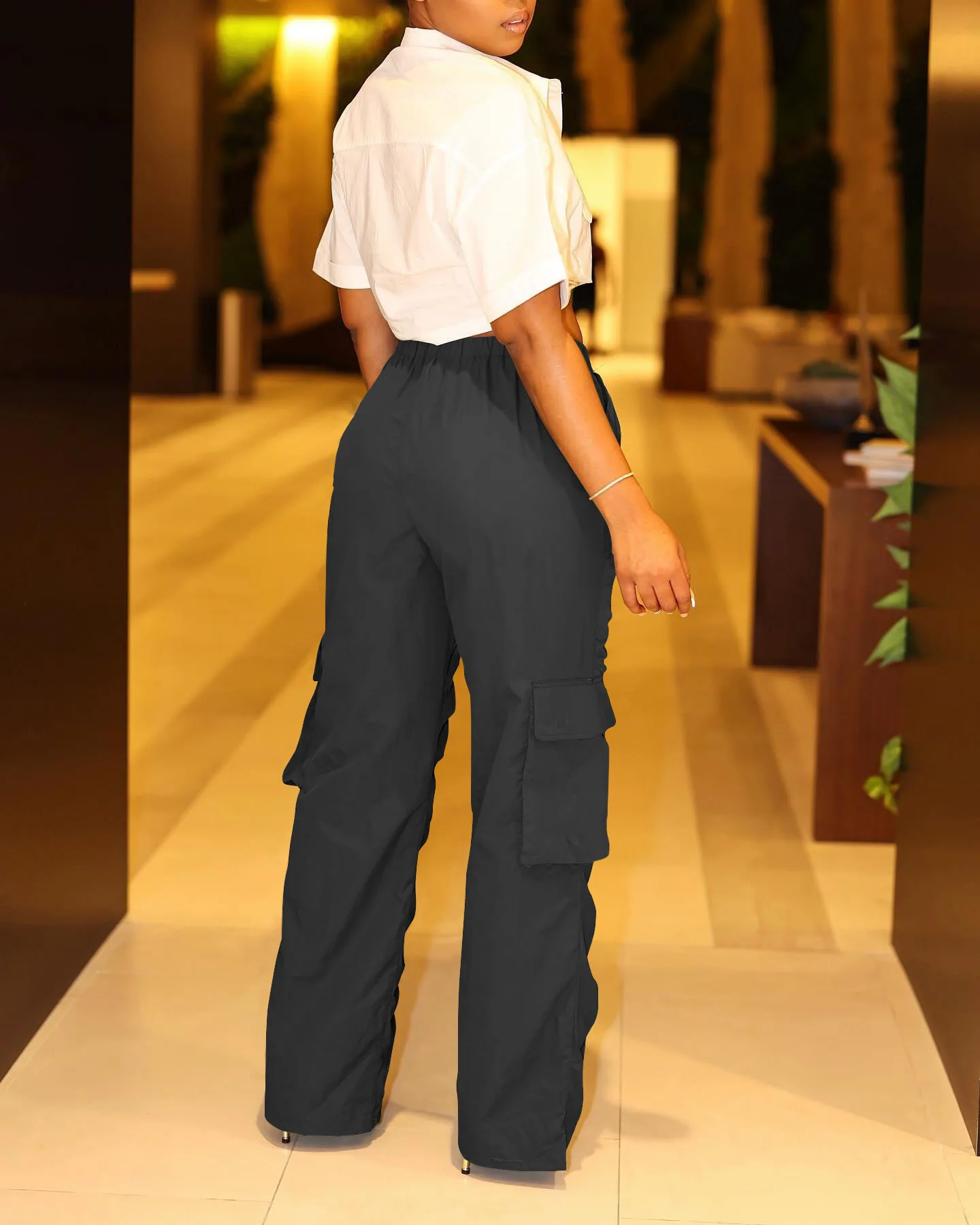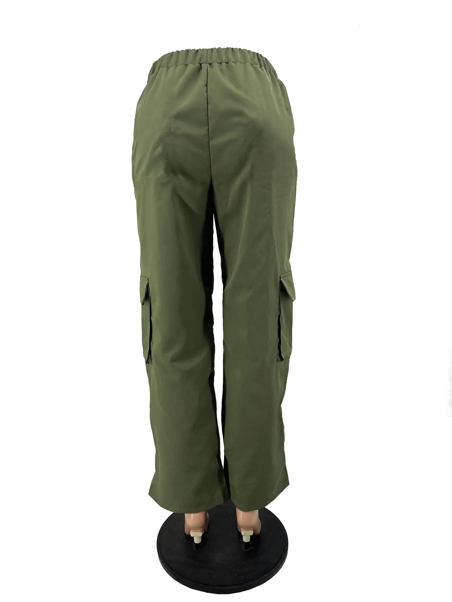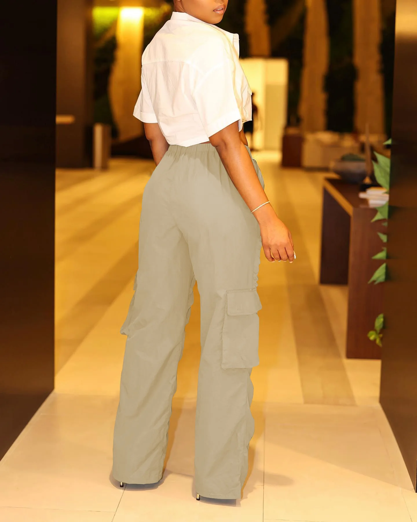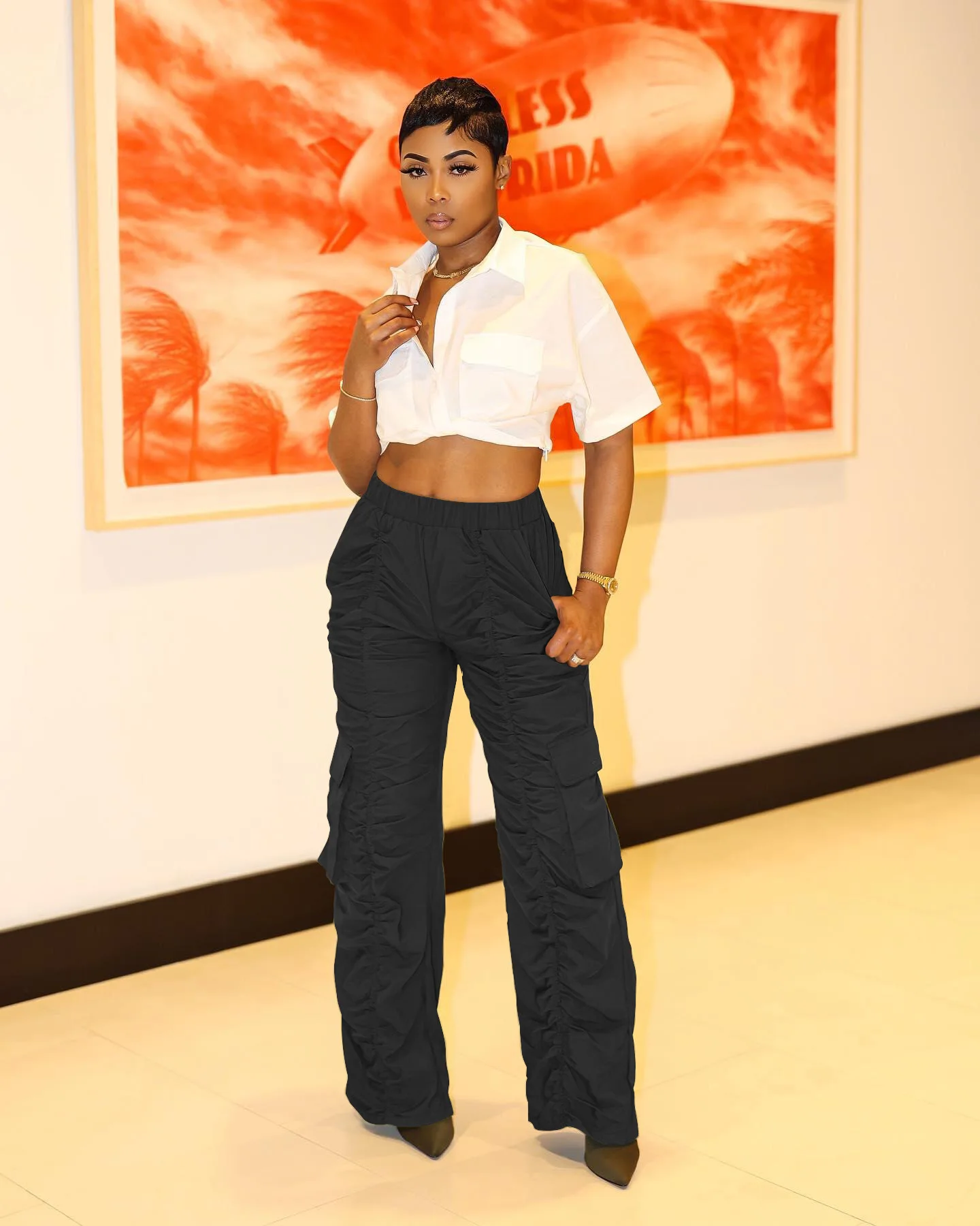 CM.YAYA Fashion Women 2023 Spring Summer Ruched Stacked Pocket Side Elastic Waist Straight Cargo Pants Streetear INS Trousers