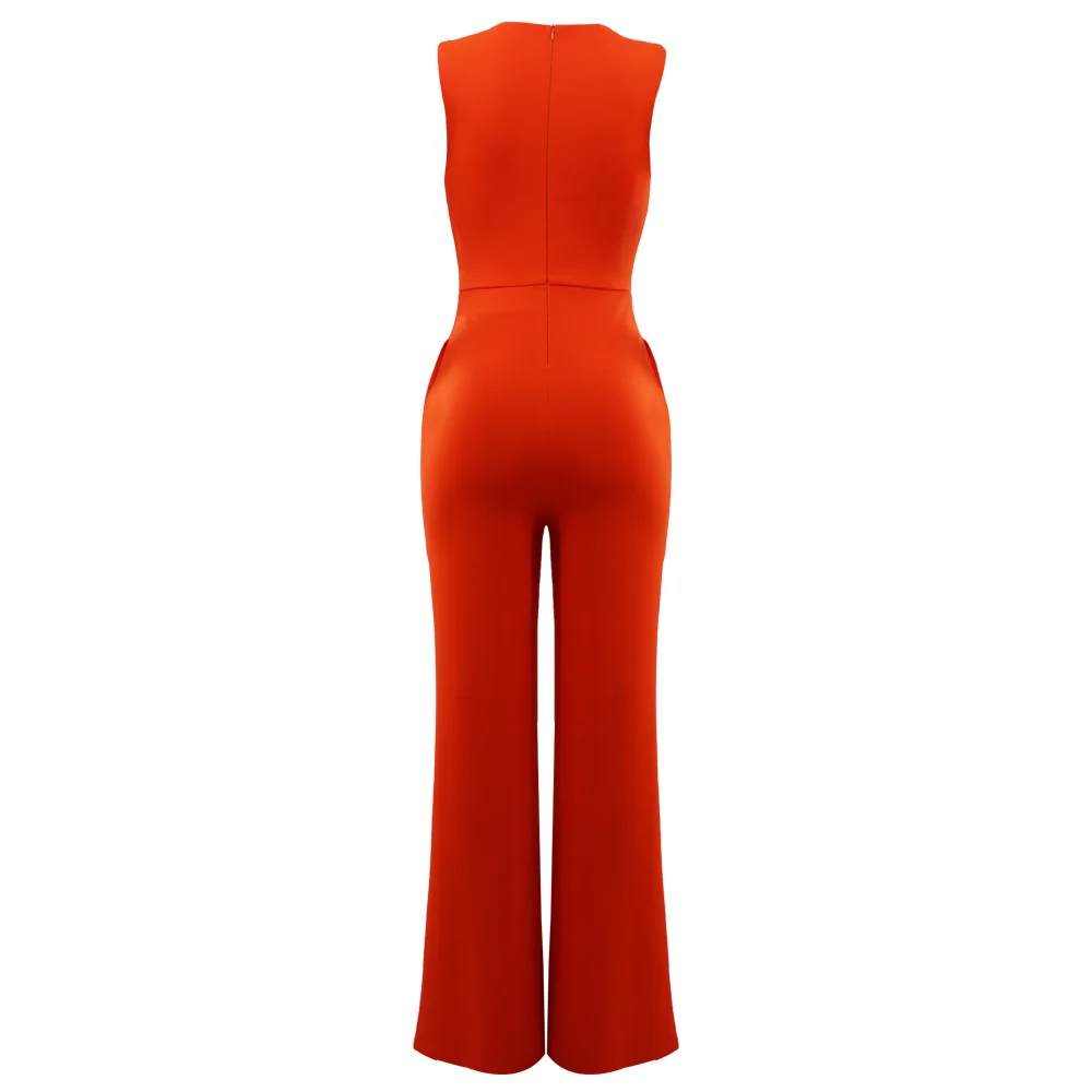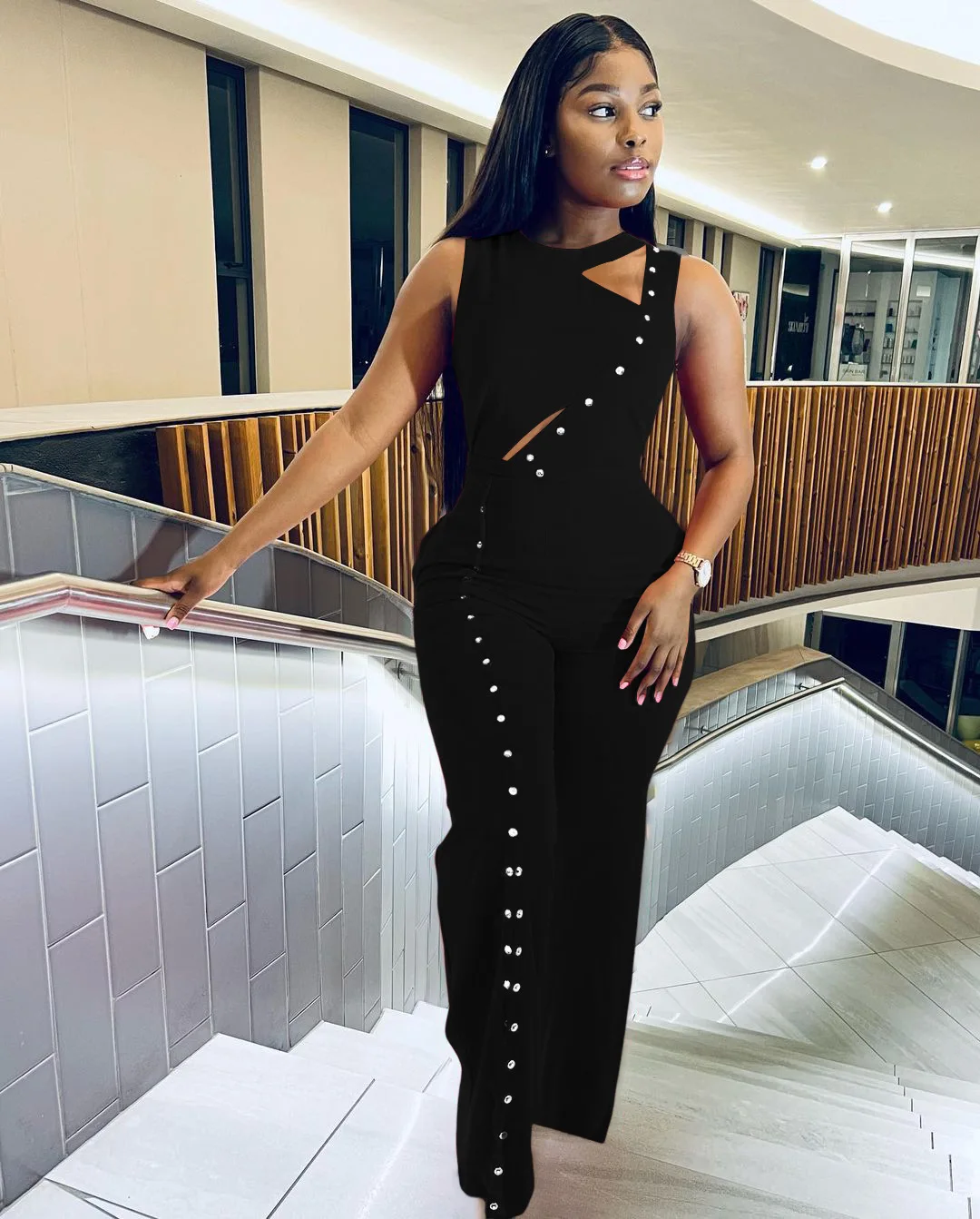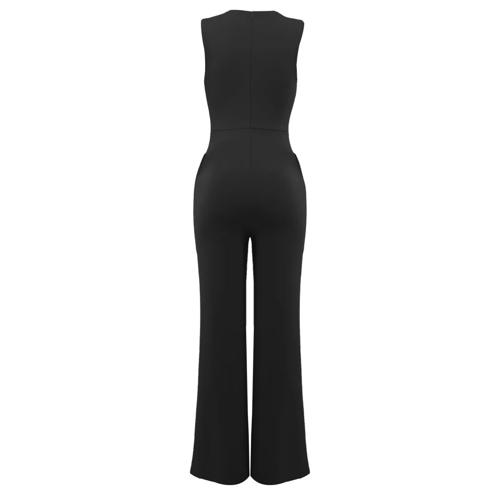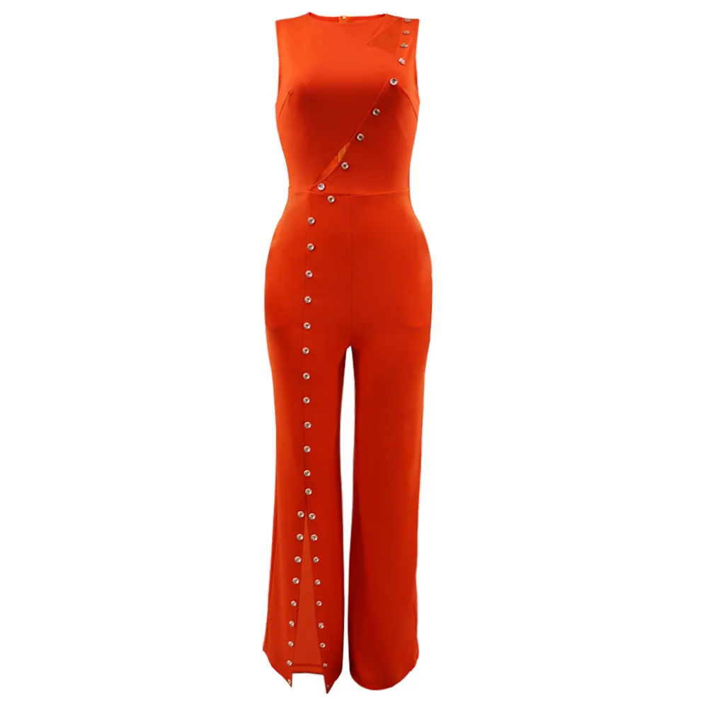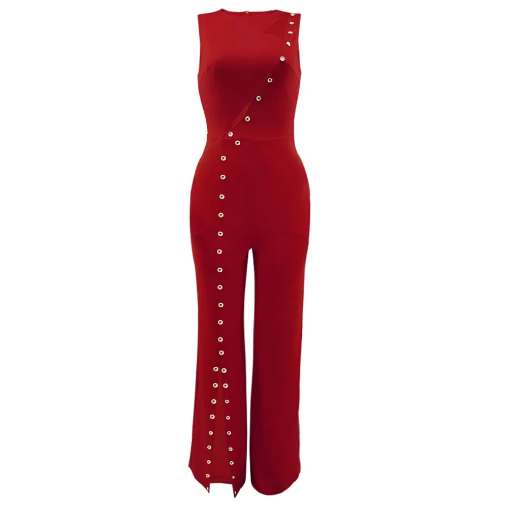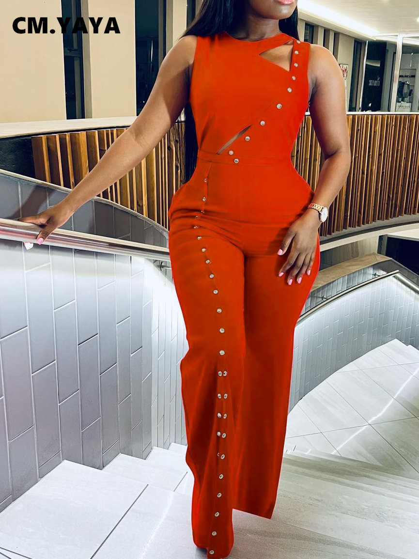 CM.YAYA Fashion Women Cutout Front High Waist Button Split Flare Jumpsuit 2023 Sexy Party Club Evening One Piece Set Playsuit