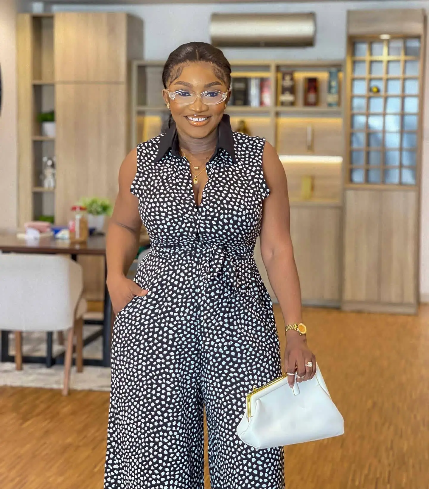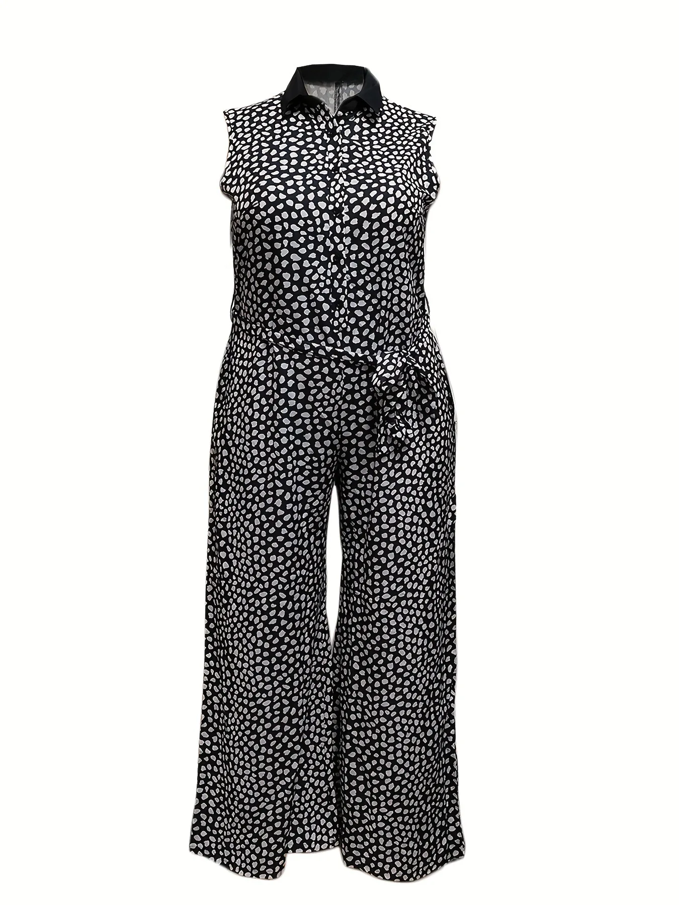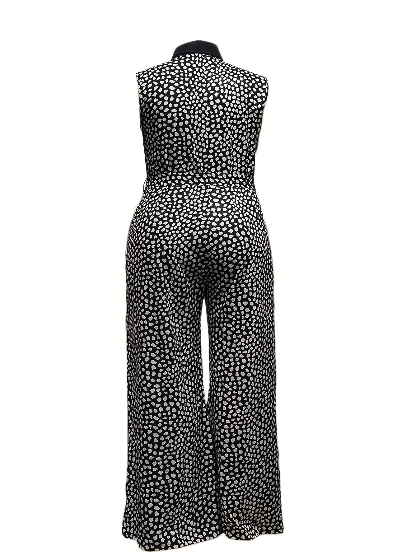 CM.YAYA Fashion Women Dot Printed Single Breasted with Sashes Sleeveless Straight Wide Leg Jumpsuit 2023 Summer Shirt Playsuits