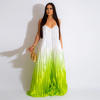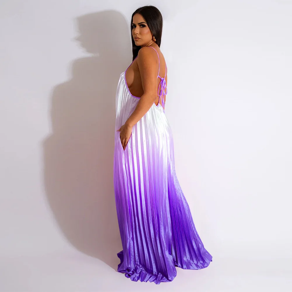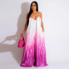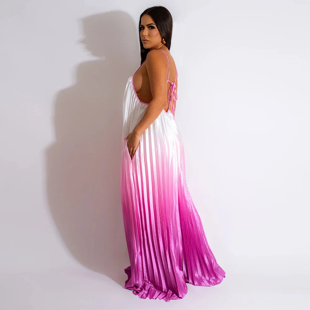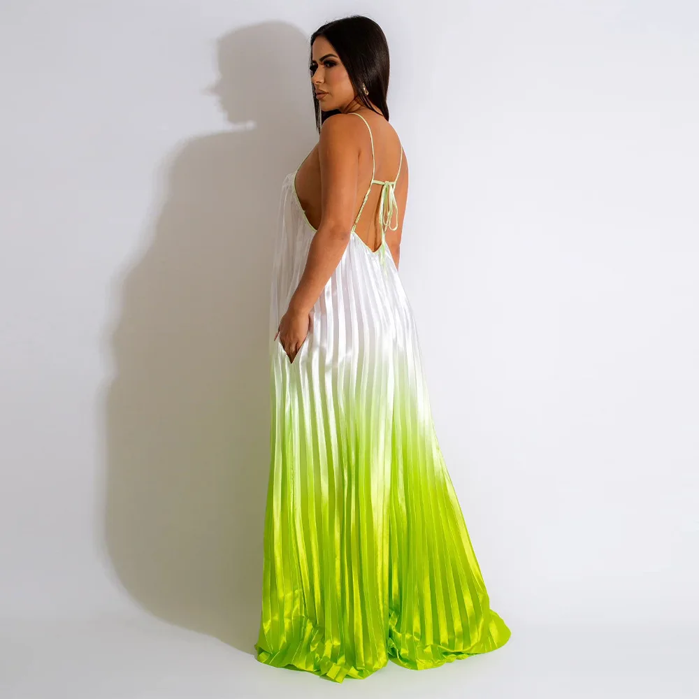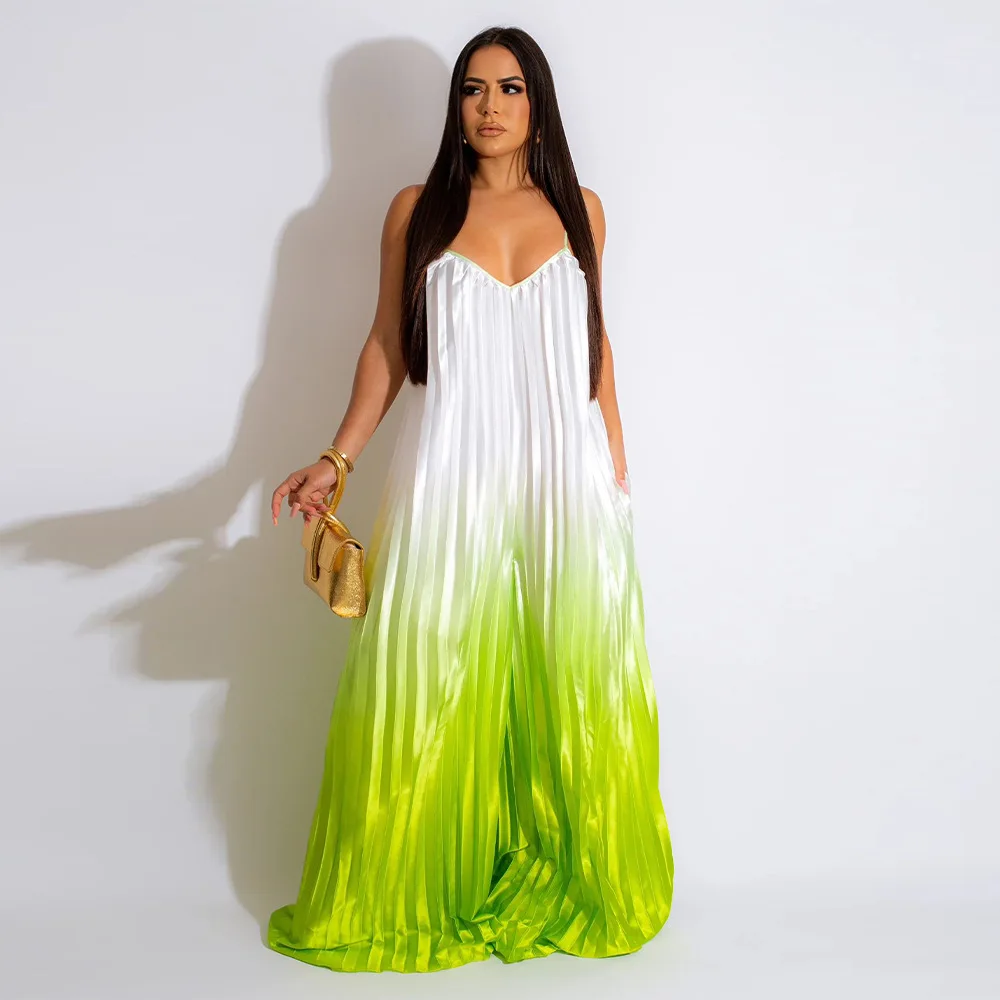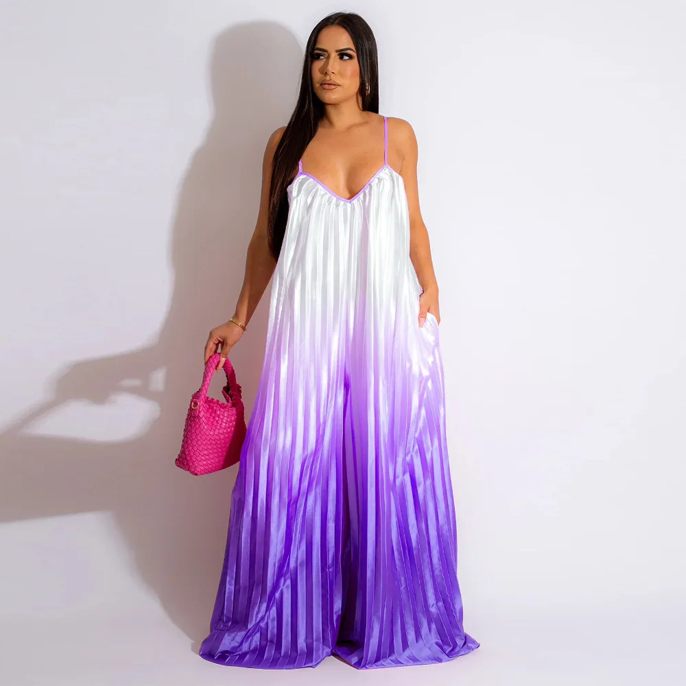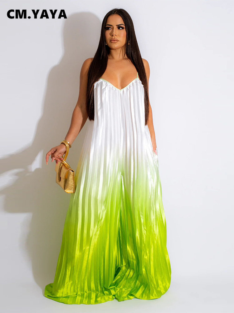 CM.YAYA Fashion Women Gradient Strap V-neck Sleeveless Wide Leg Pleated Loose Jumpsuit 2023 Summer Romper One Piece Set Playsuit