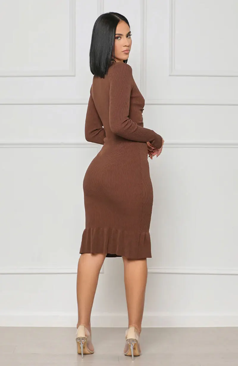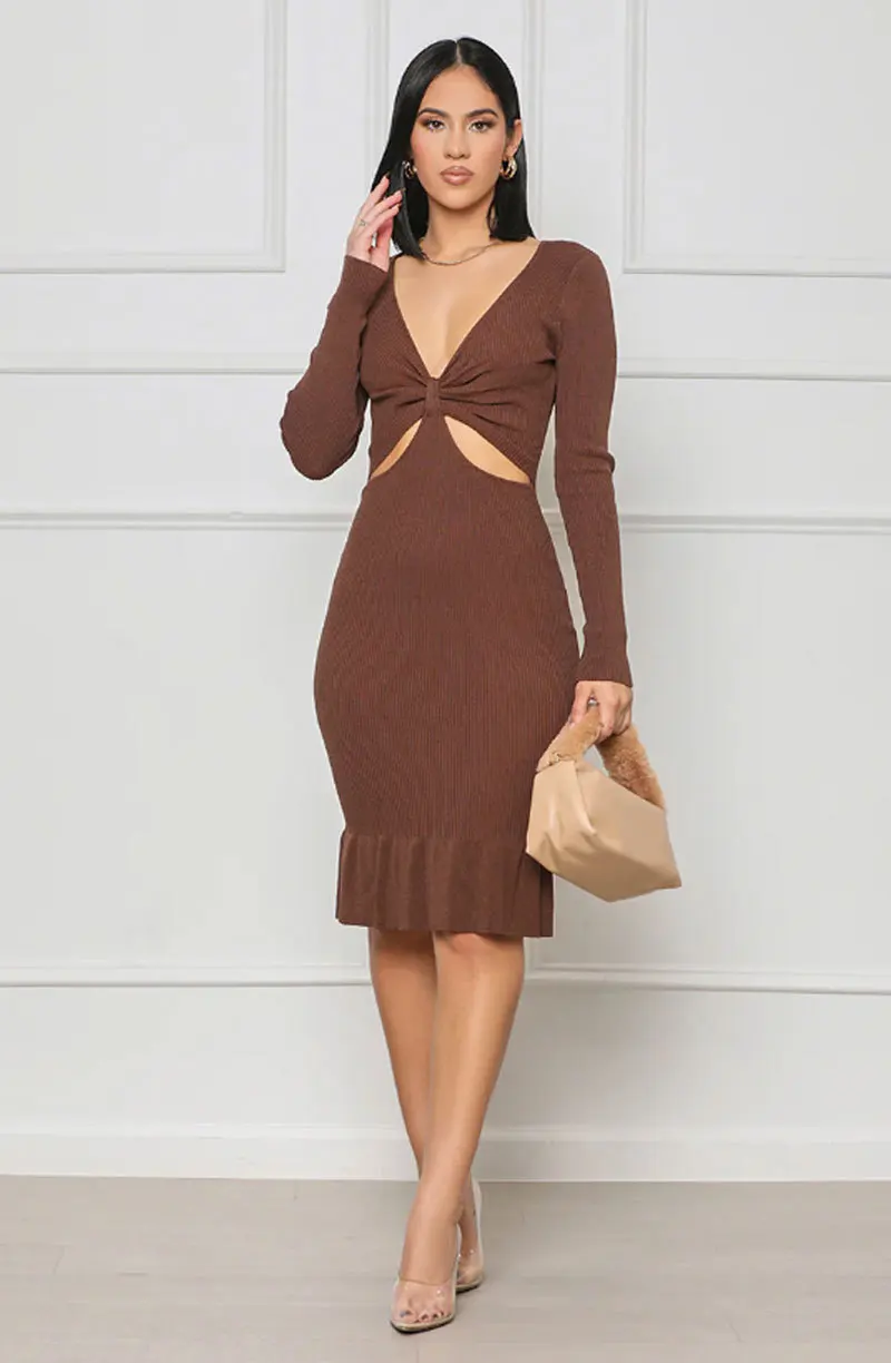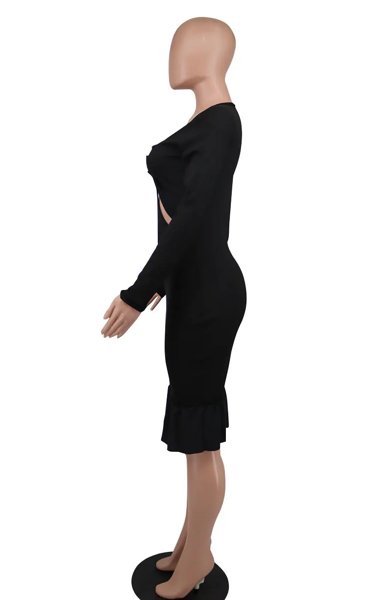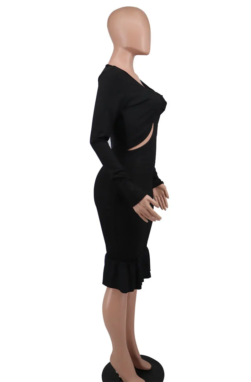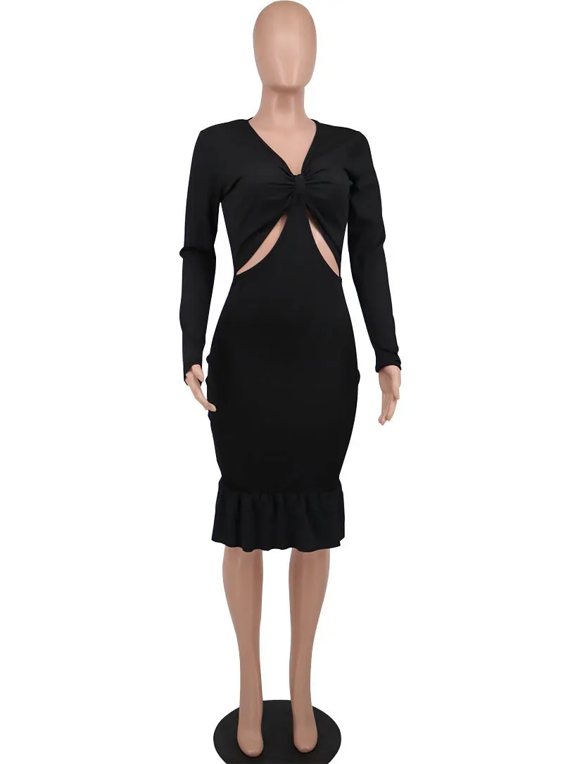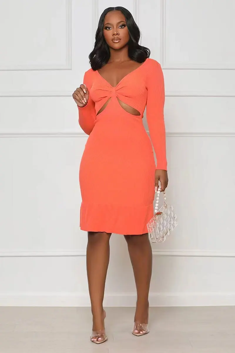 CM.YAYA Fashion Women Knit Ribbed Draped Cutout Waist V-neck Long Sleeve Bodycon Midi Dress 2023 Club Evening Sexy Party Dresses
