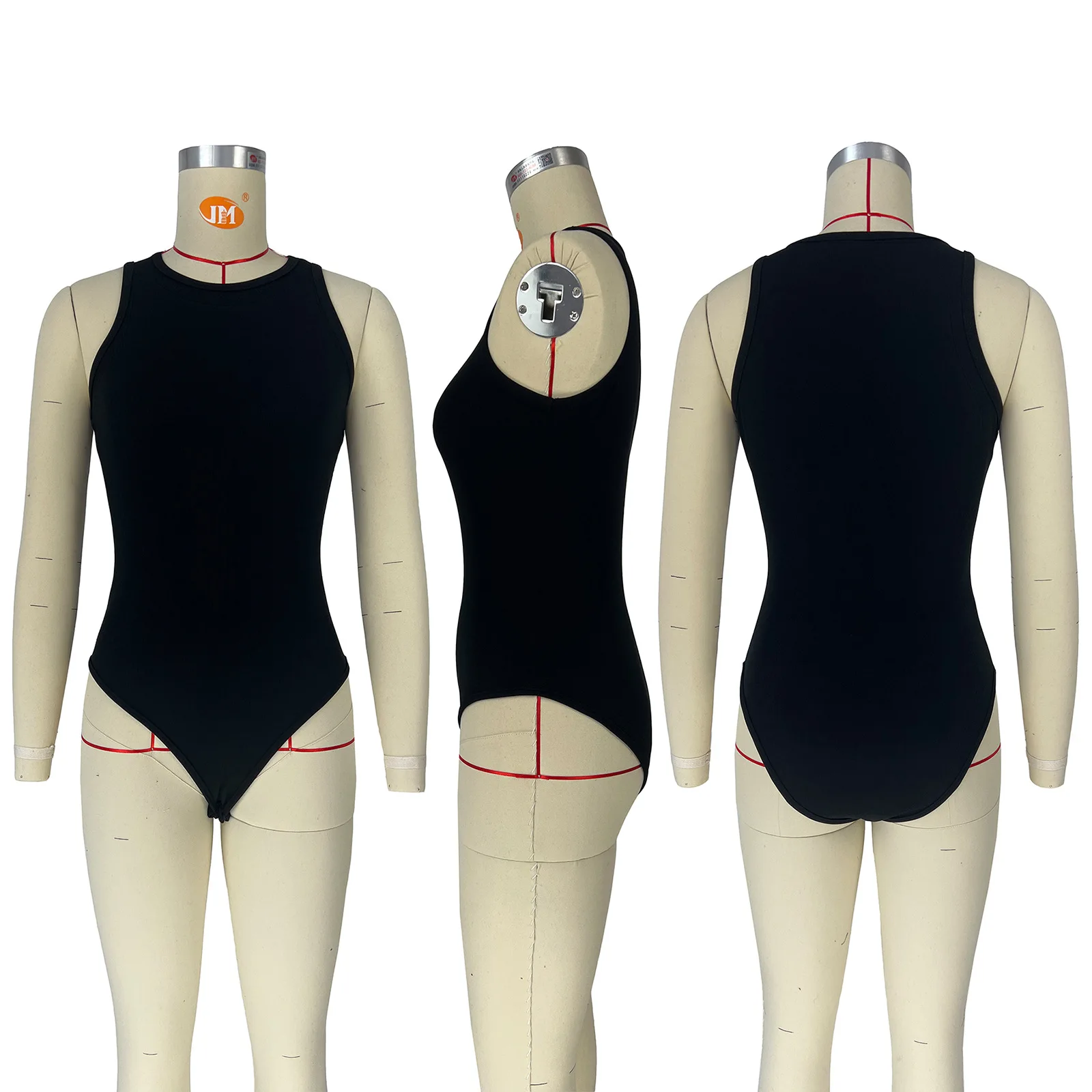 CM.YAYA Fashion Women Knit Ribbed Sleeveless Tank Bodysuit for 2023 Summer Female Holiday Beach One Piece Tops