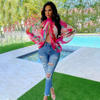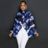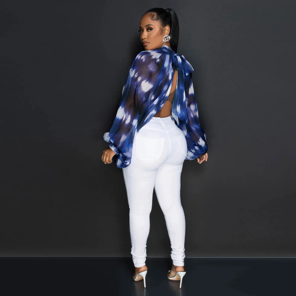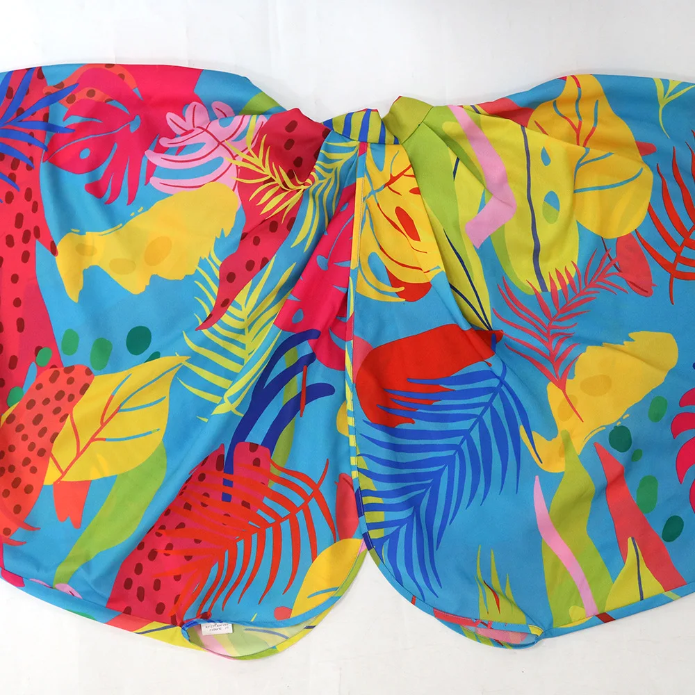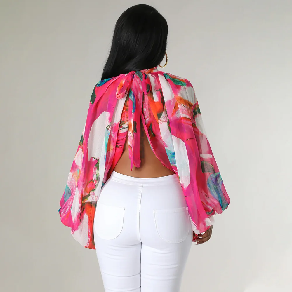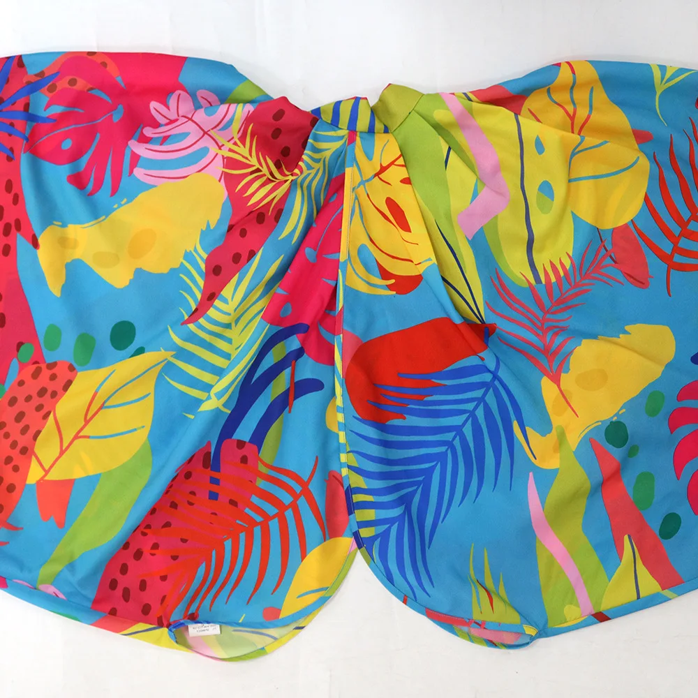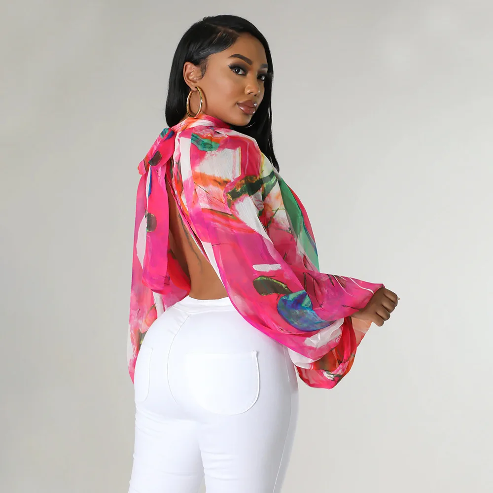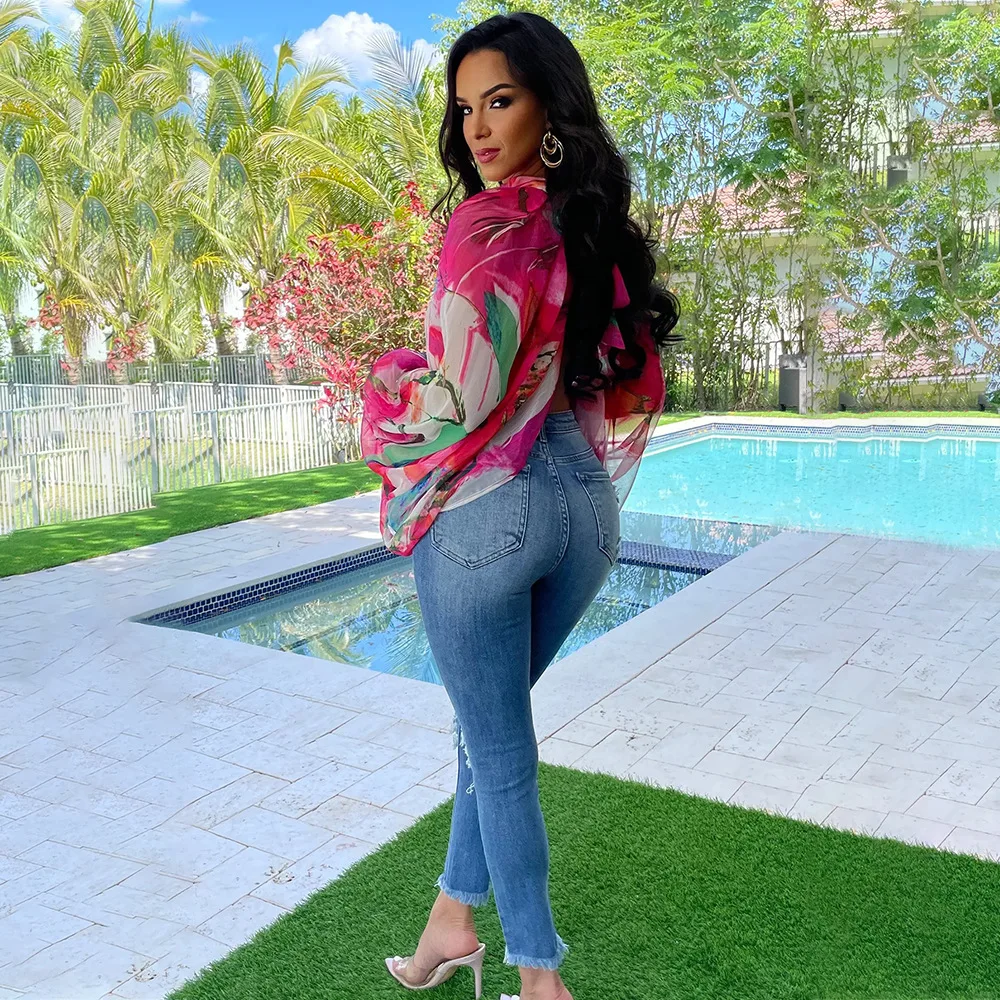 CM.YAYA Fashion Women Leaf Printed Stand Collar Batwing Long Sleeve Split Blouse 2023 Summer Beach Chic Shirt Tops