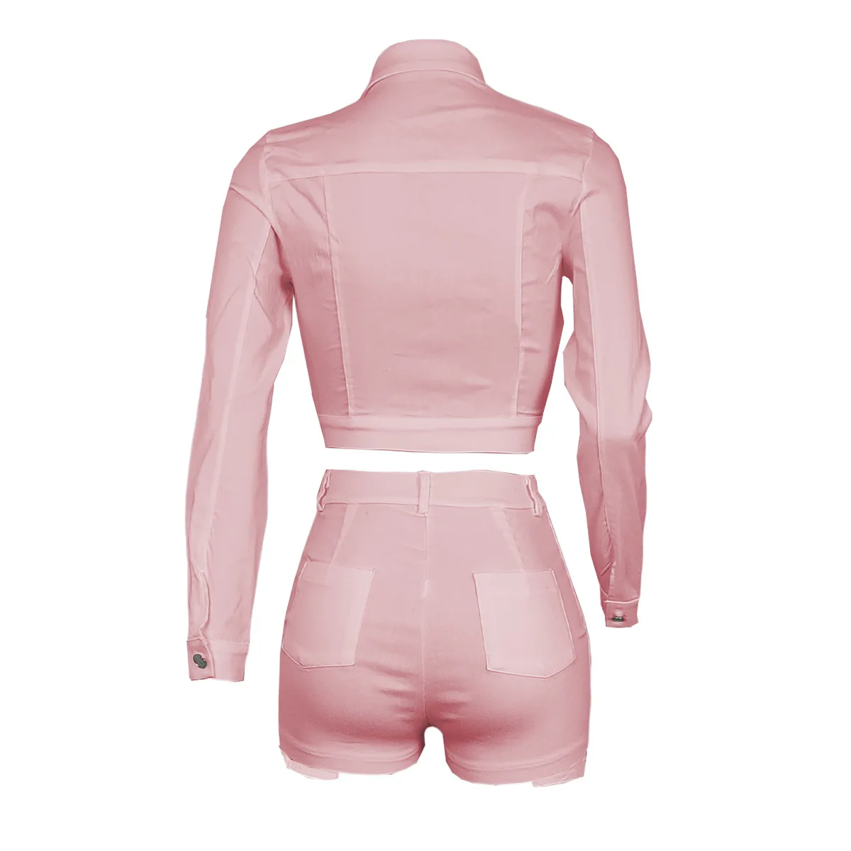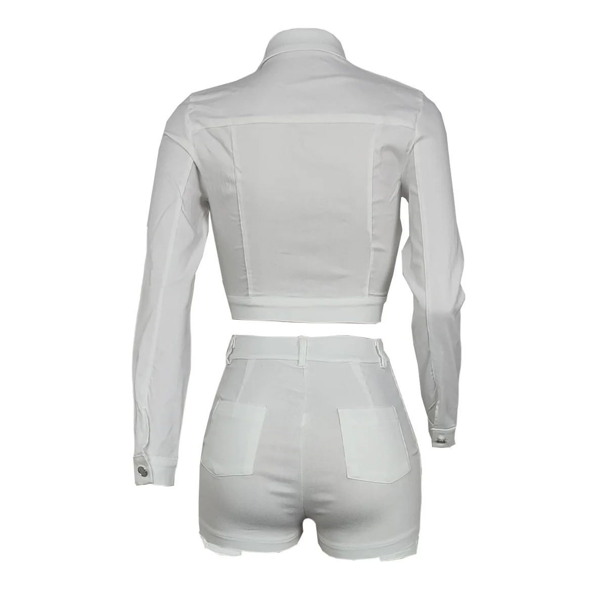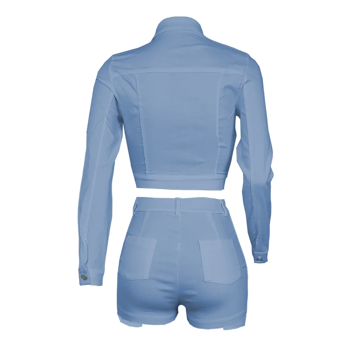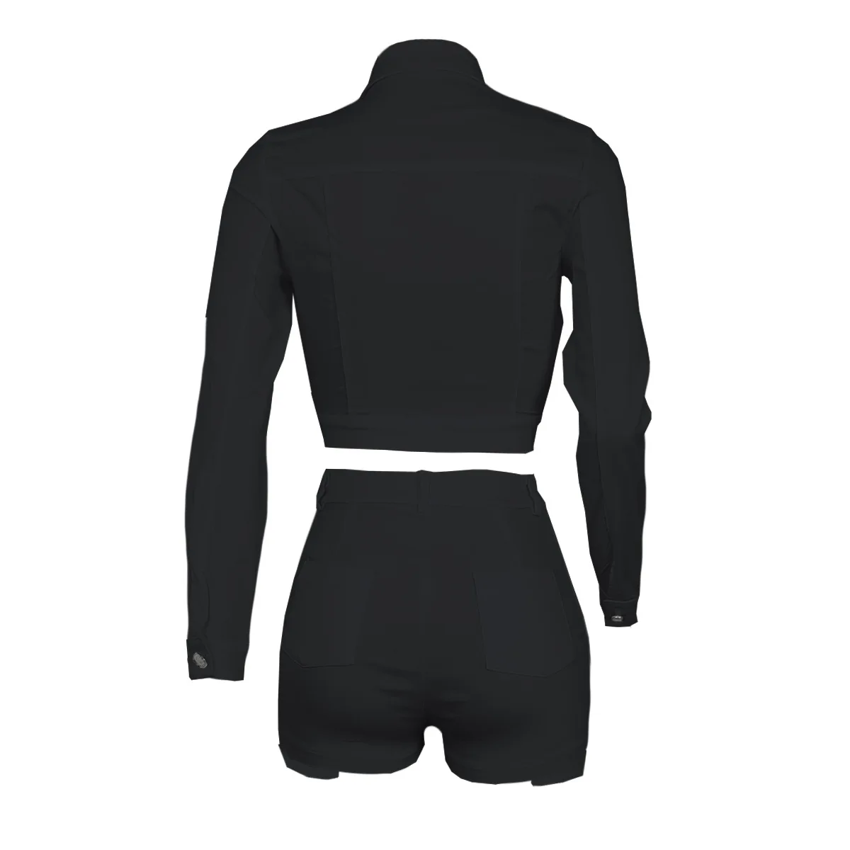 CM.YAYA Fashion Women’s Set Long Sleeve Cargo Shirt and Pocket Shorts 2023 Summer Safari Style Two 2 Piece Set Outfits Tracksuit
