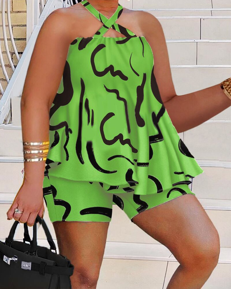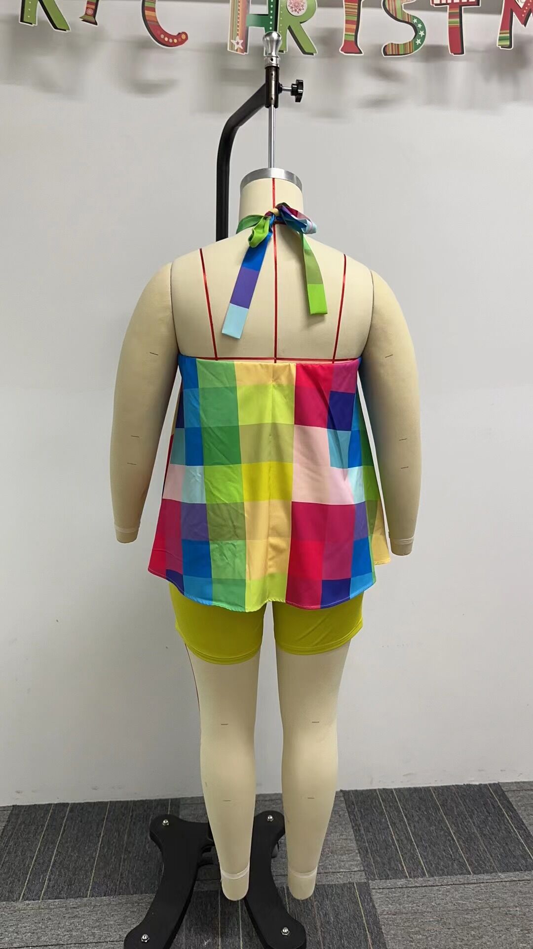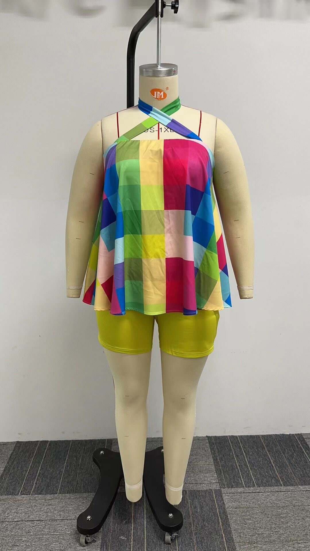 CM.YAYA Fashion Women’s Set Off Halter Neck Big Swing Crop Top and Shorts Legging Suit 2023 Two 2 Piece Set Outfits Tracksuit