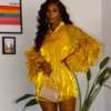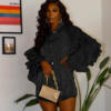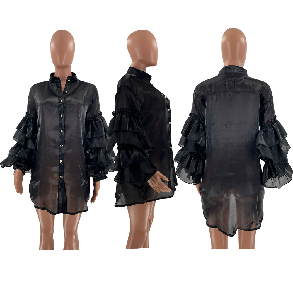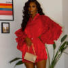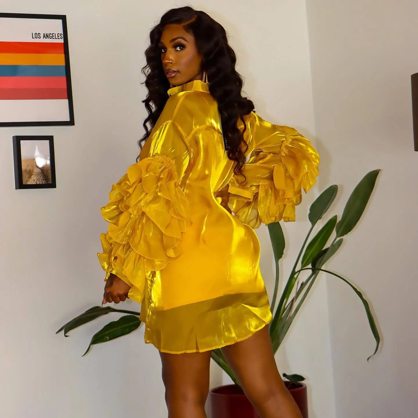 CM.YAYA INS Cascading Ruffles Petal Sleeve Single Breasted Turn-down Neck Shirt Dress for Women 2022 Slim Blouse Smock Dresses