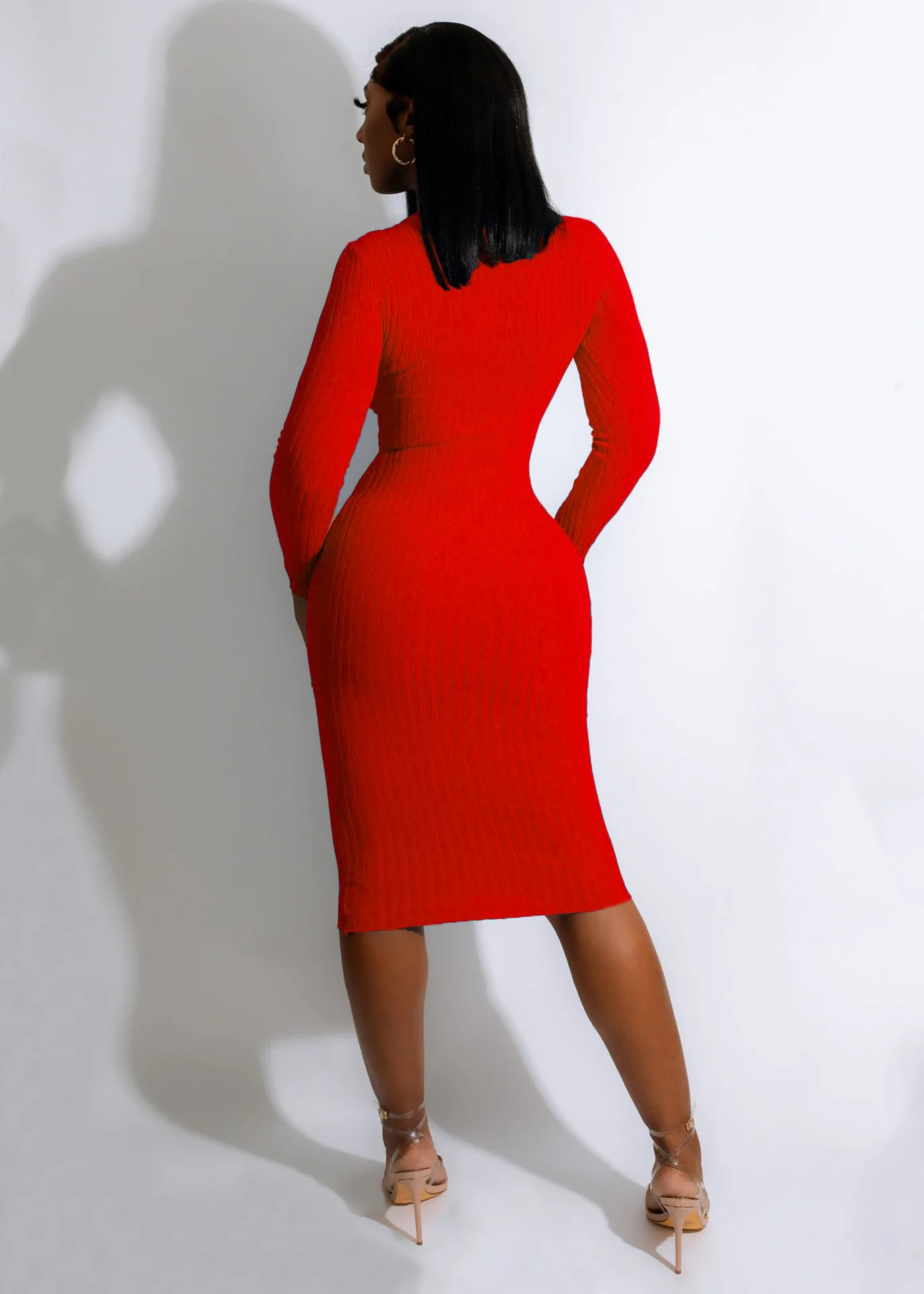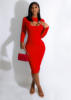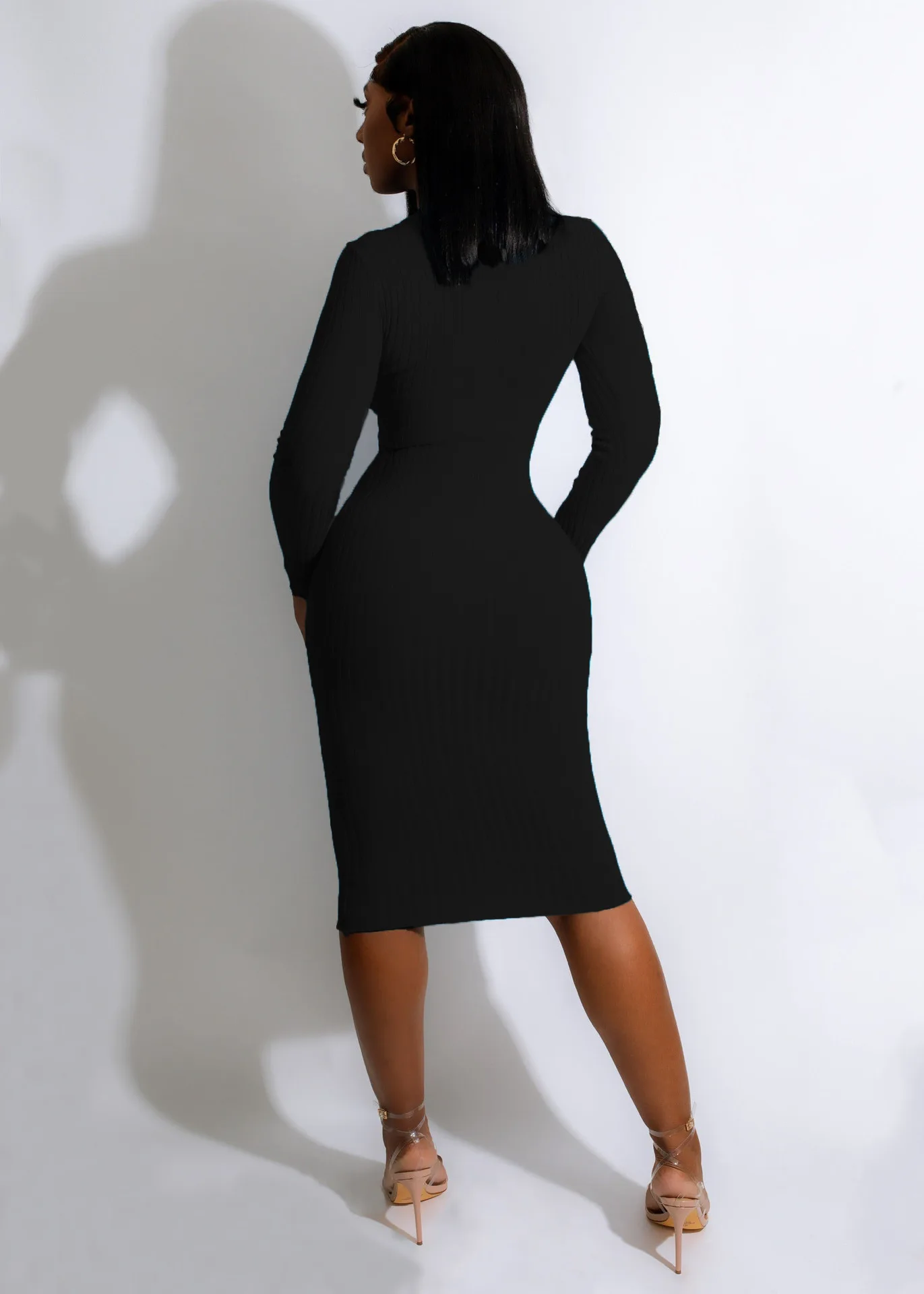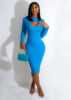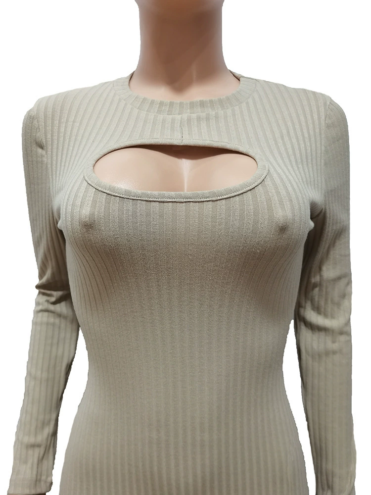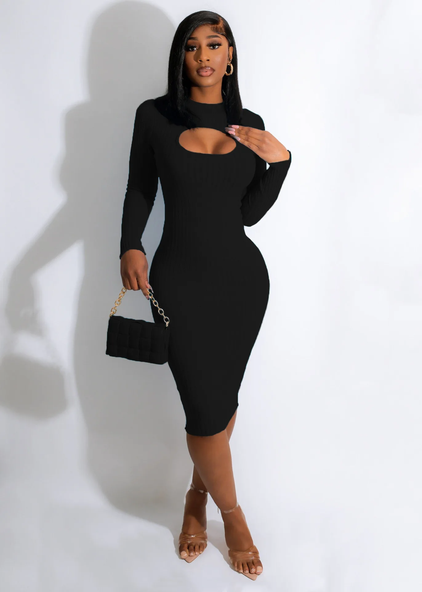 CM.YAYA INS Ribbed Knit Long Sleeve Cutout Front Bodycon Midi Stretch Dresses for Women Winter 2022 Knee Length Dresses Vestidos