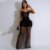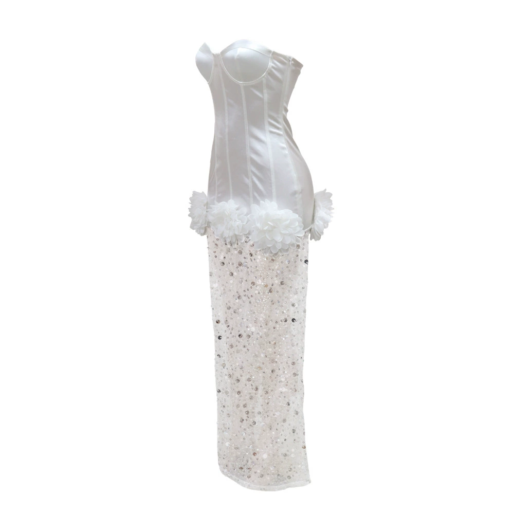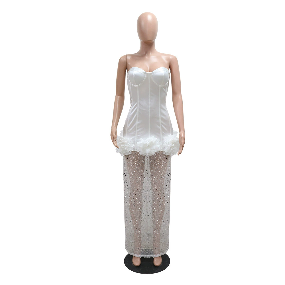 CM.YAYA INS Women Strapless Mesh Stain High Waist 3D Flower Sleeveless Dress 2024 Birthday Maxi Long Party Evening Split Dresses