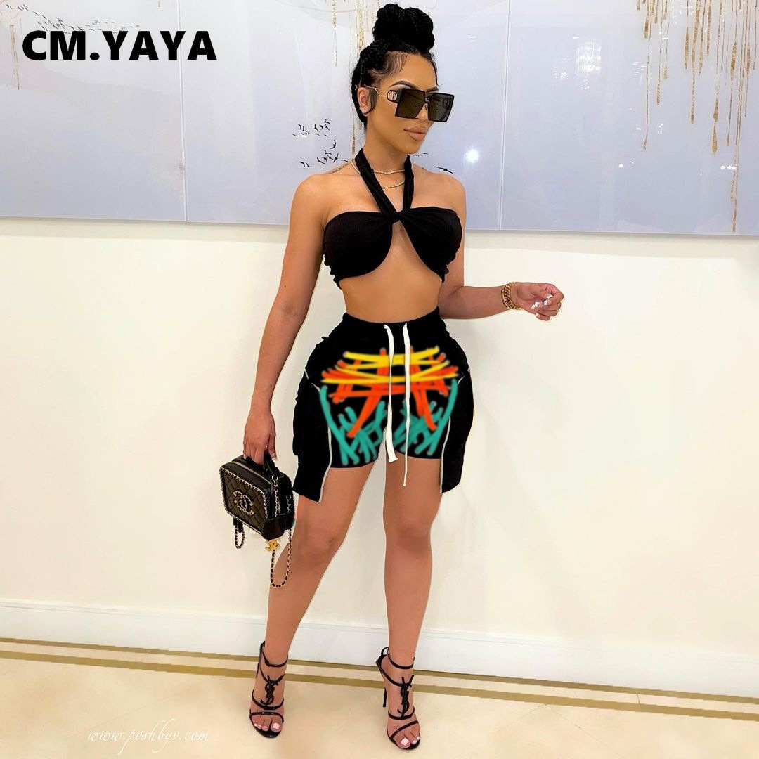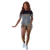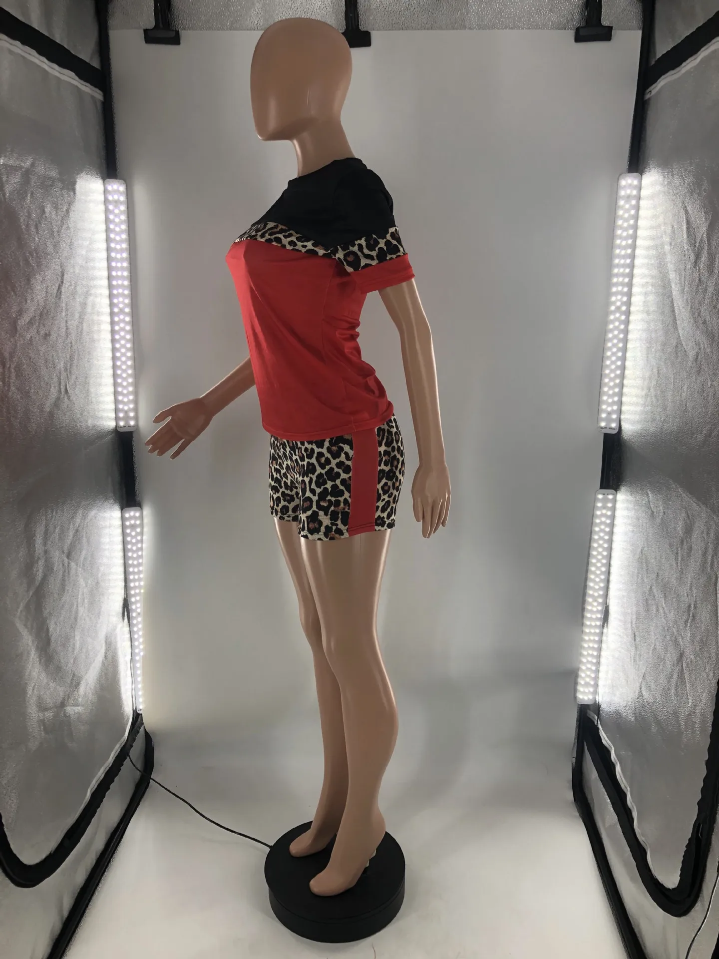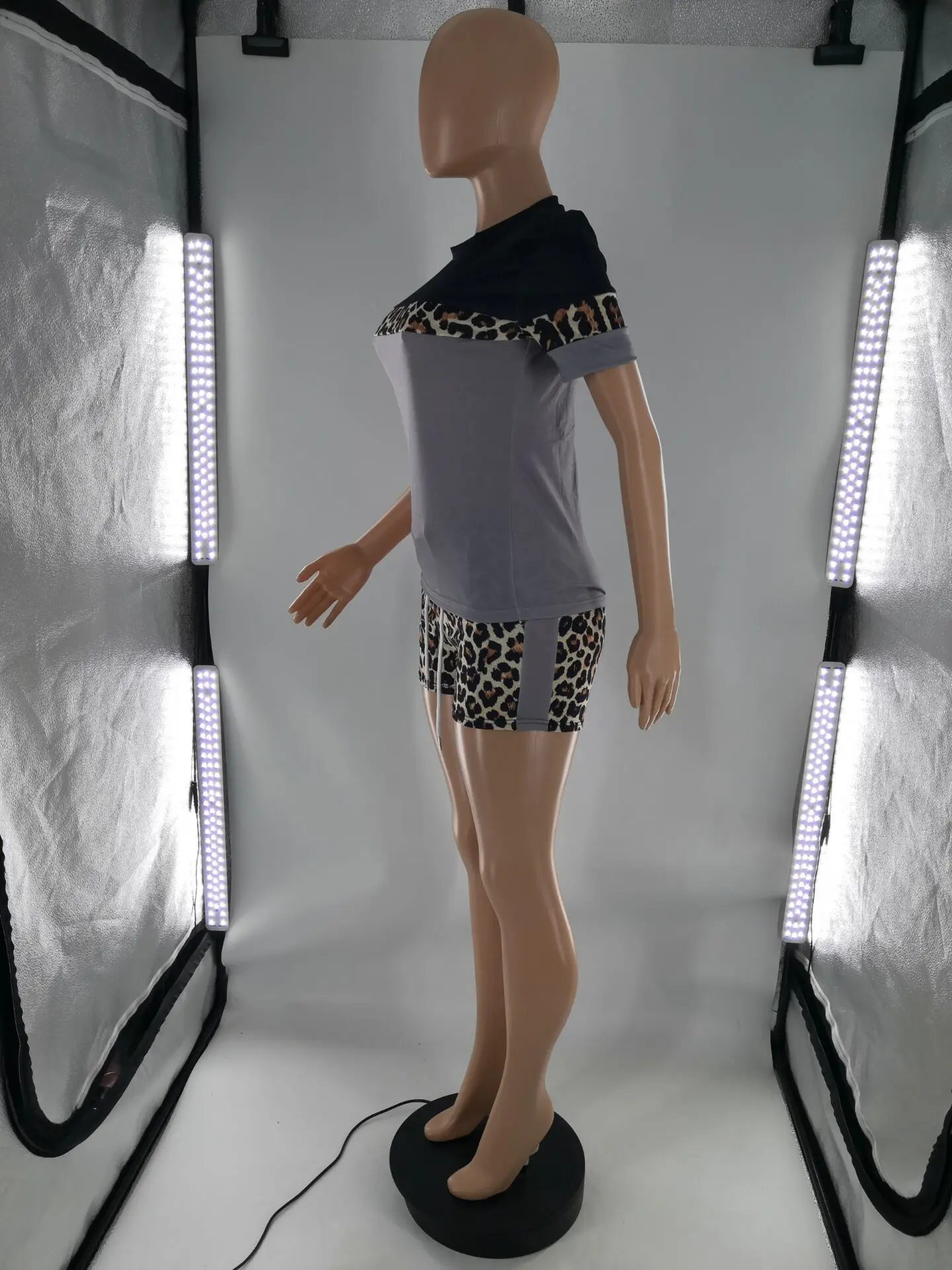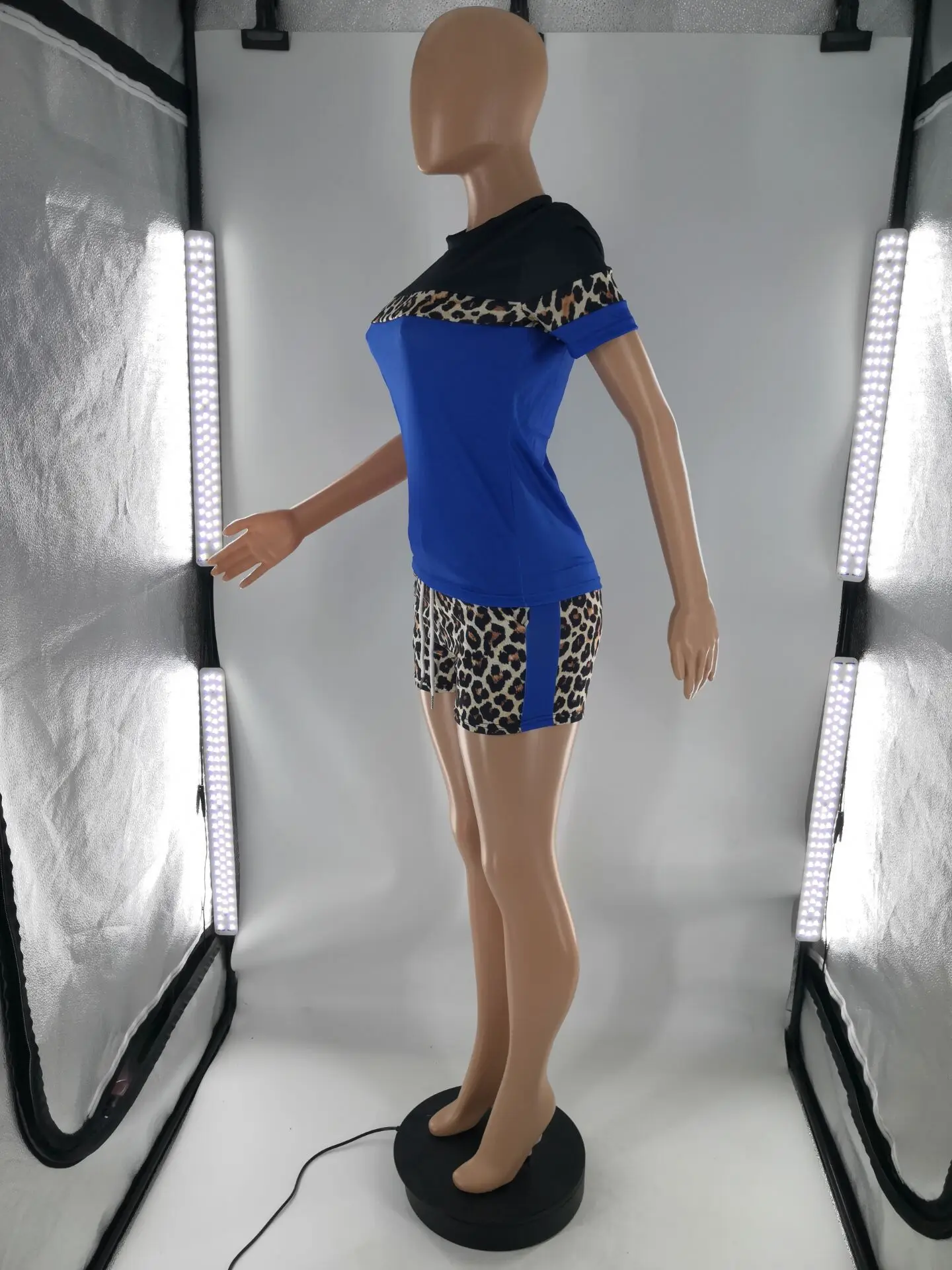 CM.YAYA Leopard Patchwork Women’s Set Sport Basic T-shirt and Shorts Matching Two 2 Piece Outfits Active Tracksuit Sweatsuit