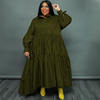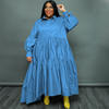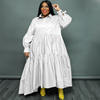 CM.YAYA Plus Size Women Lapel Collar Long Sleeve Single Breasted High Low Asymmetrical Big Swing Loose Shirt Smock Maxi Dress