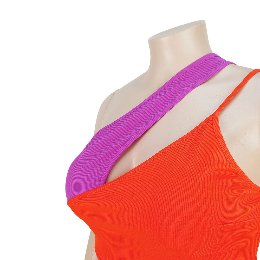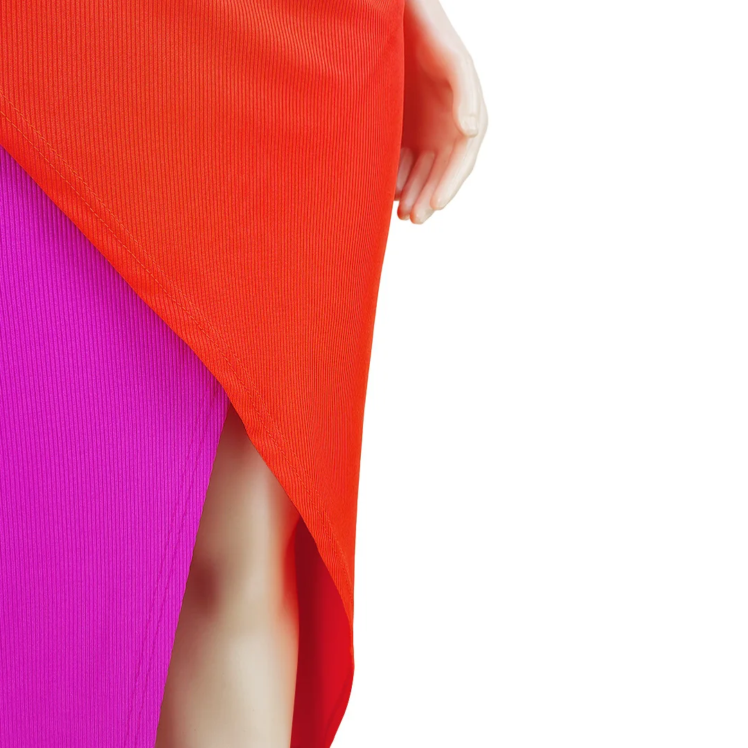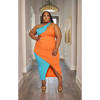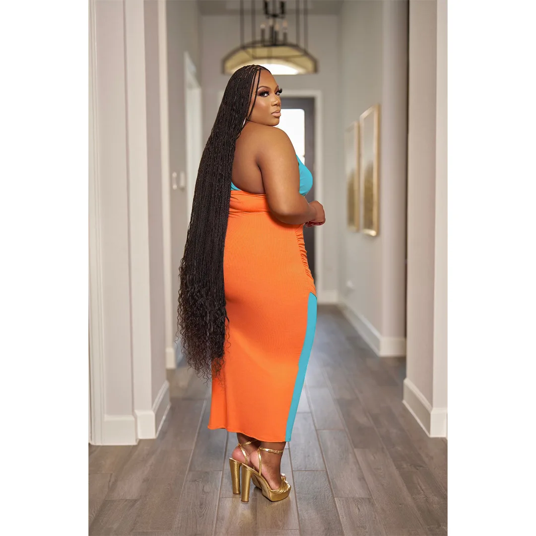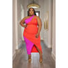CM.YAYA Plus Size Women Patchwork One Shoulder Split Wrap Hem Sleeveless Midi Bodycon Maxi Long Dress 2023 Party Evening Dresses