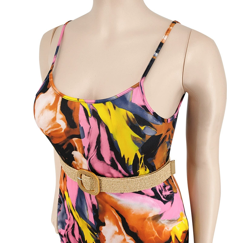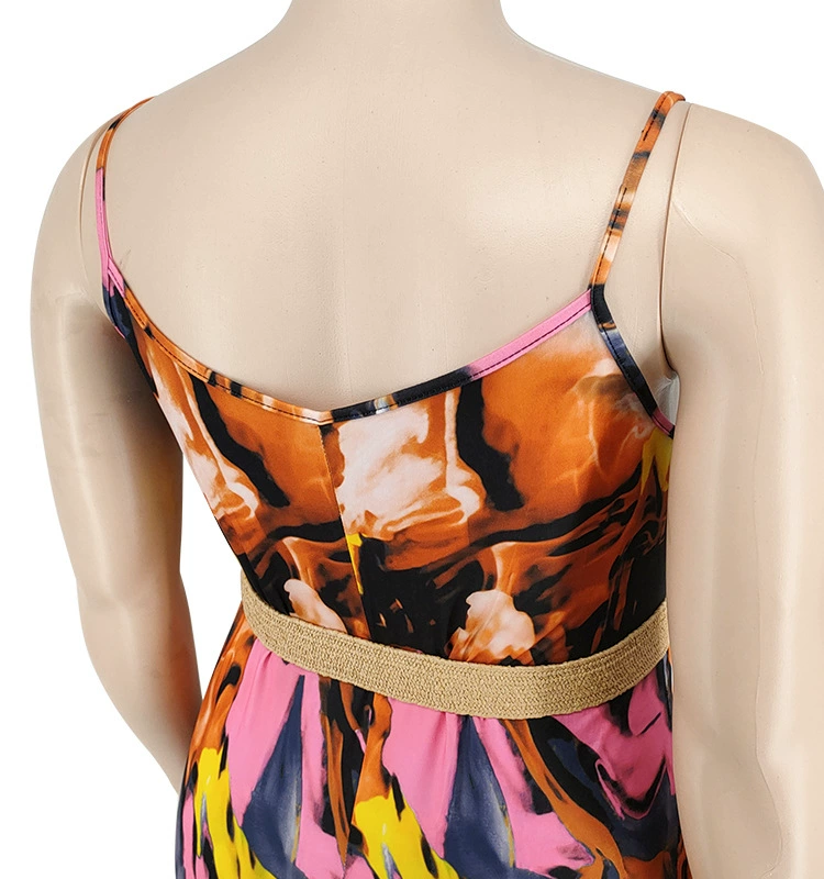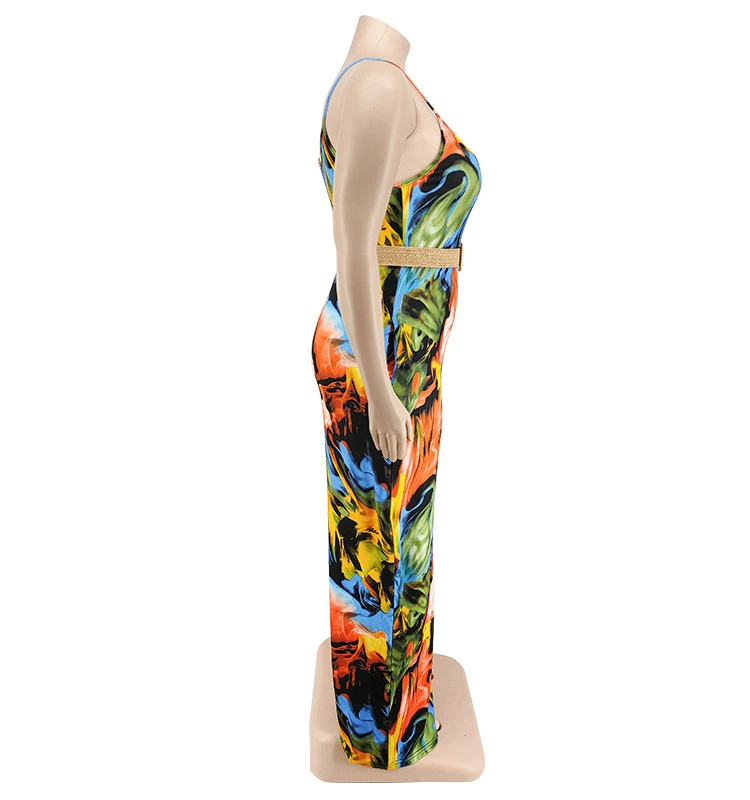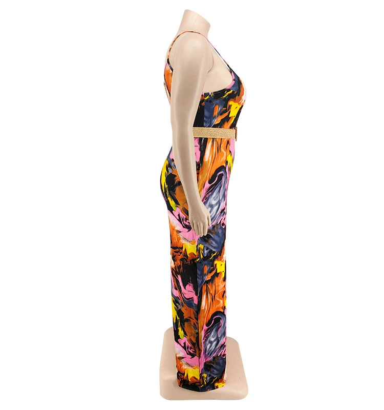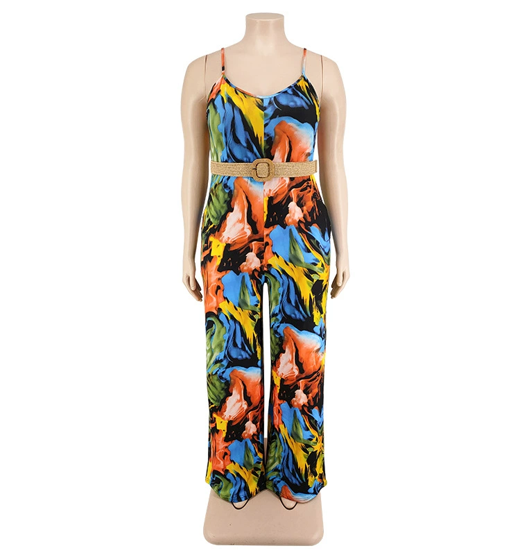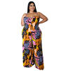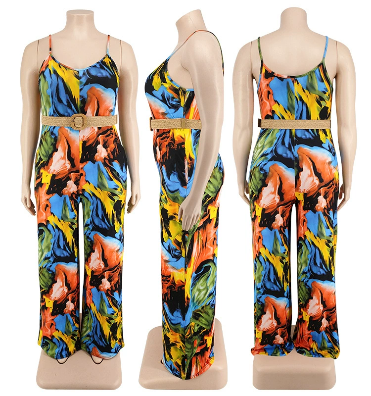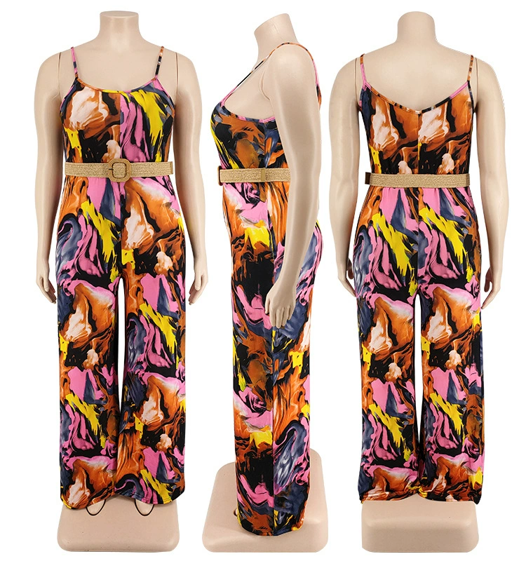 CM.YAYA Plus Size Women Tie Dye Wave Spaghetti Strap Wide Leg Loose Jumpsuit 2022 Summer Sleeveless Streetwear Retro Playsuit