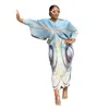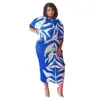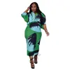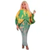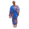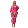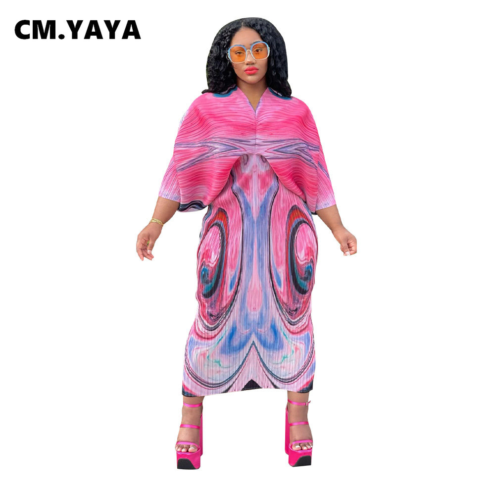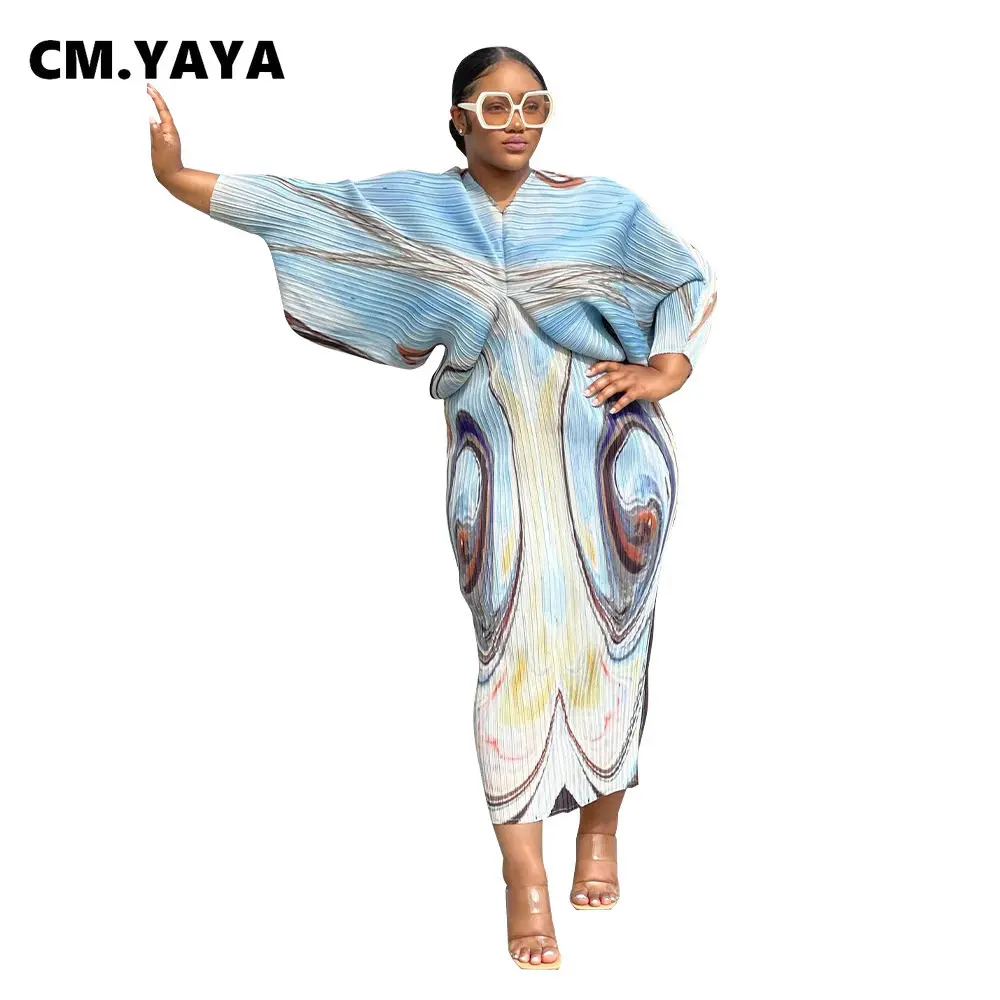 CM.YAYA Print Elegant Pleated Chic Women Dress Batwing Sleeve V-neck 2022 Autumn Bodycon African Maxi Dresses Streetwear 2022