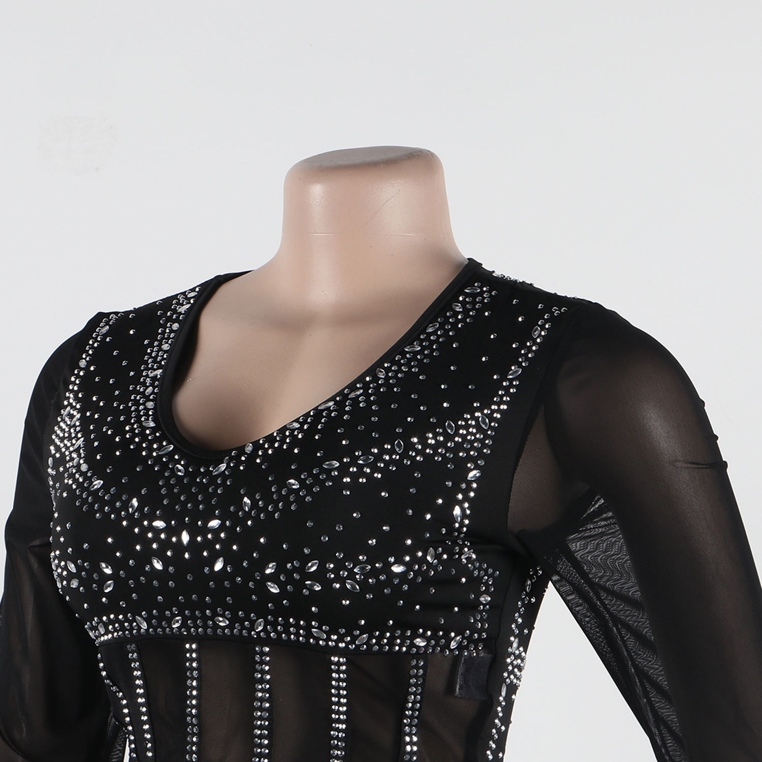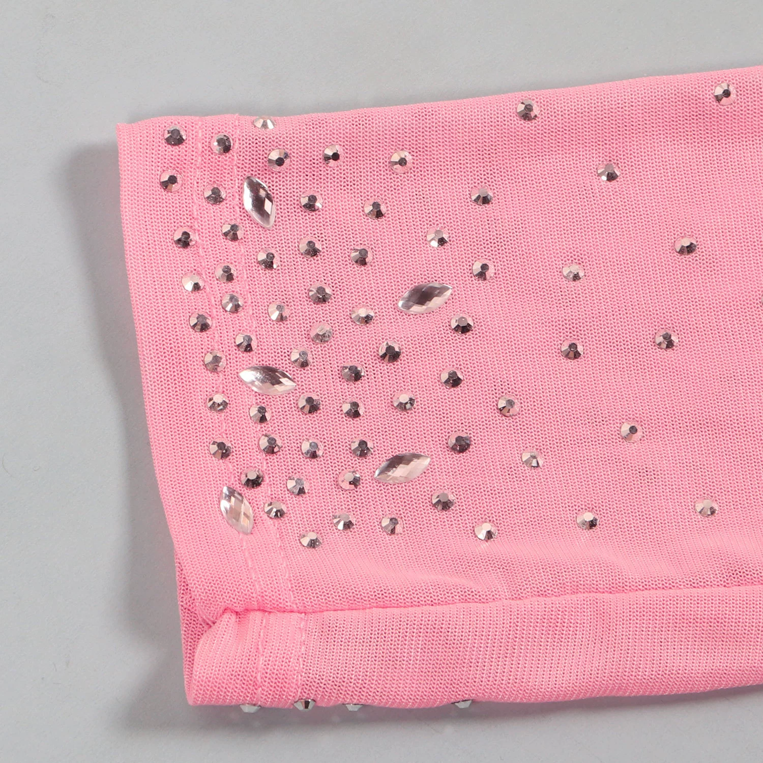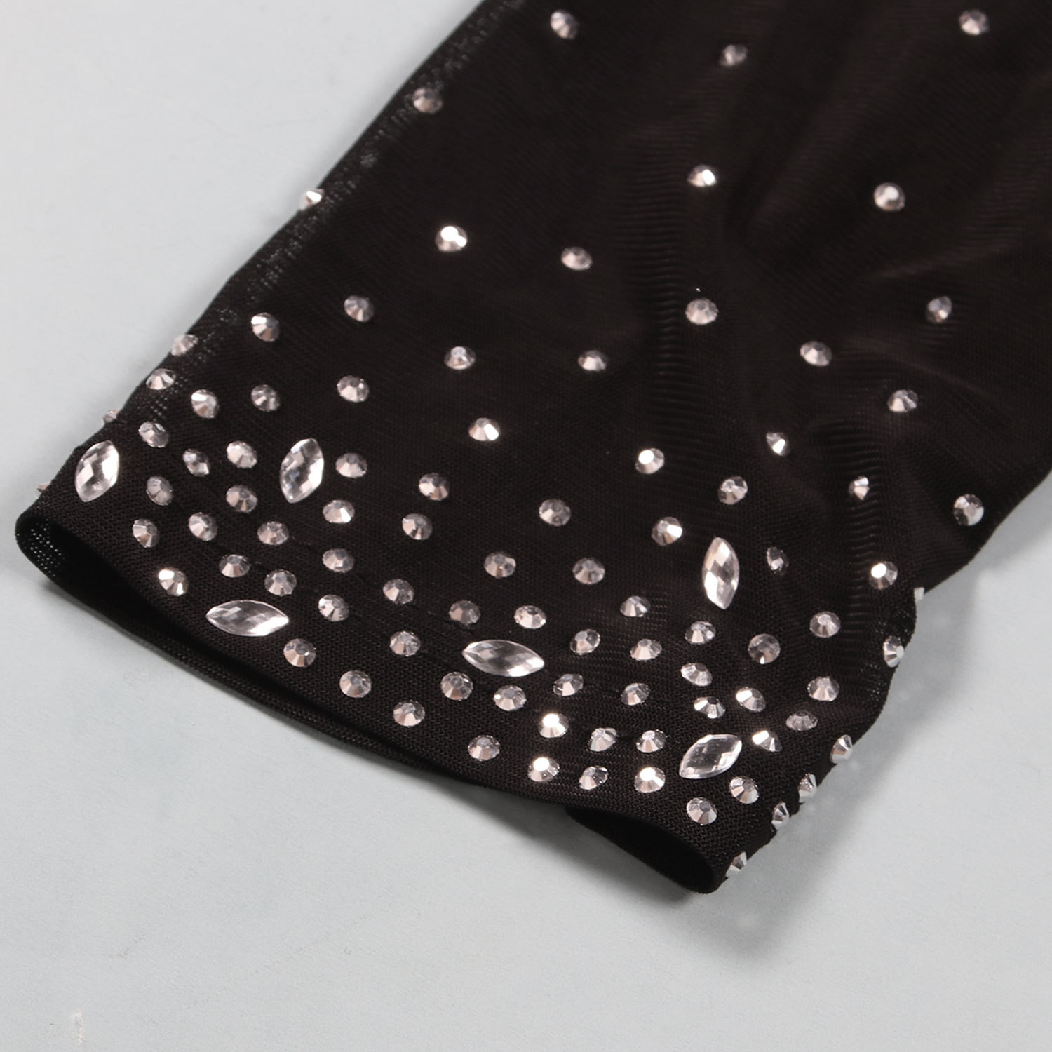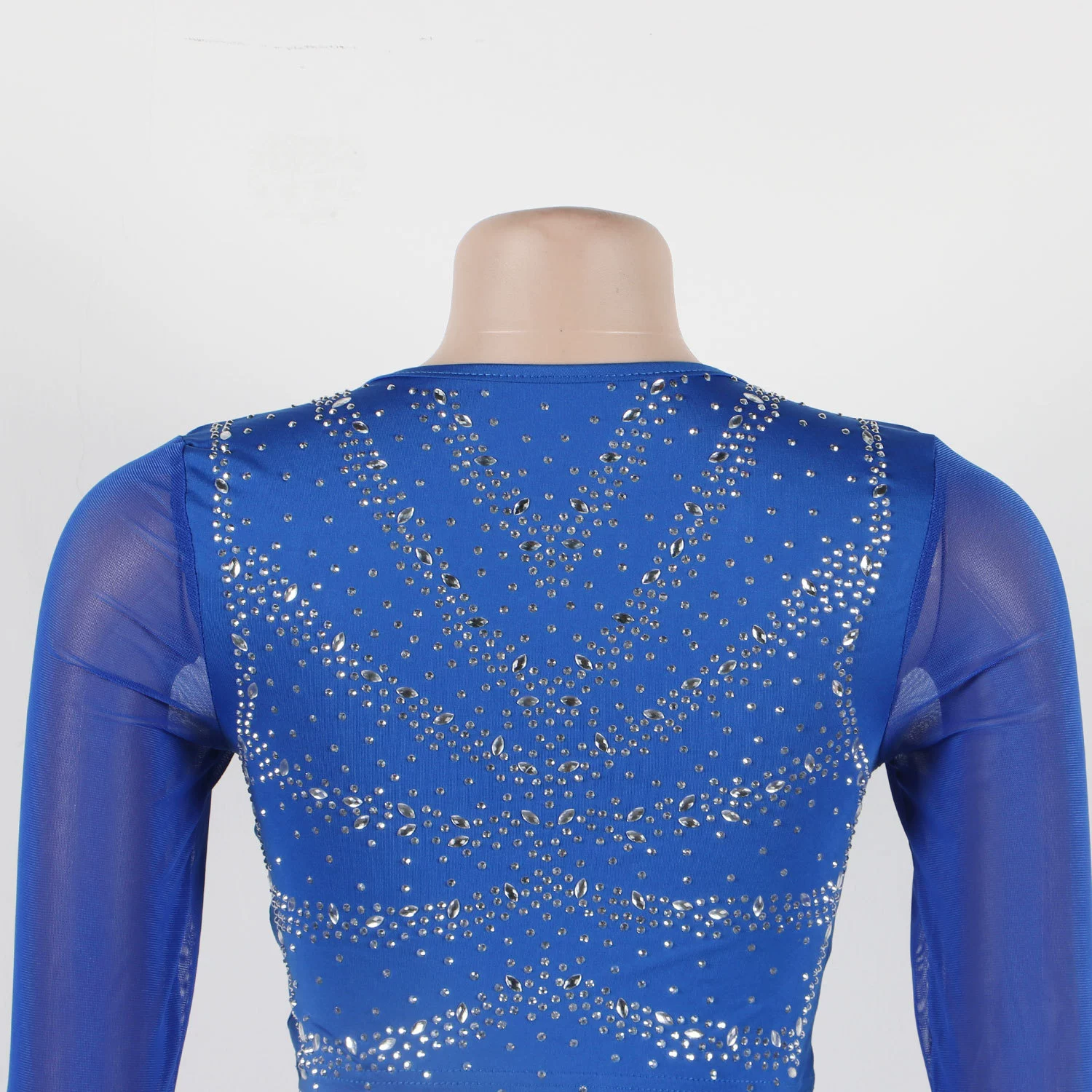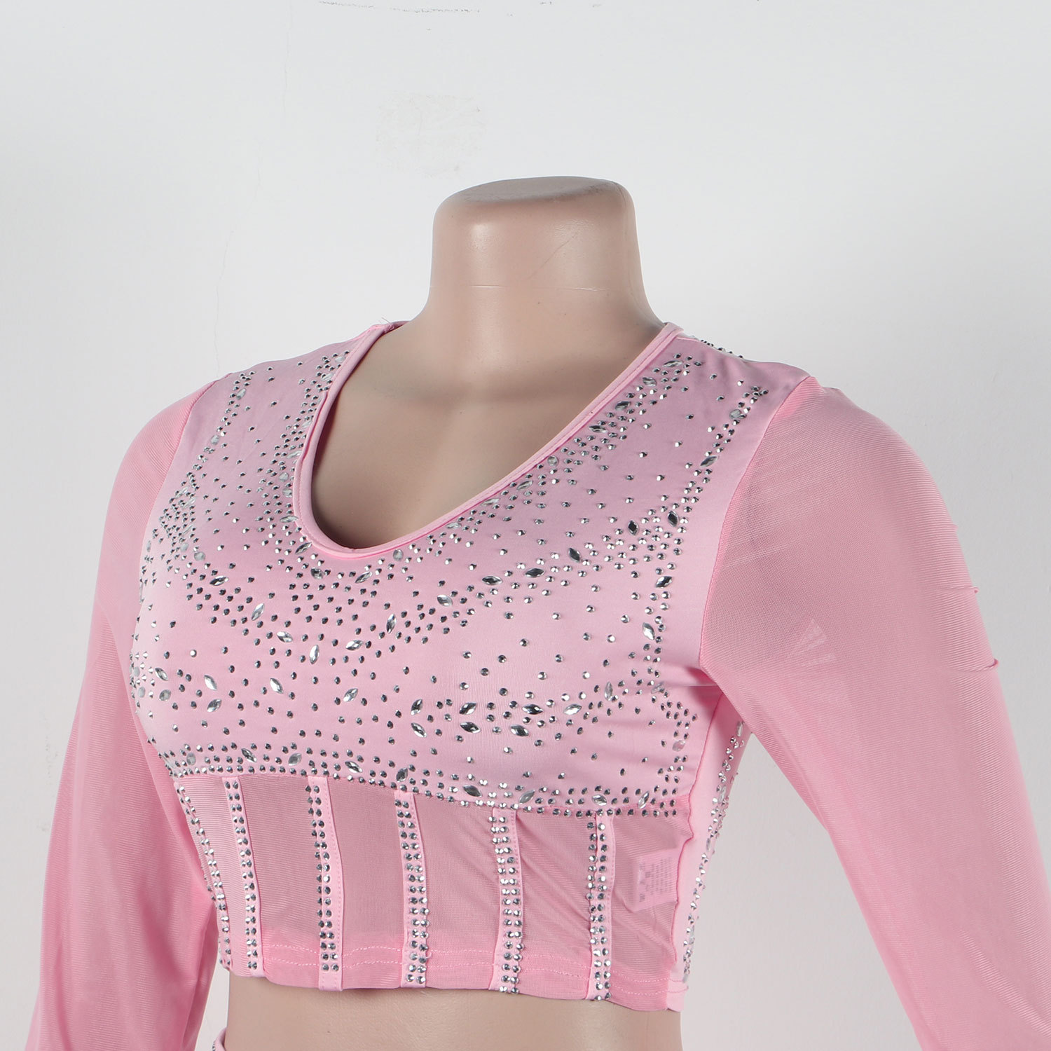 CM.YAYA Sexy Party Women’s Set Mesh Long Sleeve Dimonds Hot Drill Tee Top + Tassel Shortst 2023 Two 2 Piece Set Outfit Tracksuit