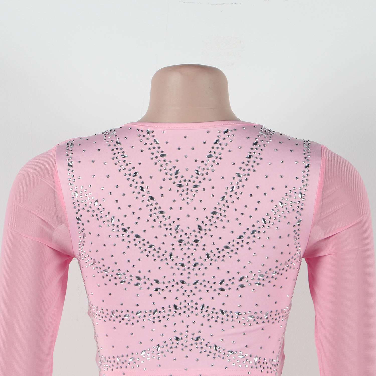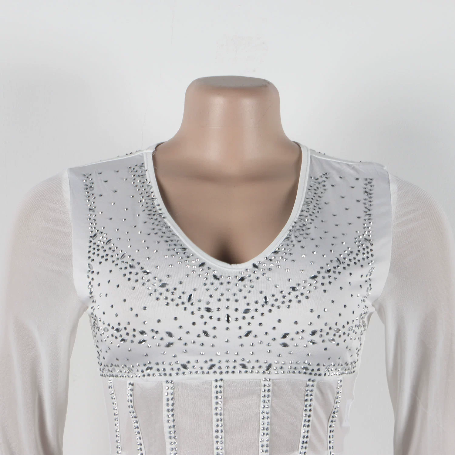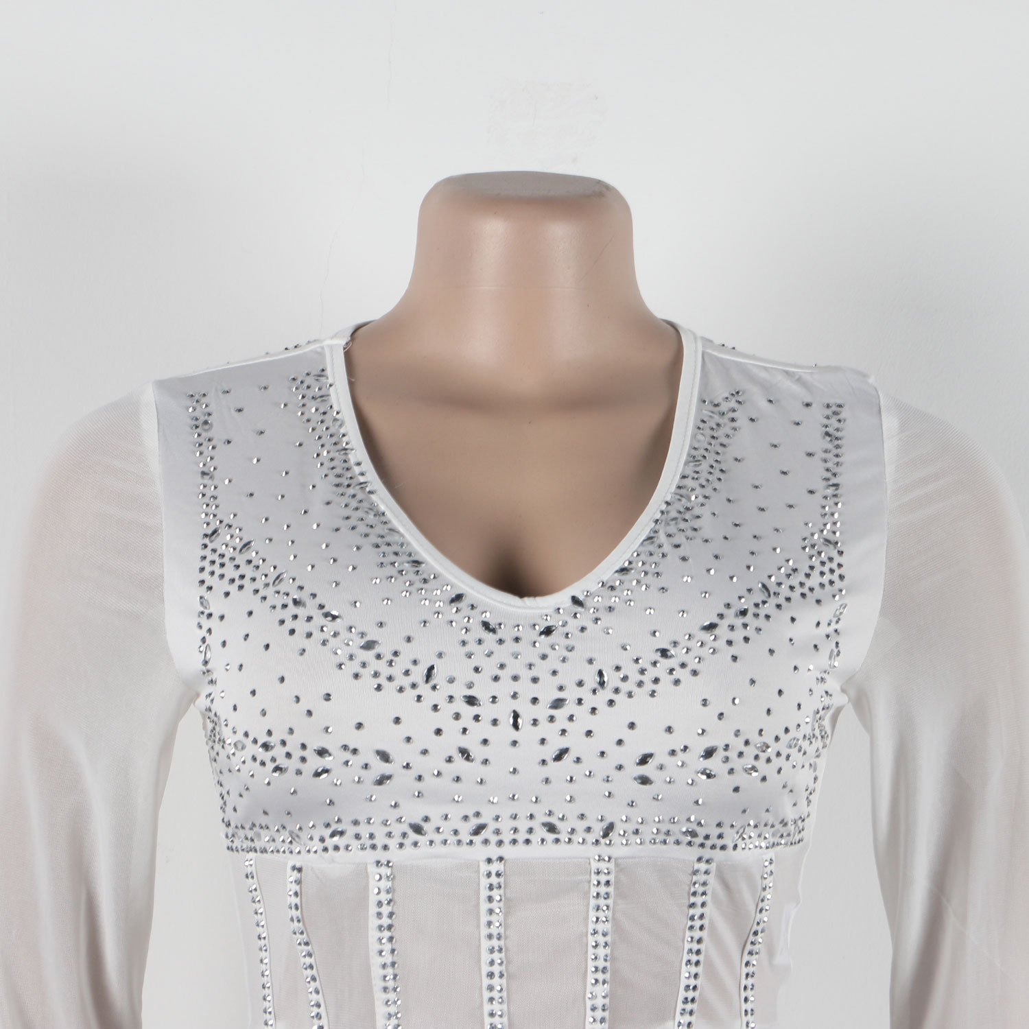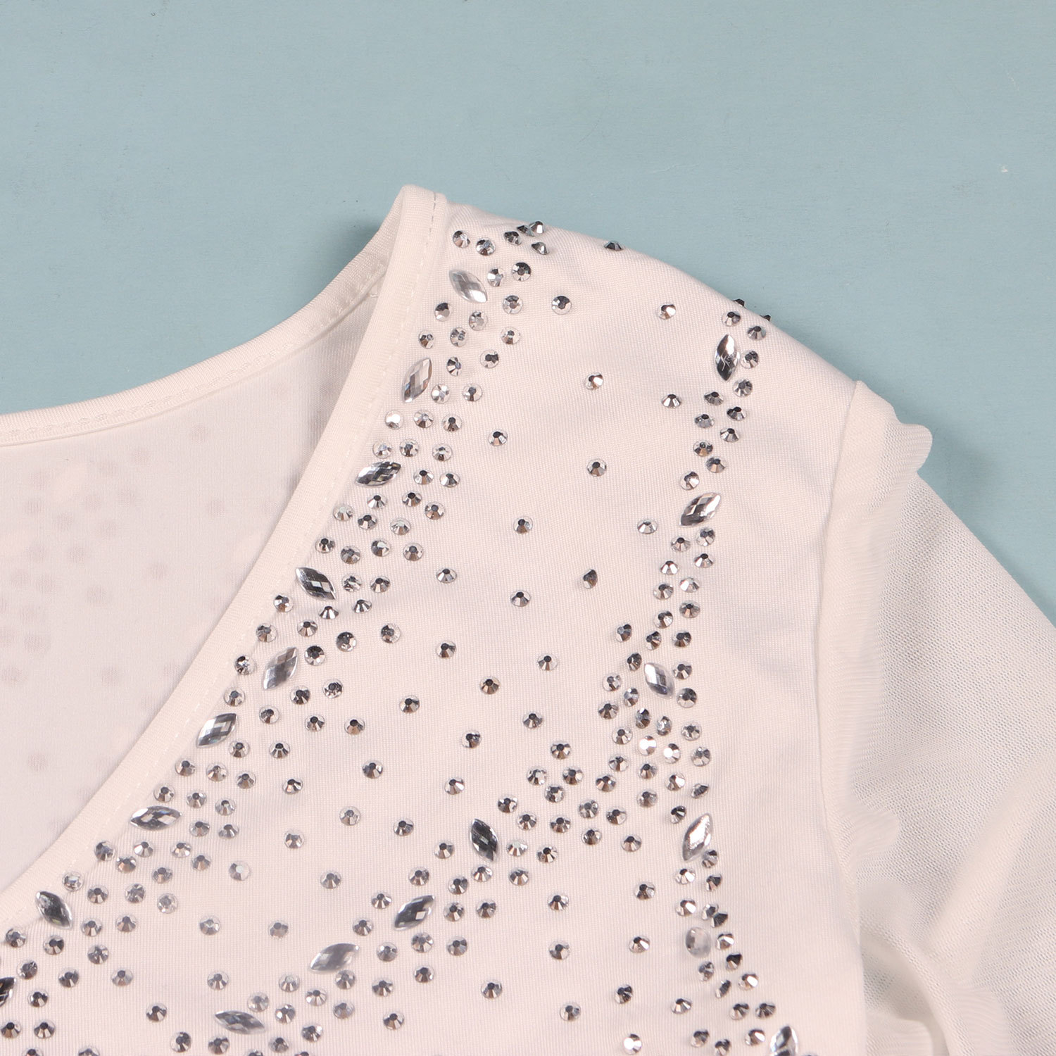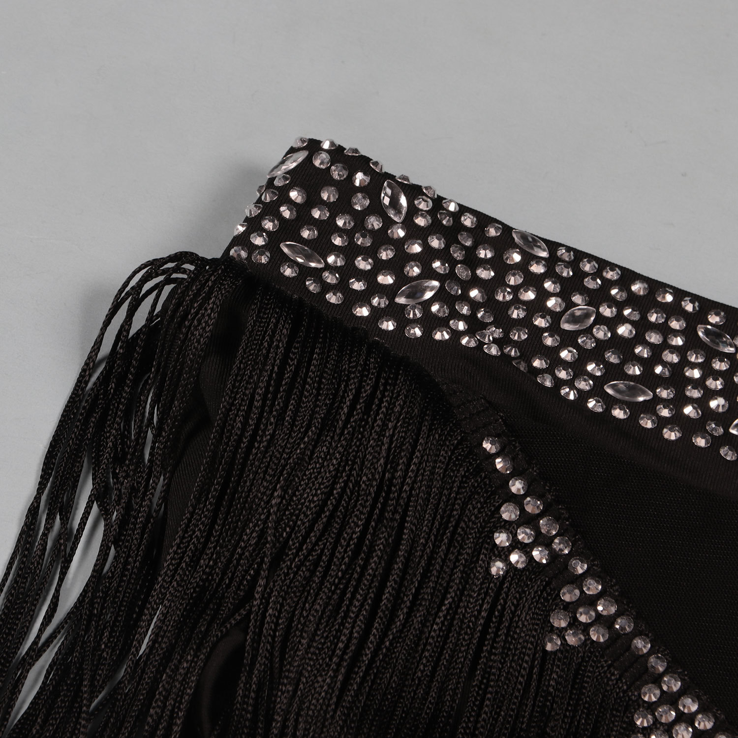 CM.YAYA Sexy Party Women’s Set Mesh Long Sleeve Dimonds Hot Drill Tee Top + Tassel Shortst 2023 Two 2 Piece Set Outfit Tracksuit